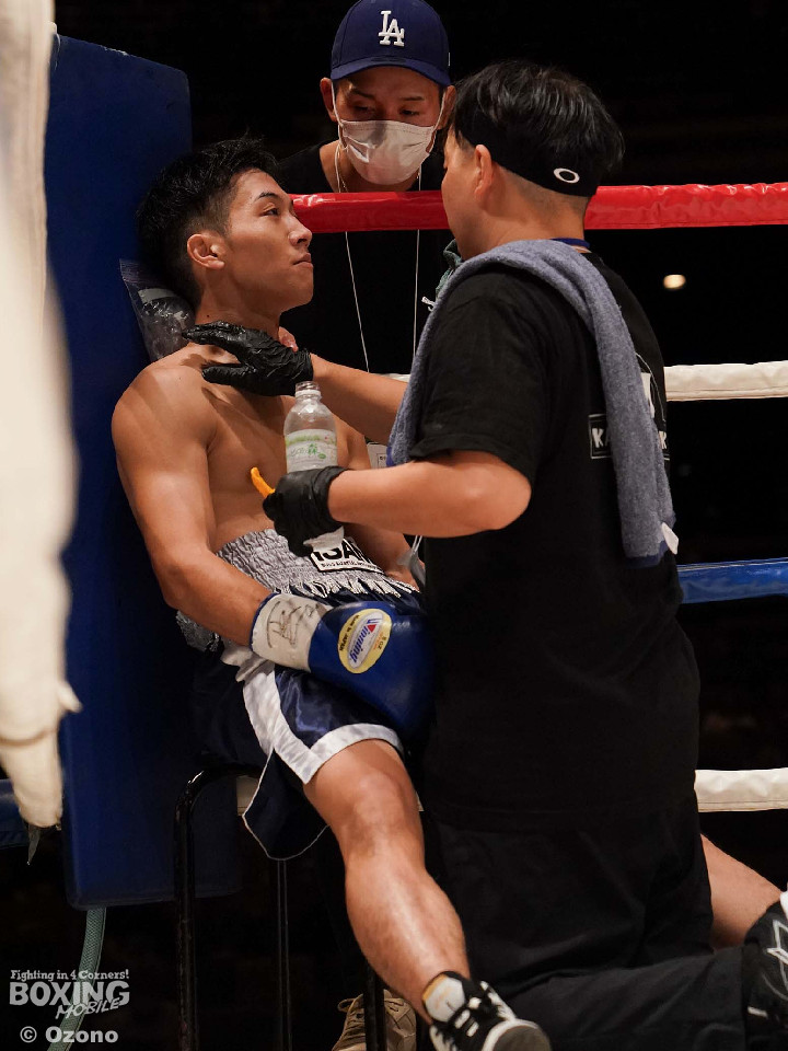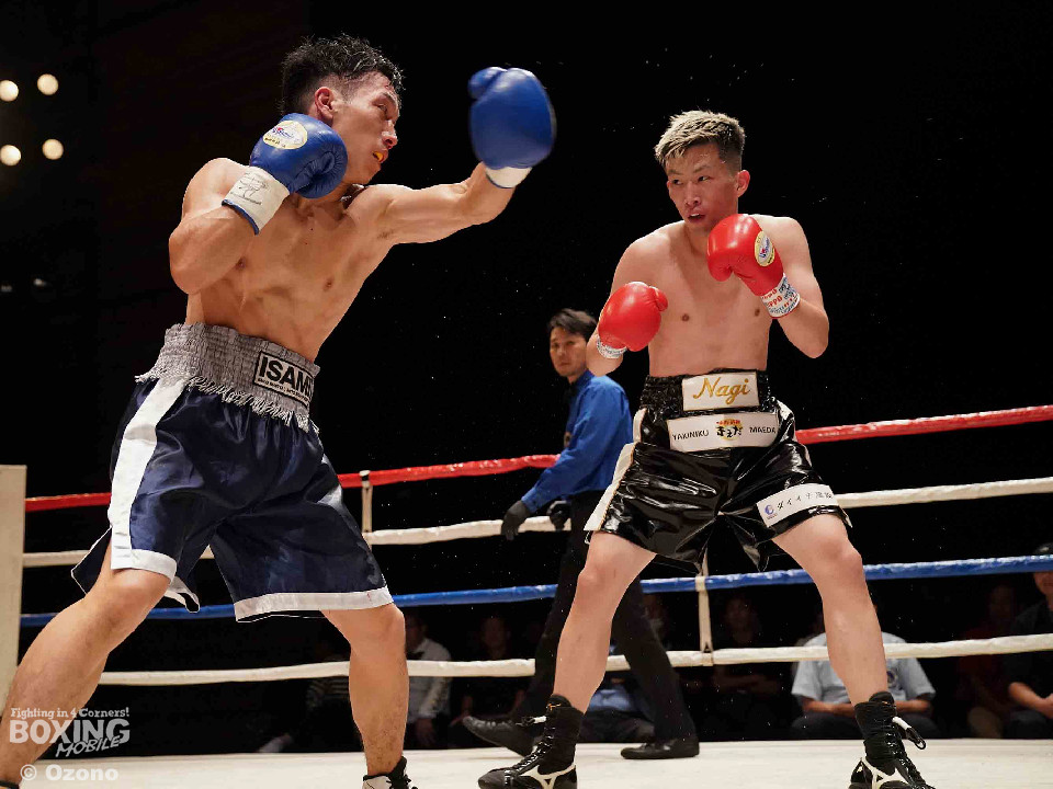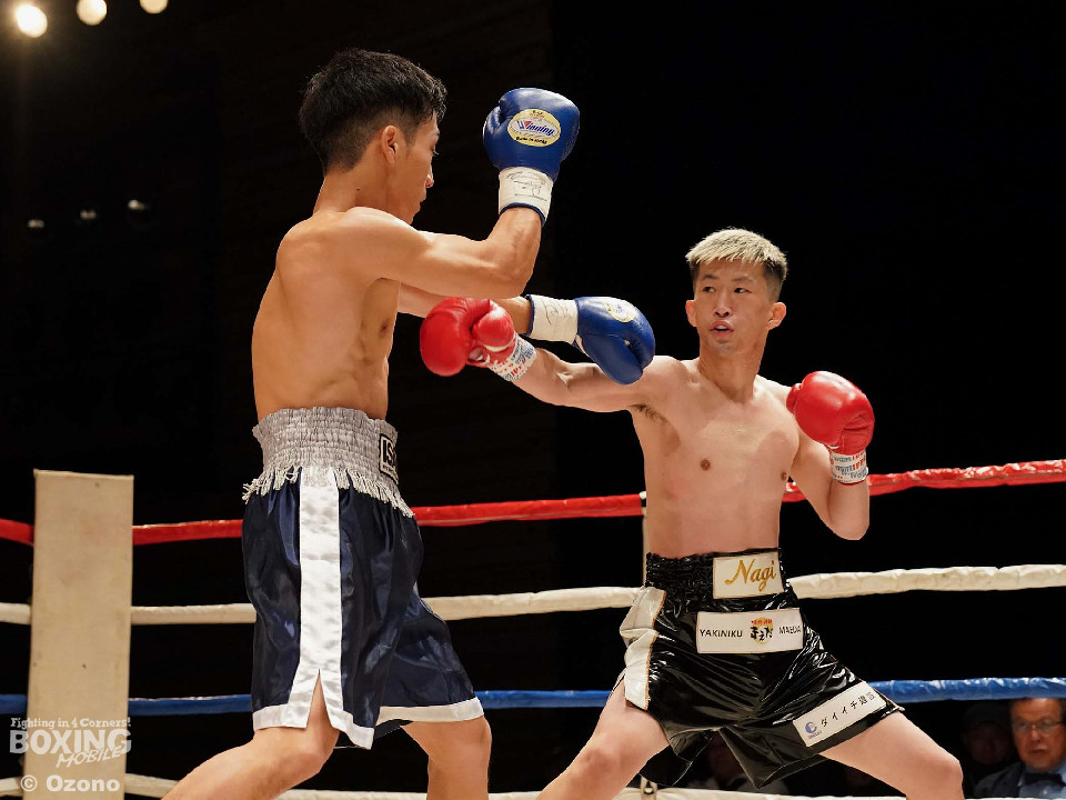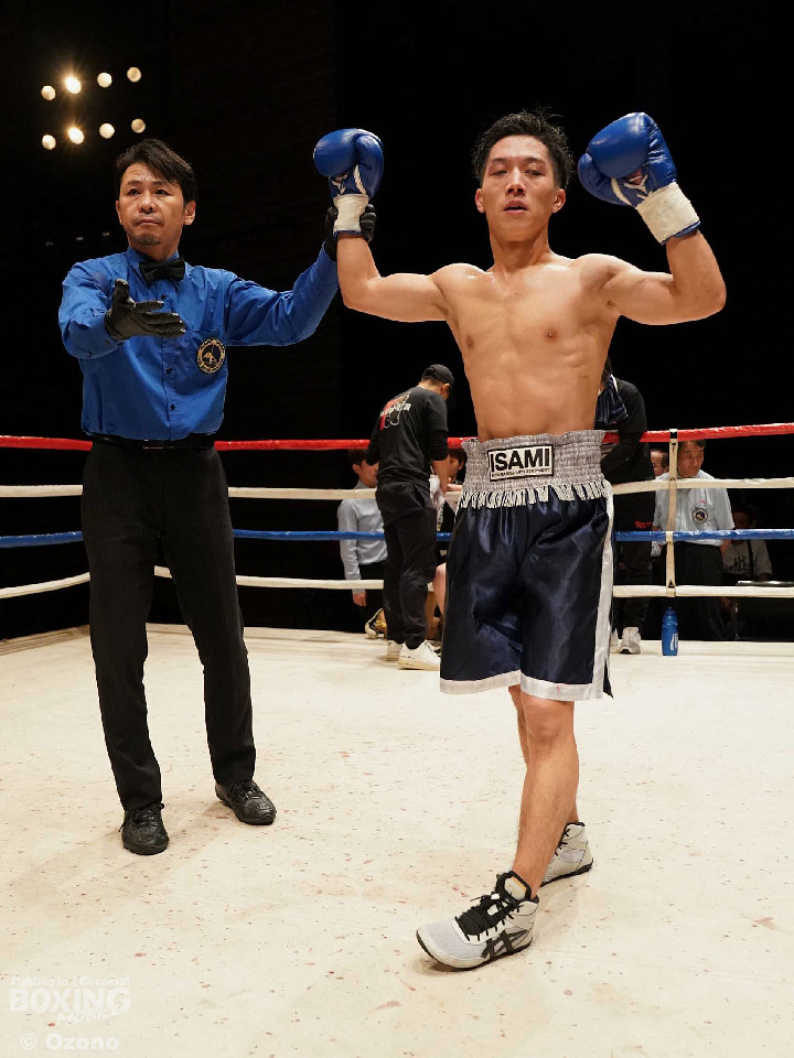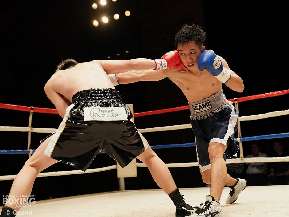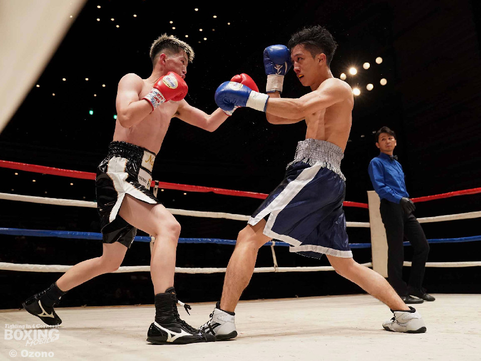 試合:サウスポー前田がジャブを飛ばして距離をキープ。2回、右ストレートにつなげたい宮下だが、距離が遠いのかあと一歩が踏み込めず。3回、前田はステップを刻みながら左ショートでダウンをゲット。再開後、仕留めに行くが宮下は左フックで膝を揺らすとグイグイと攻めてて反撃。4回、宮下は右フックでグラつかせるとコーナーに詰めてこれでもかと左ボディを叩くと防戦一方になった前田を見てレフェリーが割って入った。宮下が逆転KO勝ちを飾った。
