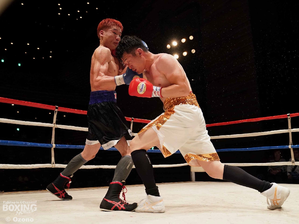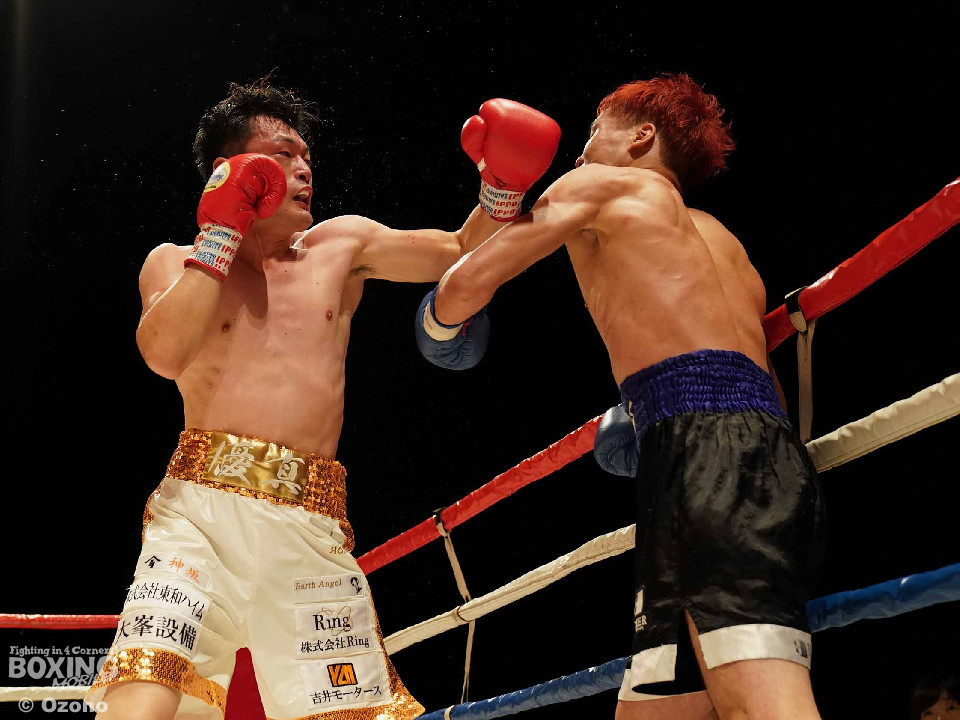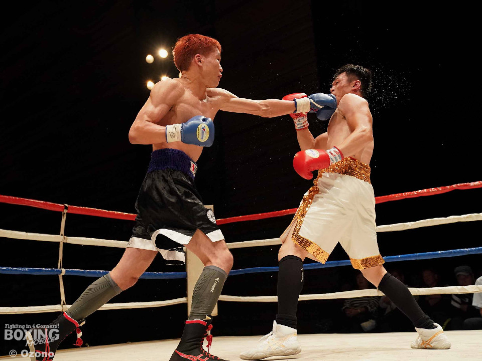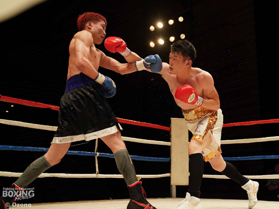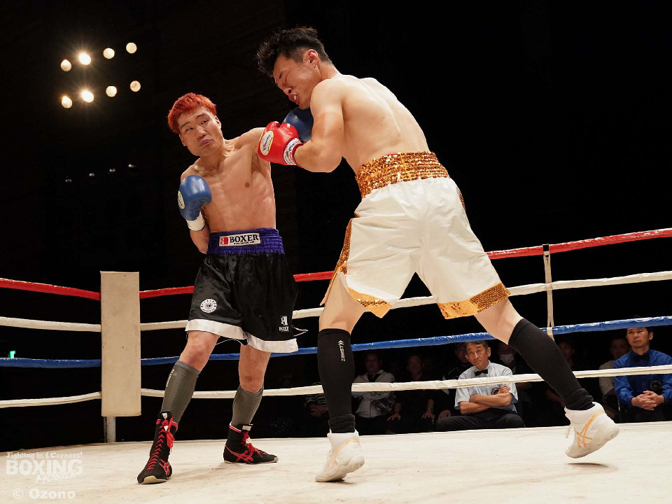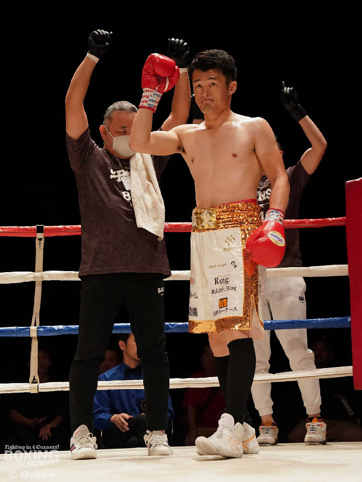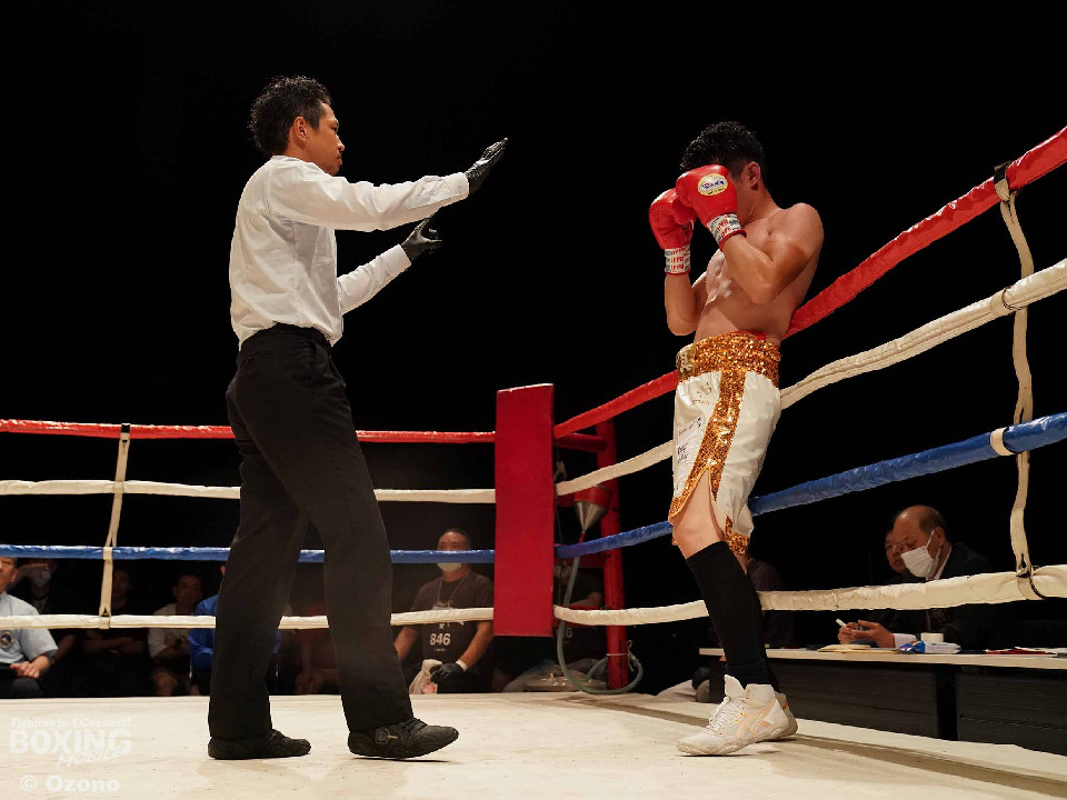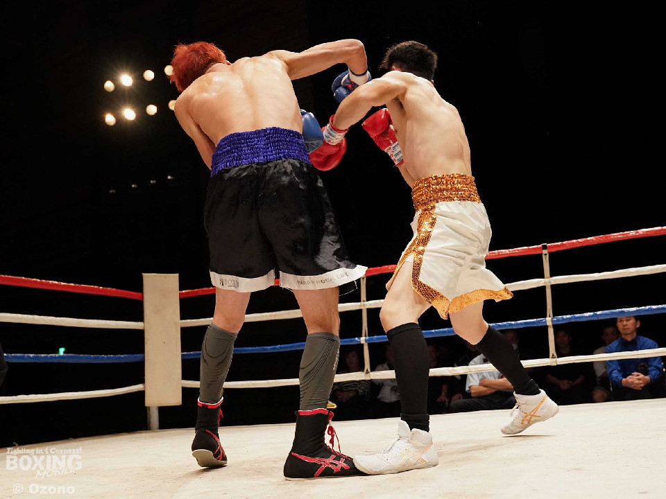 試合:サウスポー豊中が独特のリズムのワンツーを繰り出すと大峯も真っ向から応戦。ラウンド中盤、豊中が右フックでダウンを奪取。再開後、手数を増やして攻め立てた。2回、豊中は右構えにスイッチすると左右をまとめて積極的な攻撃。大峯も後手に回ることなく返した。3回、回転力を活かした打ち合いで互角の展開。4回、大峯はプレスをかけてワンツーで反撃。やや疲れは見える豊中だが、左ストレートで右目上を切り裂きペースを渡さず。5回、豊中はワンツーで効かせて連打で2度目のダウンを奪うと最後は左ストレートで倒して決着をつけた。ダメージが深い大峯は担架で運ばれた。豊中がメインイベントを締めた。