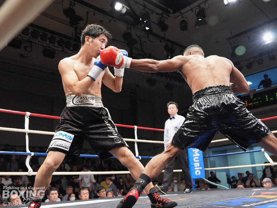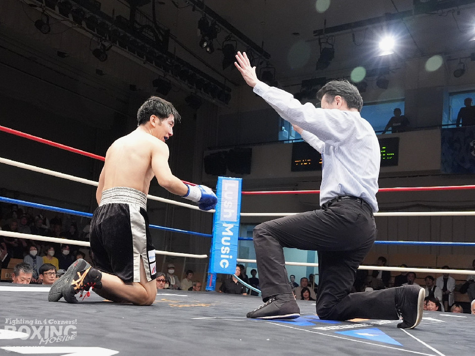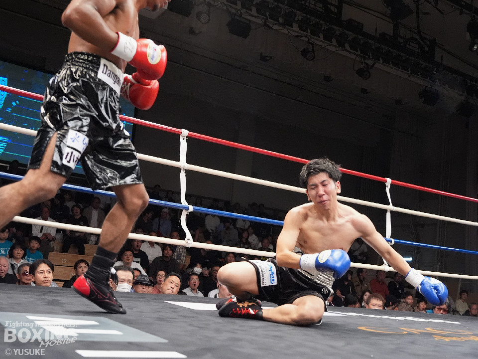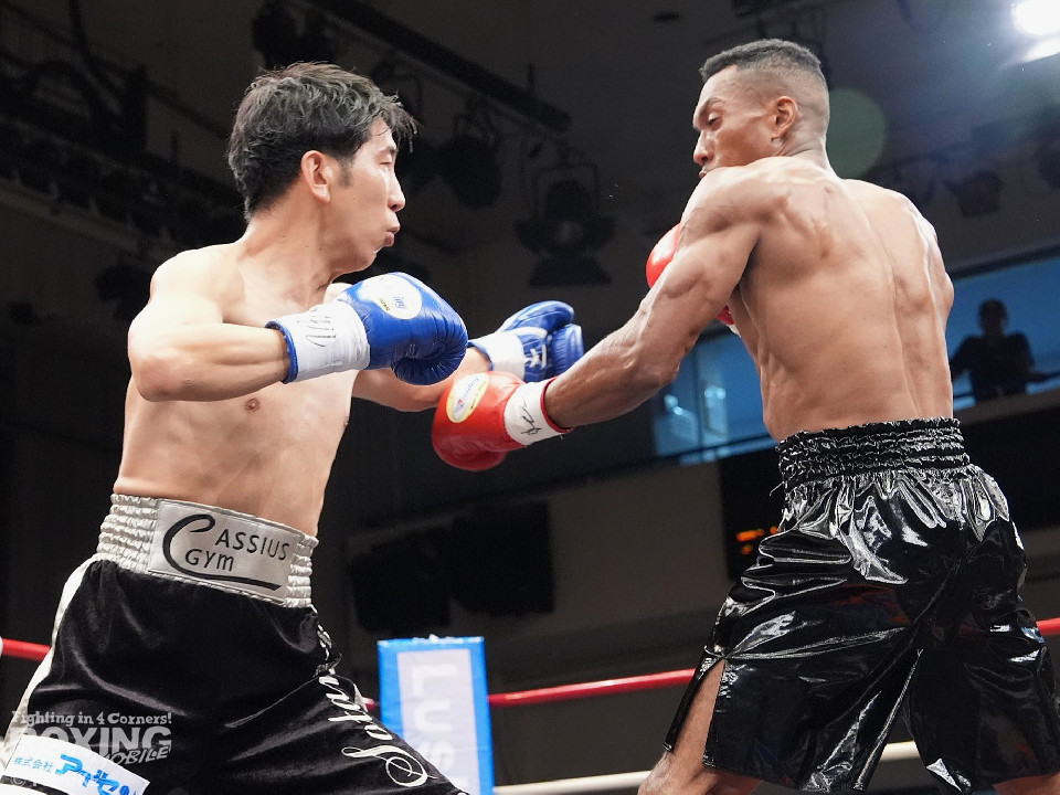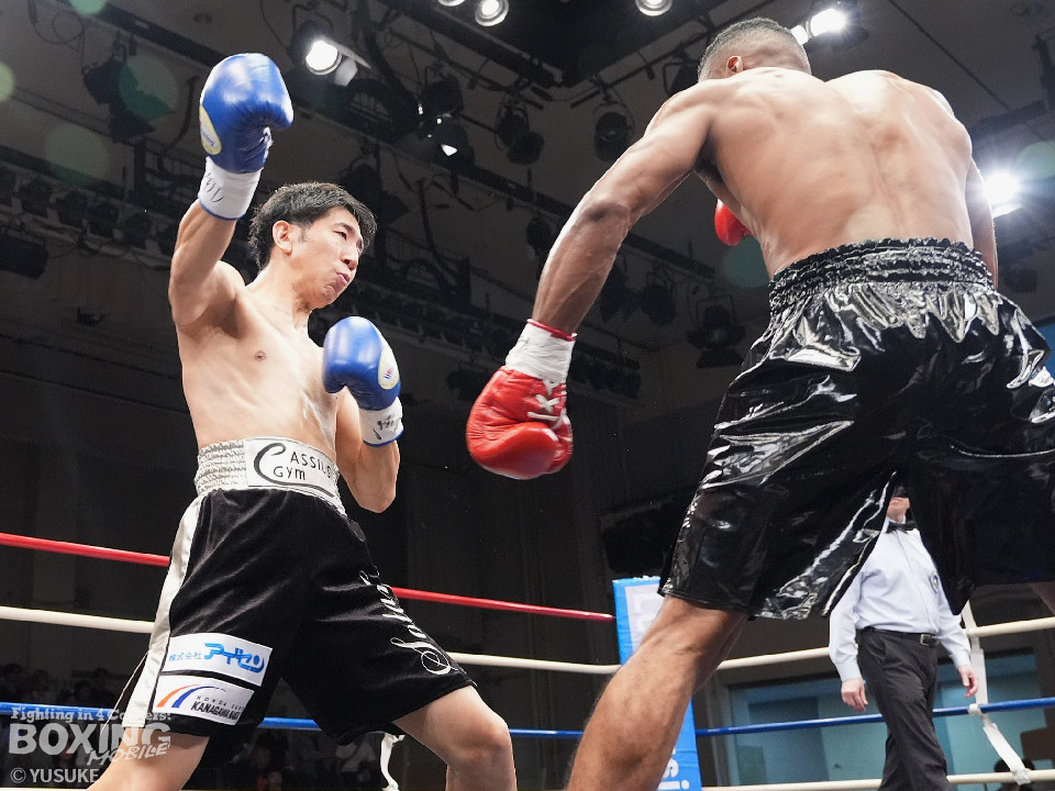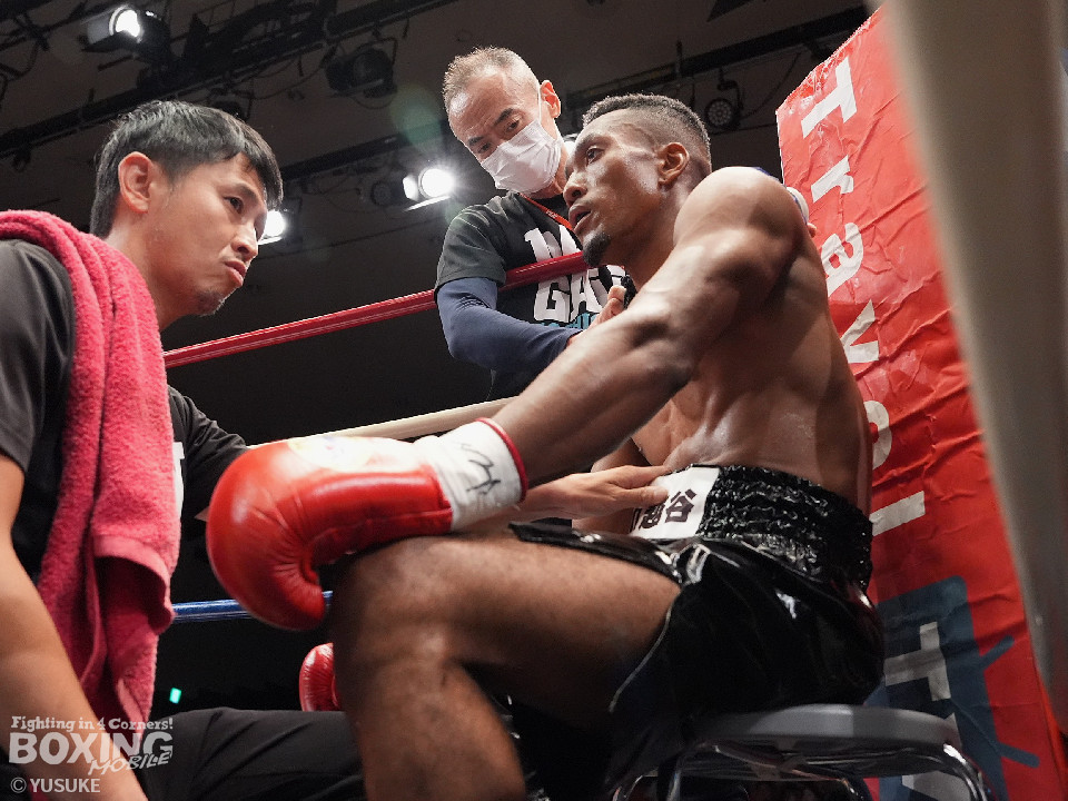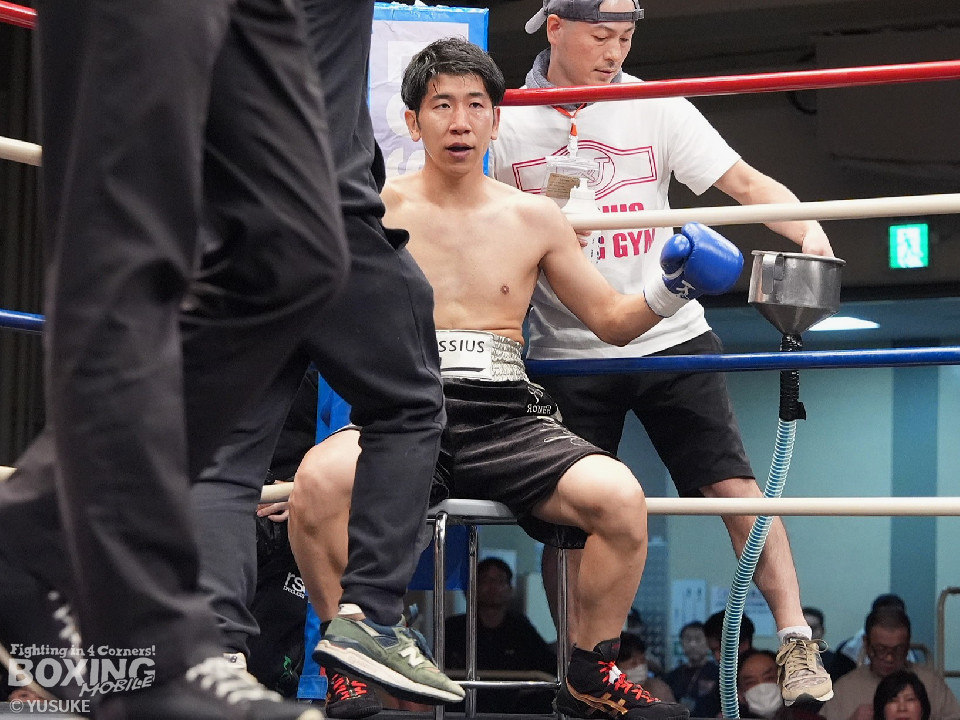 試合:エクセルがジリジリと距離を詰めて単発の左ボディ、右フックをヒット。2回、エクセルはステップインから右フックを振り抜きダウンを奪取。栗原のダメージの深さを考慮したレフェリーはノーカウントでストップした。