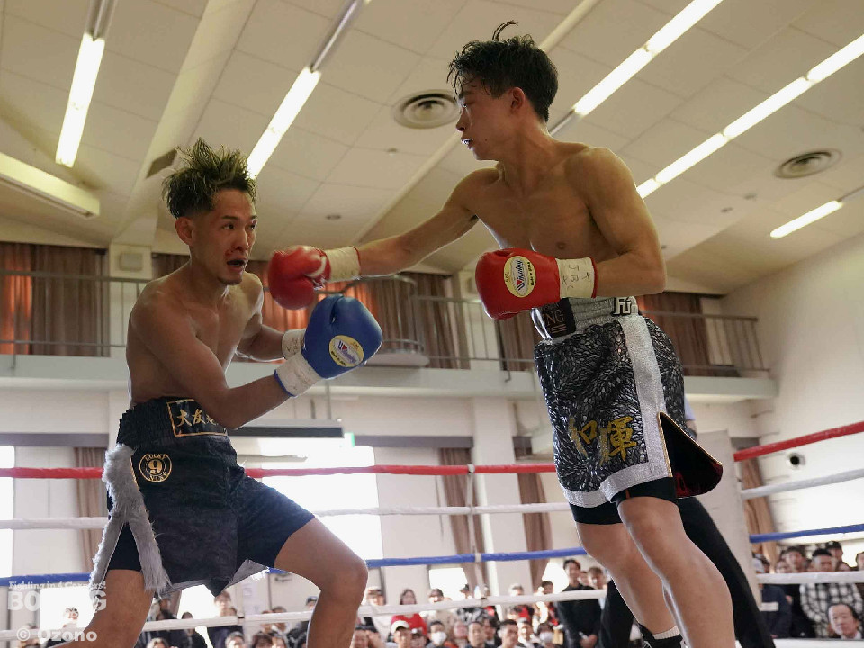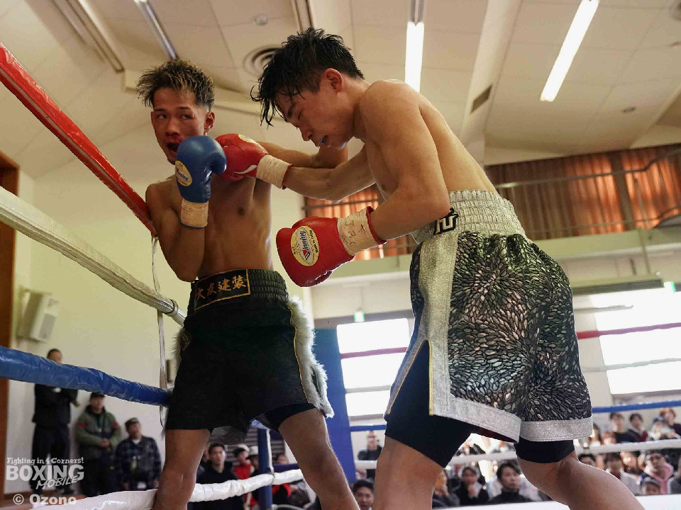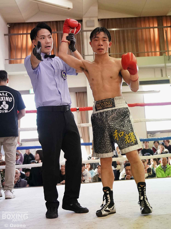 試合:北野はノーモーションの右で先制すると、踏み込んでワンツーをヒット。プレスをかけて積極的な攻勢を仕掛けた。2回、小刻みなステップを踏みながら尚もプレスをかけた北野は右から連打につなげ、大友をコーナーに押し込んだ。3回、北野はワンツーを軸に豊富な手数で攻め立て、大友にロープを背負わせた。4回、最終回にも疲れも見せず、手数をキープした北野は被弾をものともせずワンツーで前に出続けヒットを重ねた。試合は判定に委ねられ、豊富な手数でヒットを重ねた北野がデビュー戦を2-0の判定勝利で飾った。