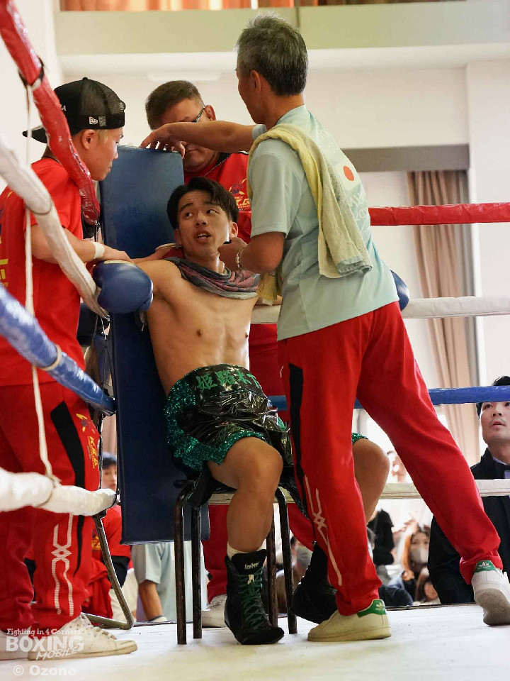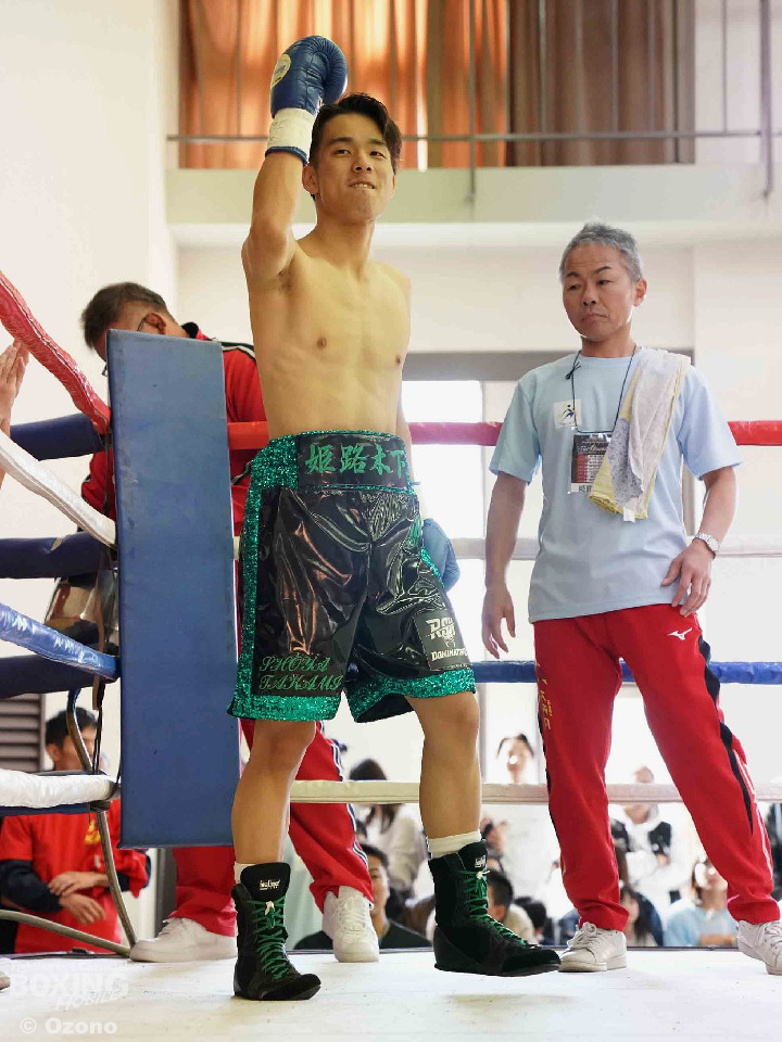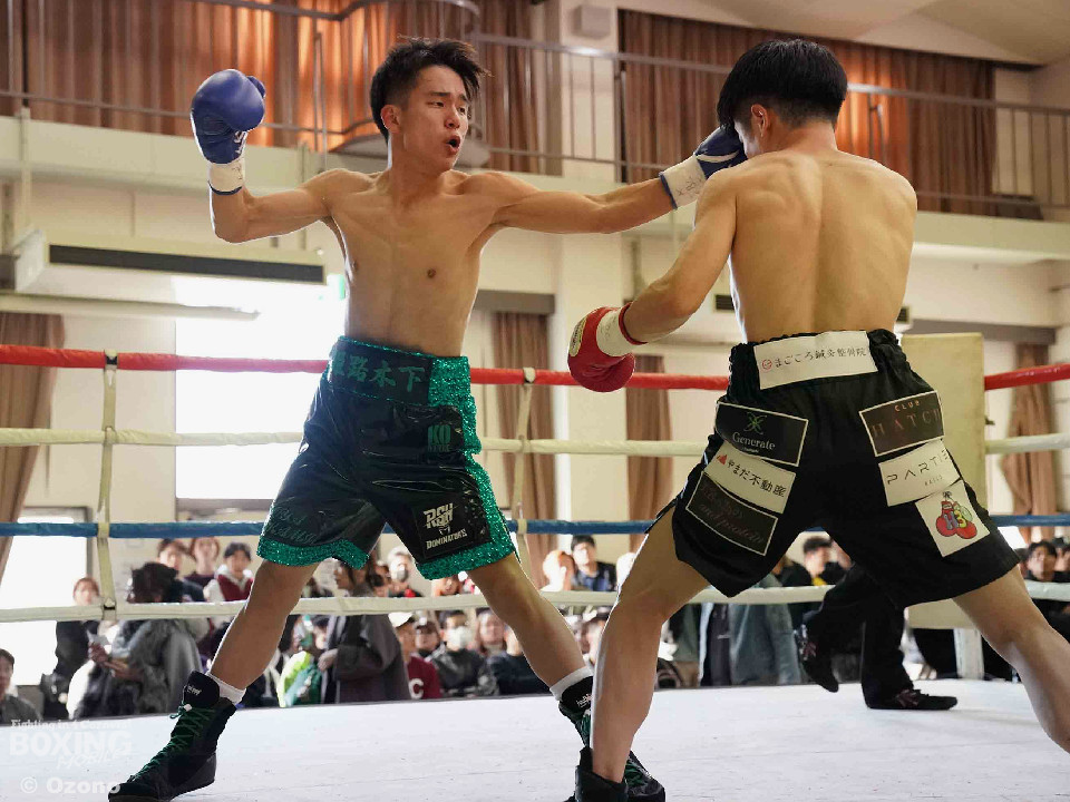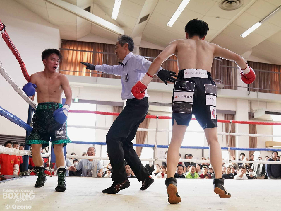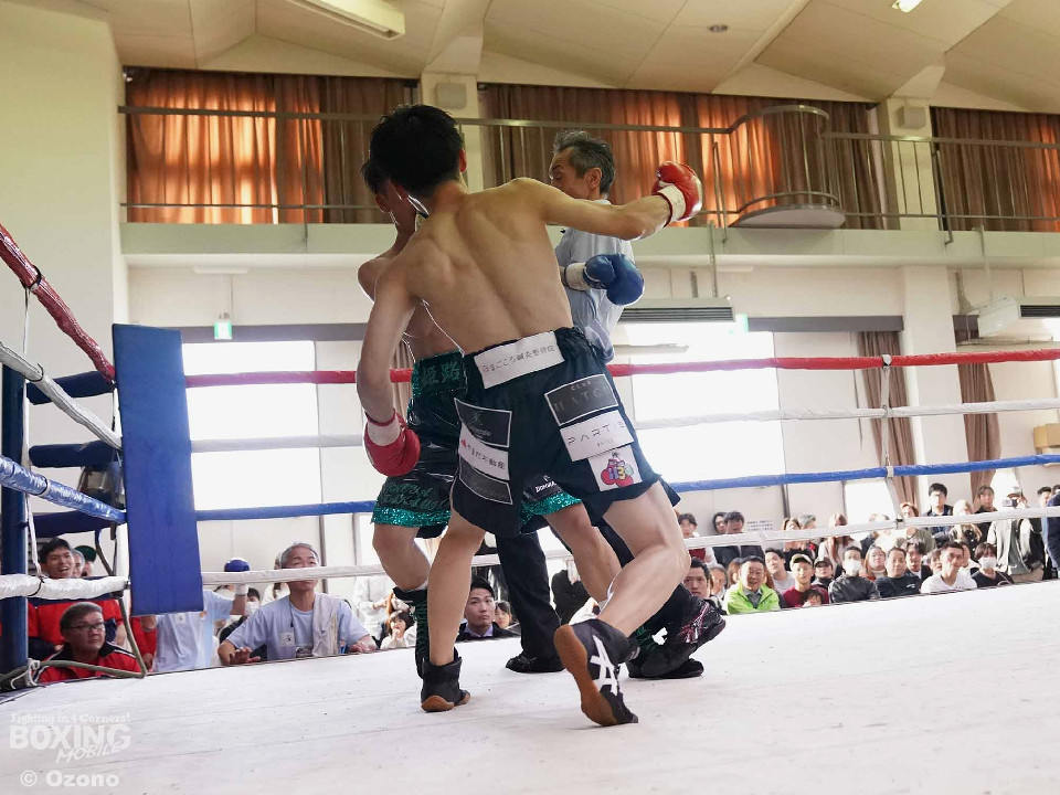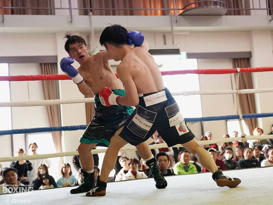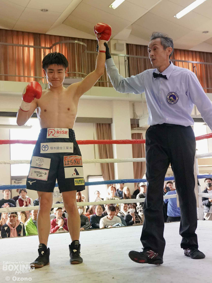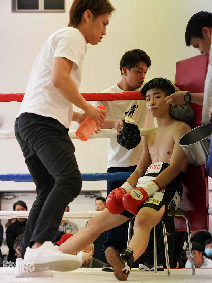 試合:互いにフェイントをかけながら機会を伺うと、高見は打ち終わりを狙いつつ、ワンツーで先制した。2回、互いにディフェンスが巧みでヒットの少ない中、隅田はボディにジャブを伸ばすとワンツーをヒット。3回、プレスをかけた隅田が右から連打につなげ、パンチを上下に打ち分けた。右フックが当たった瞬間に高見のダメージを考慮したレフェリーが試合をストップ。隅田がTKO勝利でデビュー戦を飾った。