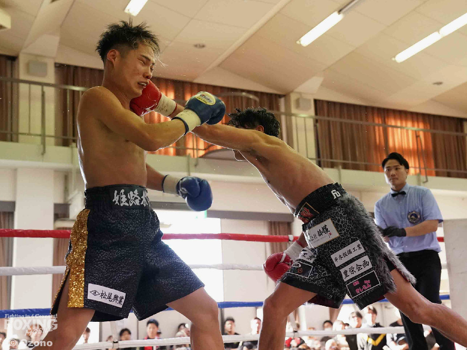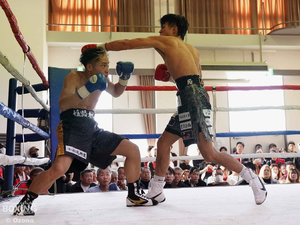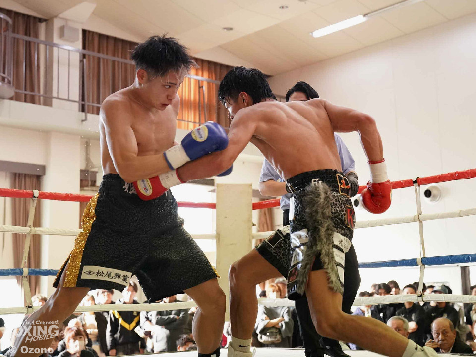 試合:松尾がワンツーで前進し、サウスポー齋藤にロープを背負わせると連打で対抗した齋藤の右フックで松尾がダウンを奪われた。2回、松尾が連打で齋藤をコーナーに押し込むと齋藤も連打で対抗した。3回、松尾がプレスをかけ、ワンツーで攻勢をかけヒットを重ねた。齋藤も連打で対抗すると右フックをヒットした。4回、ワンツーで前に出る松尾に対し、齋藤はトリッキーな動きを見せながらワンツーから右フックにつなげた。結果は判定に持ち越され、3者の支持を集めた齋藤が判定勝ちを収めた。
