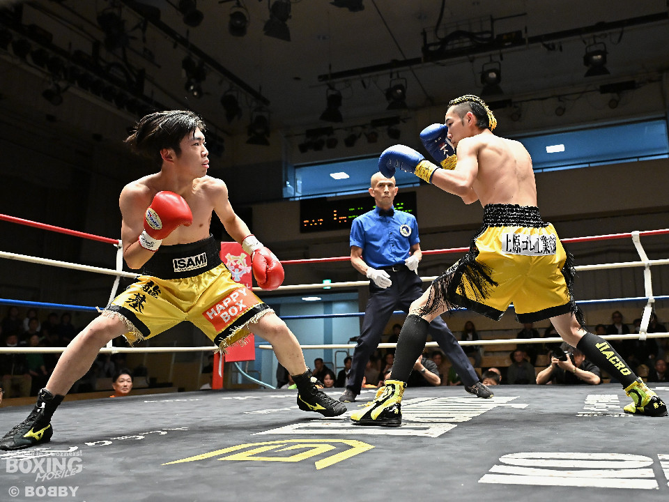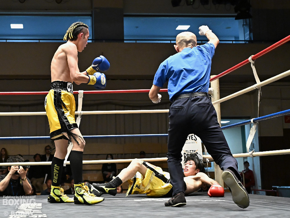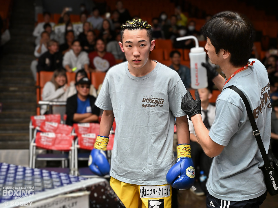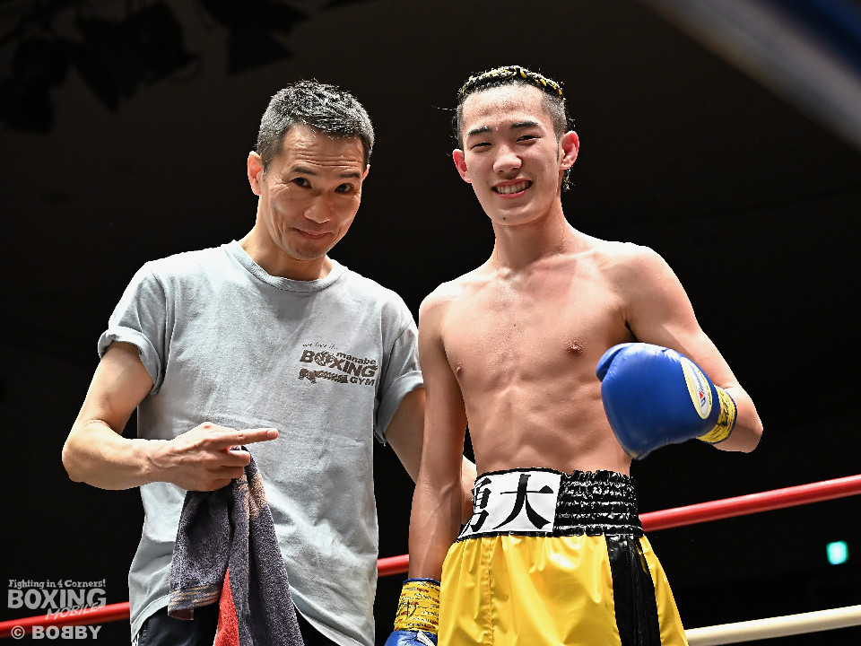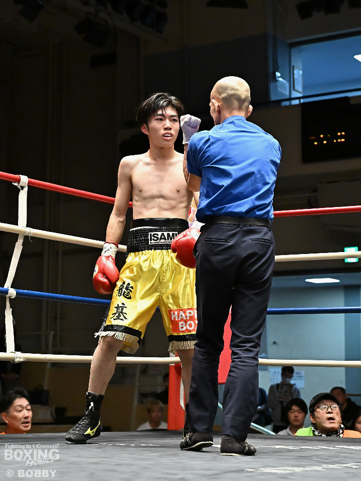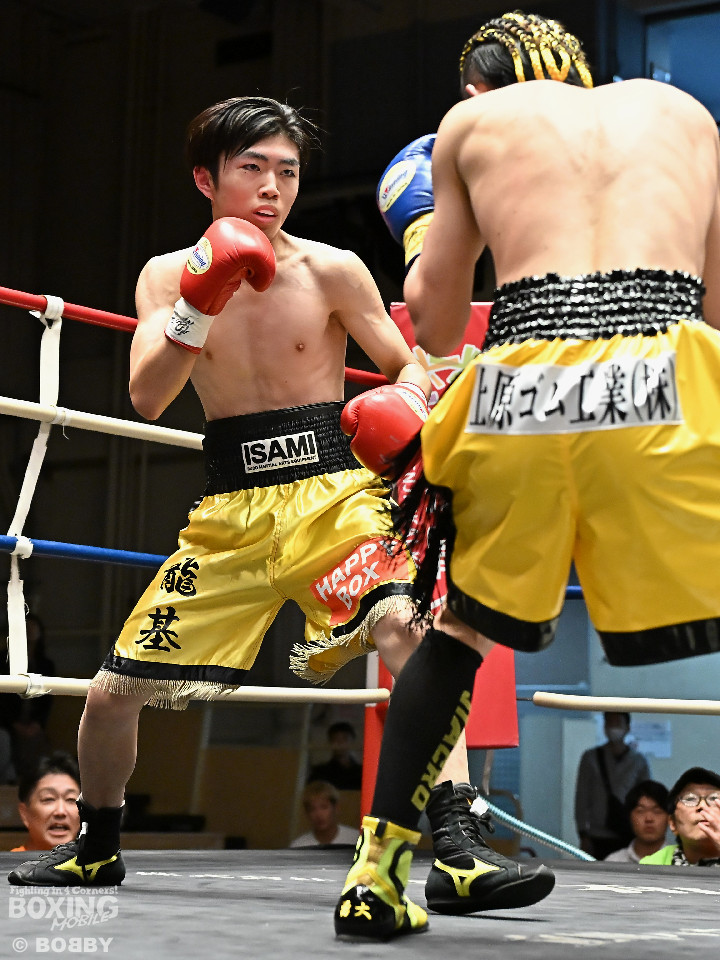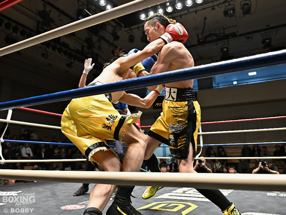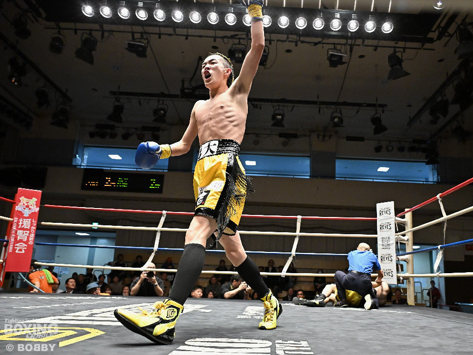 試合:上原がステップを刻みながらジャブを飛ばすと返しのパンチをバックステップで回避。ステップインから左フックをねじ込むとバランスを崩した須原を見てレフェリーはダウンを宣告した。2回、上原は前後の動きを意識しながら左フックを振り抜くとロープにもたれかかった須原を見てレフェリーはダウンを宣告。再開後、変則的な左右フックを冷静に対応した上原は左フックで倒してフィニッシュにつなげた。ダメージが深い須原は担架で運ばれた。18歳上原がデビュー戦をKO勝ちした。