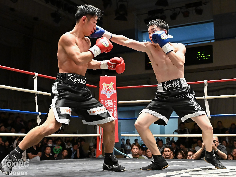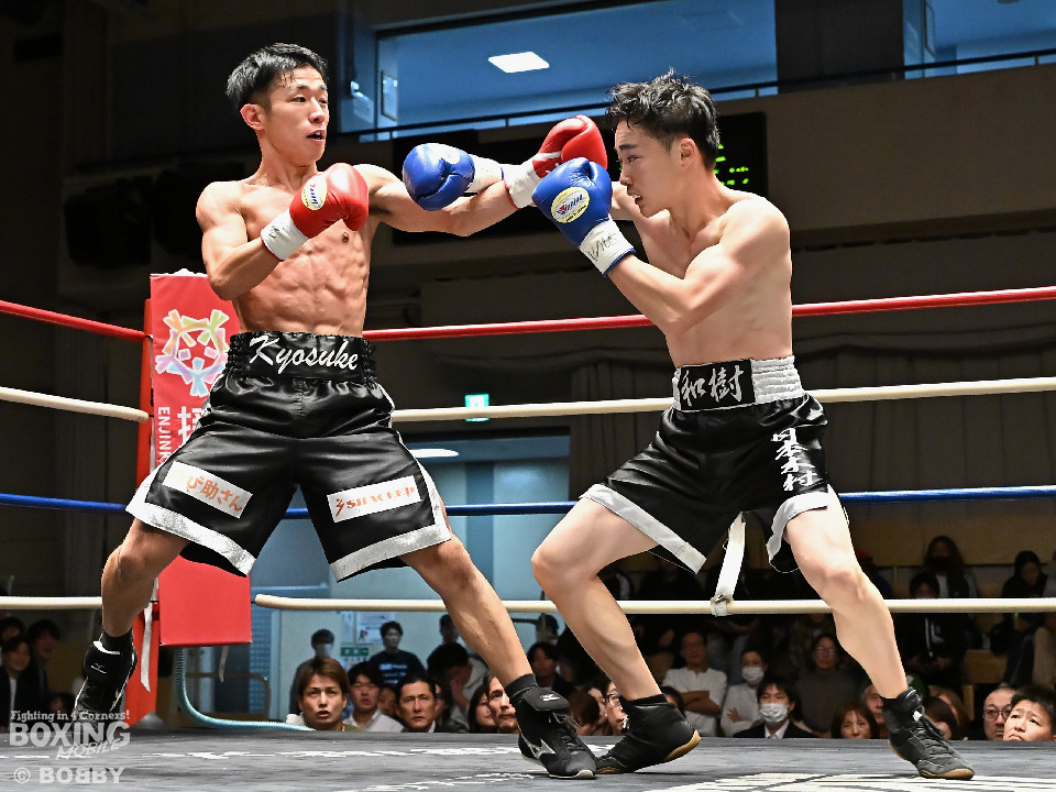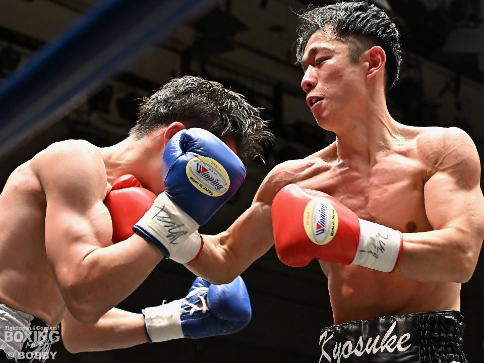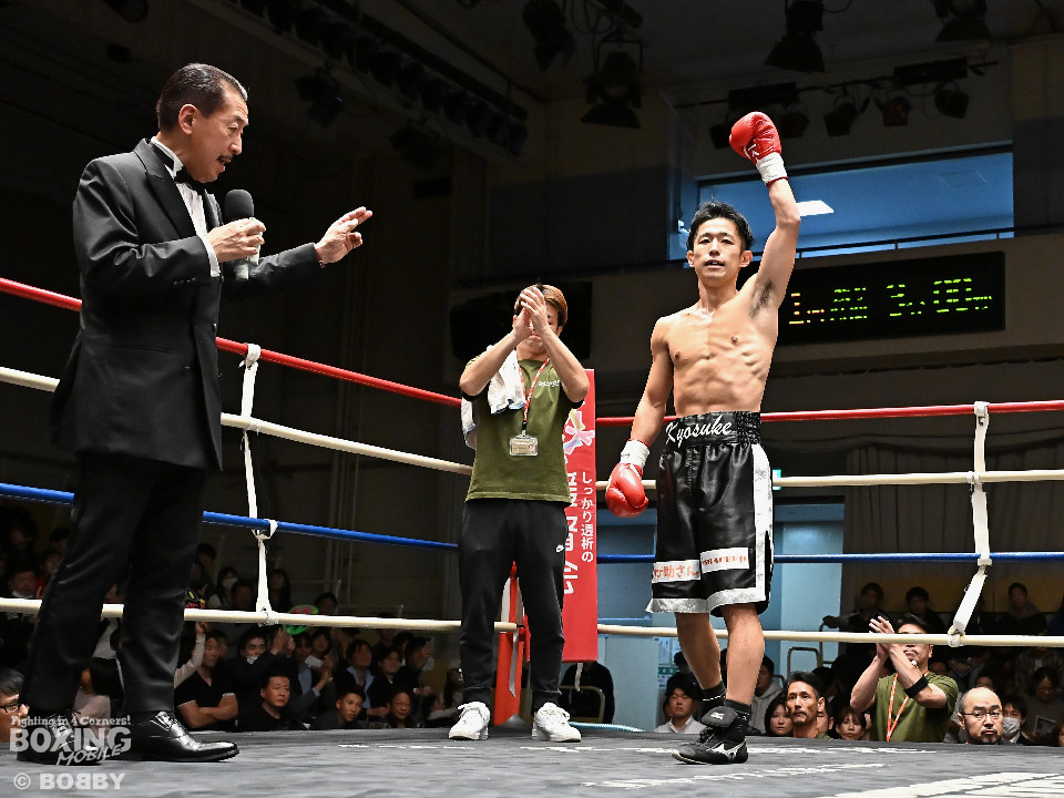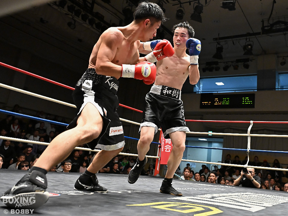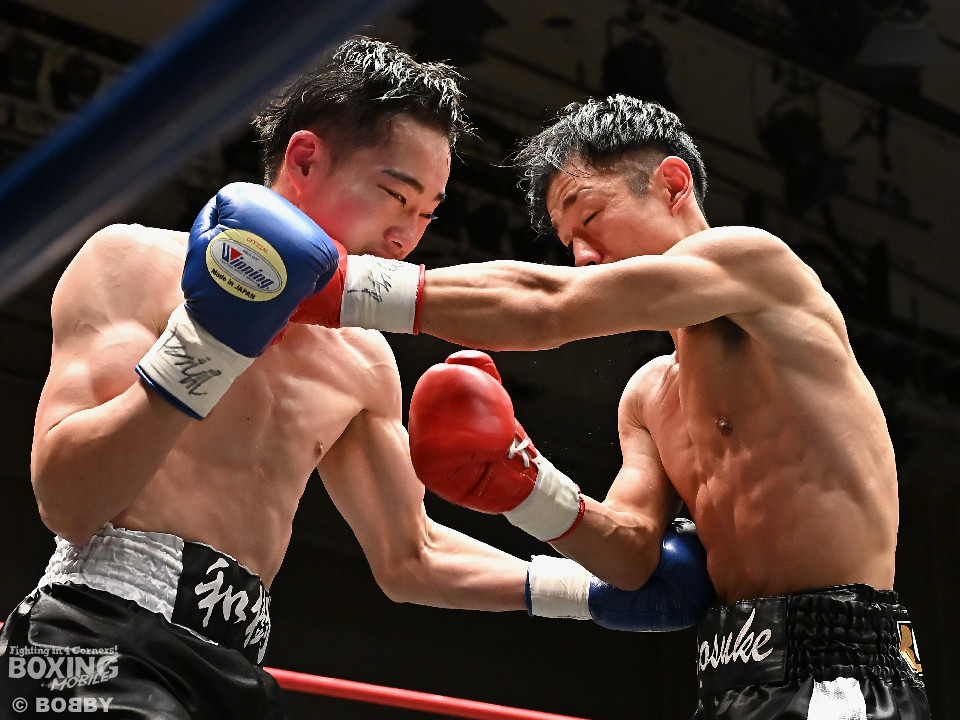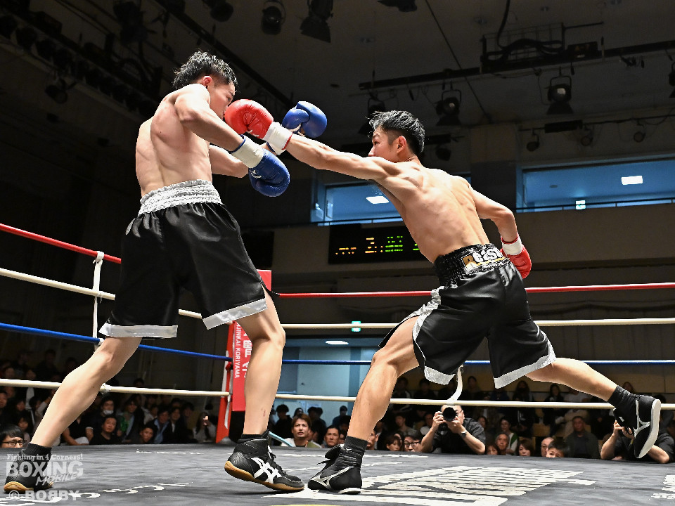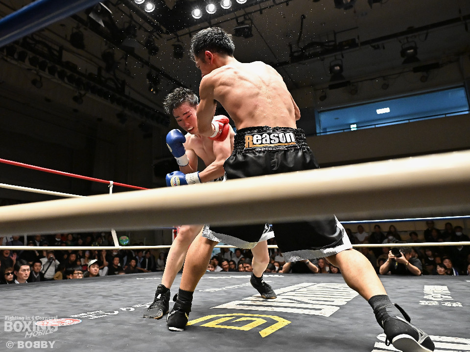 試合:昨年10月以来の再戦は、サウスポー松本がグイッと前に出て左ボディストレート、左オーバーハンドを叩きつけて先制。後手に回った本間は距離を取りつつ右ストレートを合わせた。2回、本間はスピードを活かしたアウトボクシングで見栄えの良さをアピール。3回、プレスをかけてワンツーで仕掛ける松本と出入りを活かしながら右ストレートを合わせる本間の構図。4回、松本は距離を潰して打ち合いに持ち込むと左ショートでダウンをゲット。立ち上がった本間は、フーッと息を吐き再開に応じるもダウンを奪うことができなかった。ジャッジ2者の支持を得た松本がリベンジを果たした。