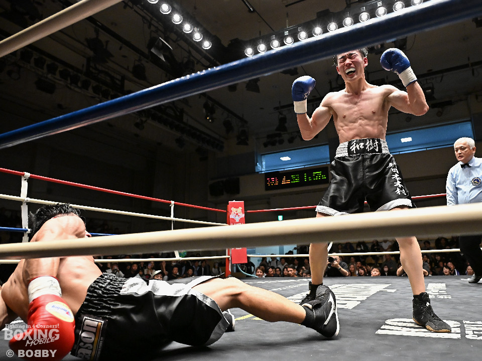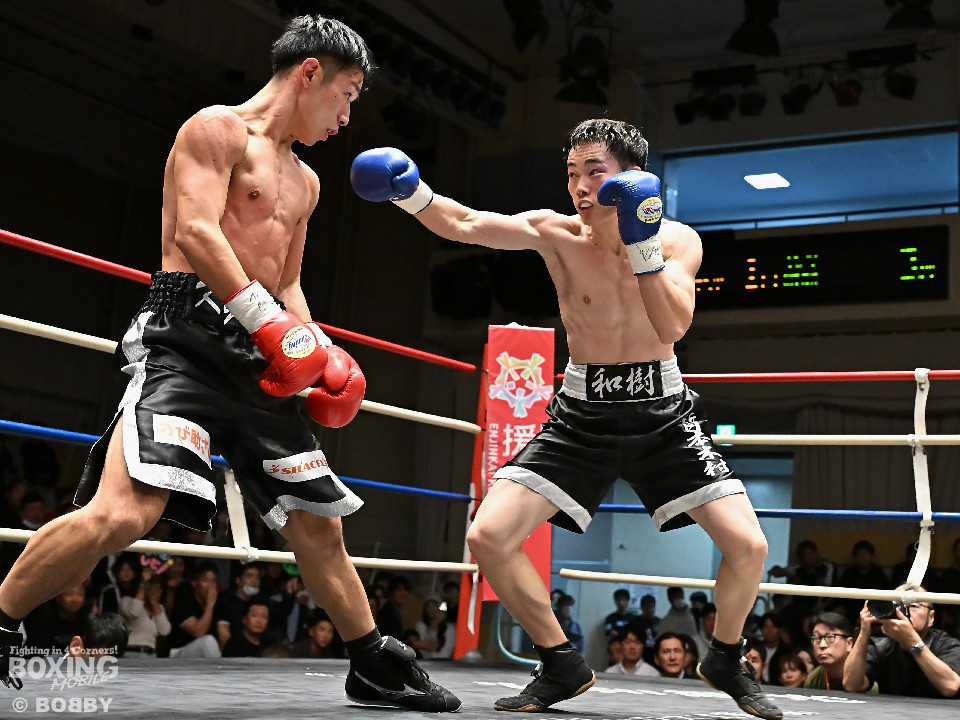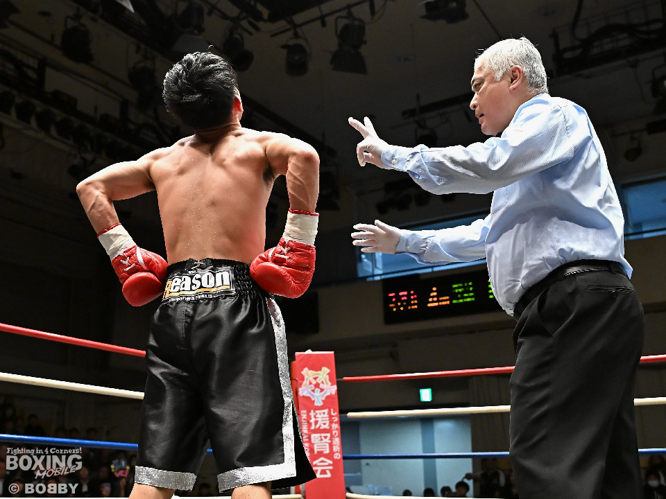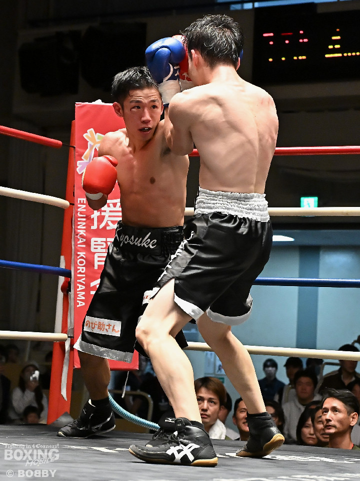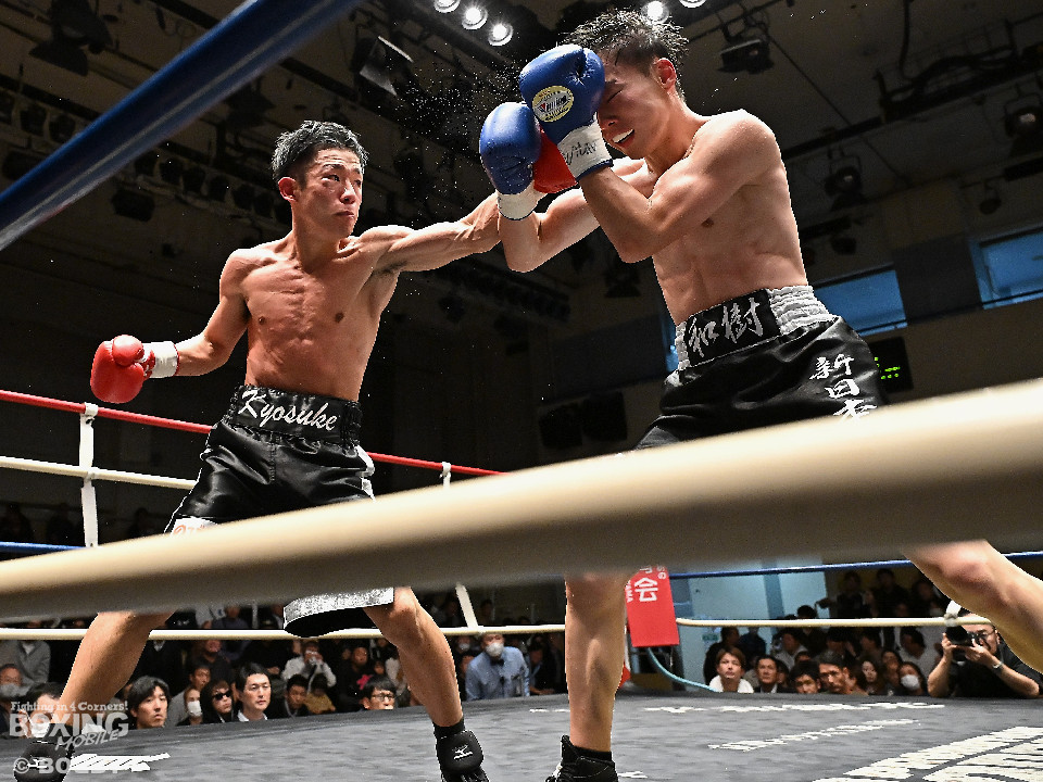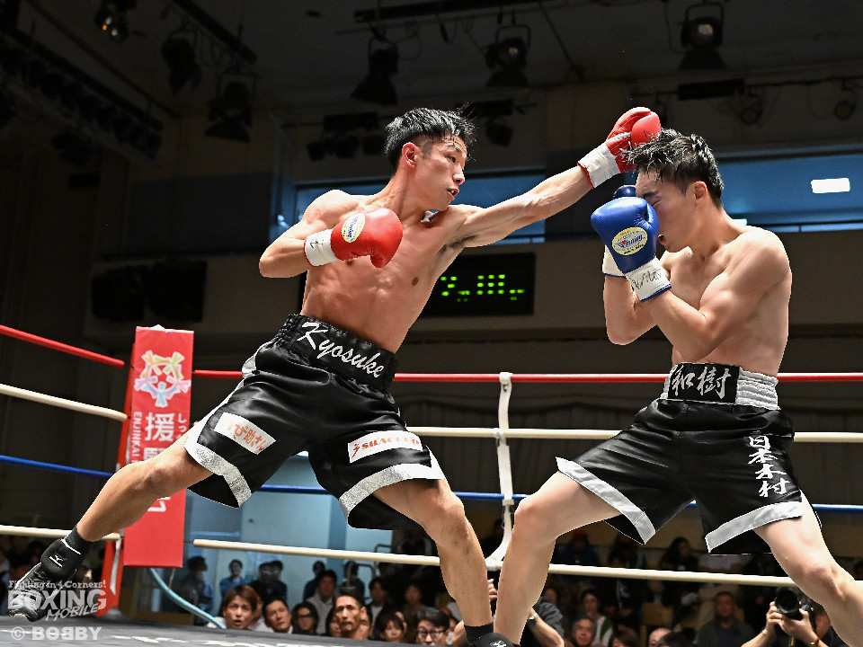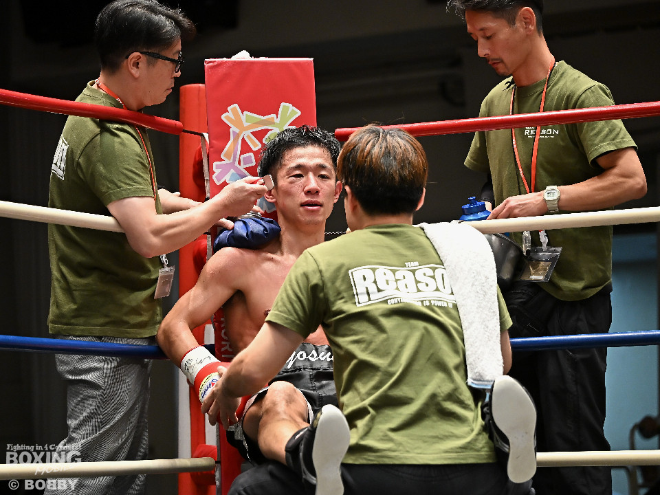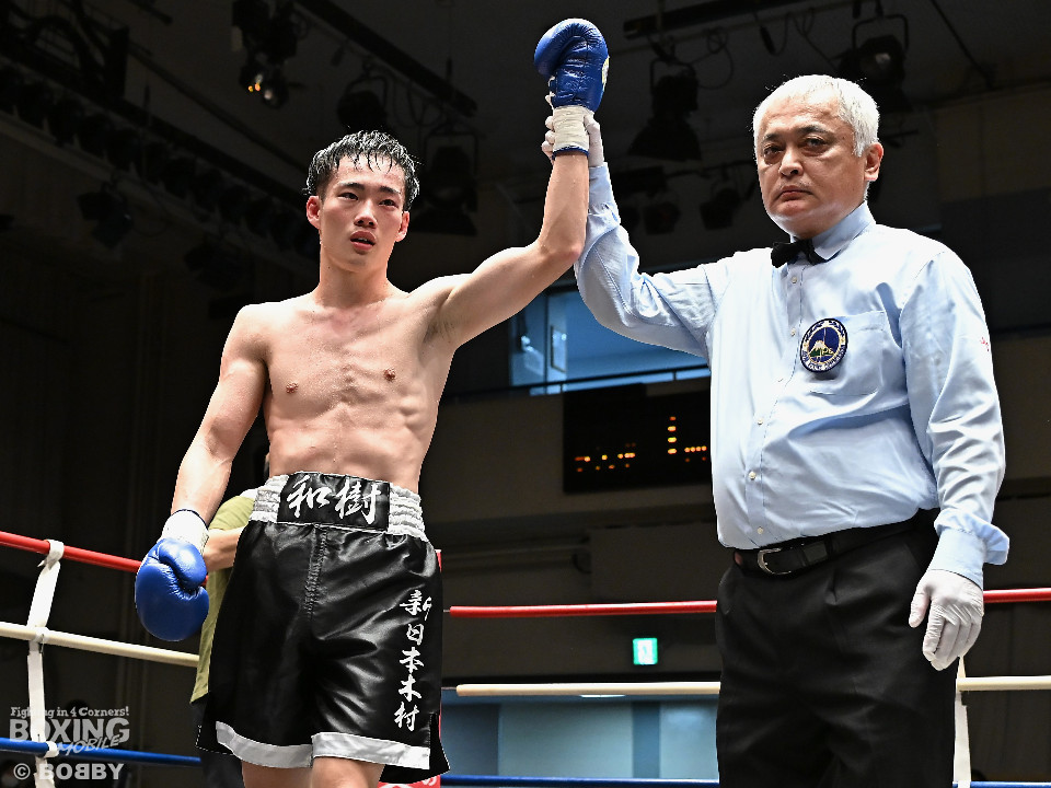試合:昨年10月以来の再戦は、サウスポー松本がグイッと前に出て左ボディストレート、左オーバーハンドを叩きつけて先制。後手に回った本間は距離を取りつつ右ストレートを合わせた。2回、本間はスピードを活かしたアウトボクシングで見栄えの良さをアピール。3回、プレスをかけてワンツーで仕掛ける松本と出入りを活かしながら右ストレートを合わせる本間の構図。4回、松本は距離を潰して打ち合いに持ち込むと左ショートでダウンをゲット。立ち上がった本間は、フーッと息を吐き再開に応じるもダウンを奪うことができなかった。ジャッジ2者の支持を得た松本がリベンジを果たした。