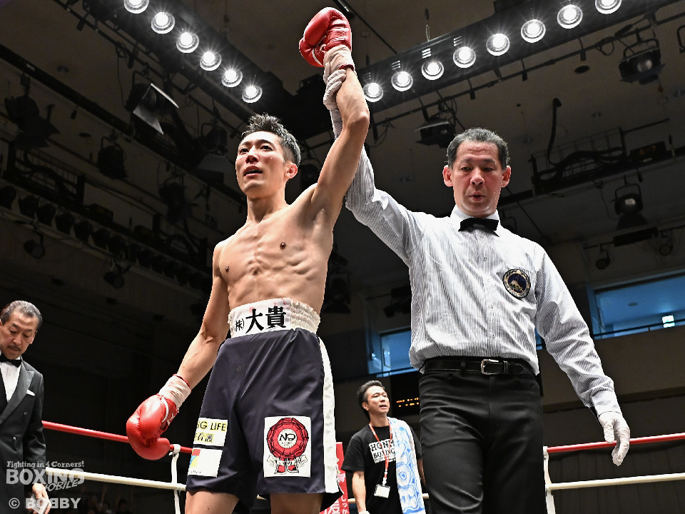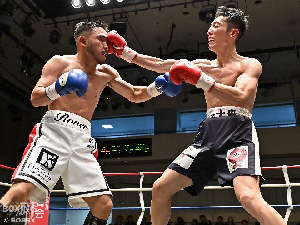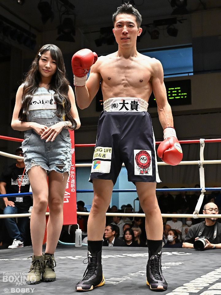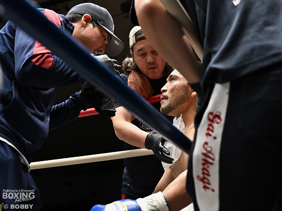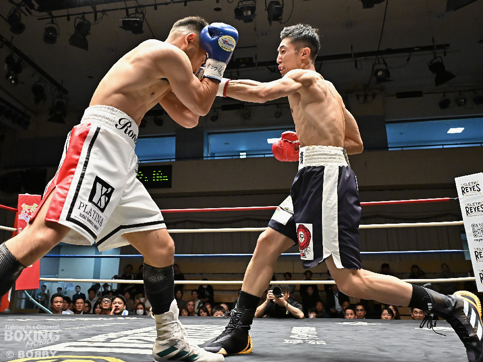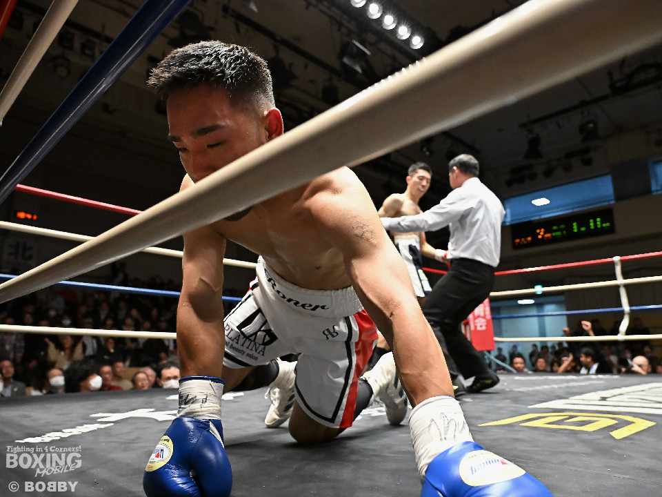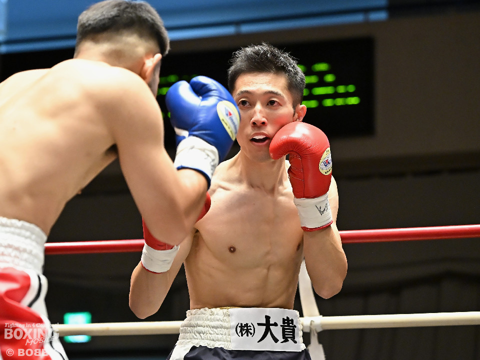 試合:サウスポー菅原がジャブからワンツー、左アッパーで迎え撃つとサイドに回り込んで的を絞らせず。2回、鶴田はプレスをかけて右ボディを突き刺し反撃。打ち合いを避けたい菅原は、左ストレートを再三ヒットするとワンツーで尻もちをつかせた。再開後、仕留めに行くが鶴田は必死の抵抗。3回、鶴田は距離を詰めて右フックで起死回生のダウンをゲット!今度は鶴田がグイグイと攻め立てた。4回、菅原はワンツーを軸に攻勢。驚異の粘りを見せた鶴田を突き放した。菅原がダウン応酬の激戦を制した。