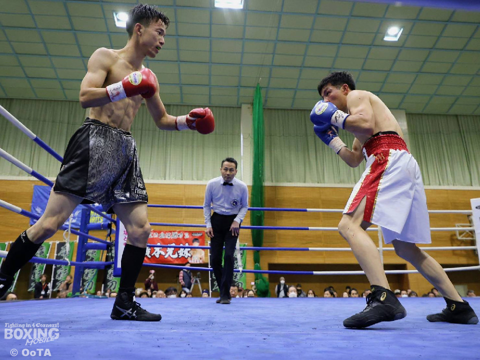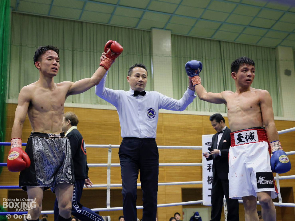 試合:河上がスタートから距離を潰して先制。松怒魅もジャブを突くが河上のペースにのみ込まれた。2回、攻め手を強めた河上だが、松怒魅も相打ちの左右フックで打開。3回、河上が左ボディを利かせてロープに詰める展開を作るも、松怒魅はコツコツとパンチを返し反撃し一進一退の攻防。最終回、意地の打ち合いを展開した両者。甲乙つけがたい好試合はドロー決着となった。