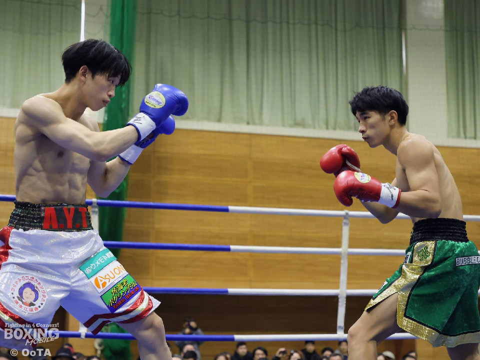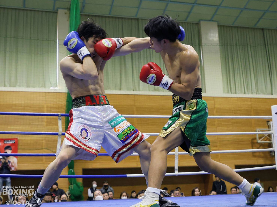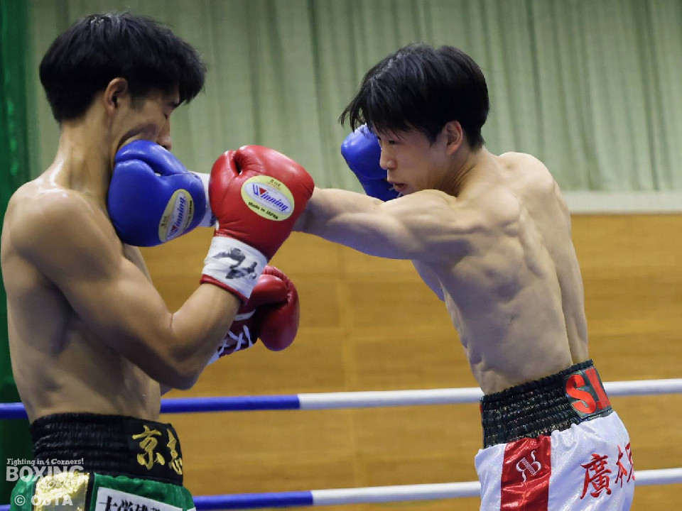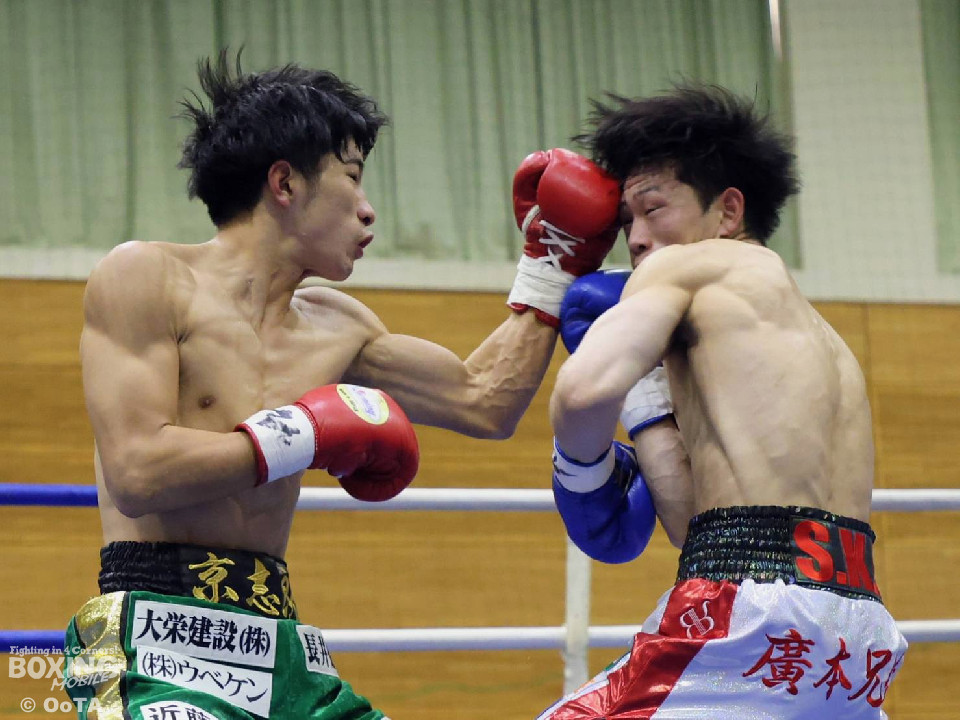試合:廣本がリーチを活かしてジャブで距離を支配する立ち上がり。2回、ここも廣本のジャブが機能するが、長井も踏み込みのスピードに勝ると、パンチをまとめてポイントをアピール。続く3回、踏み込みのタイミングを掴んだ長井が、ジャブの距離を潰して状況を打開。4回、ハンドスピードで上回った長井は踏み込んでの連打でペースを奪い返した。最終回、廣本が打ち終わりのカウンターから強引に攻勢に出るが、長井も一歩も引かず打ち合いに挑んだ。互いに総力を尽くした激闘は判定へと持ち込まれ、引き分けとなった。