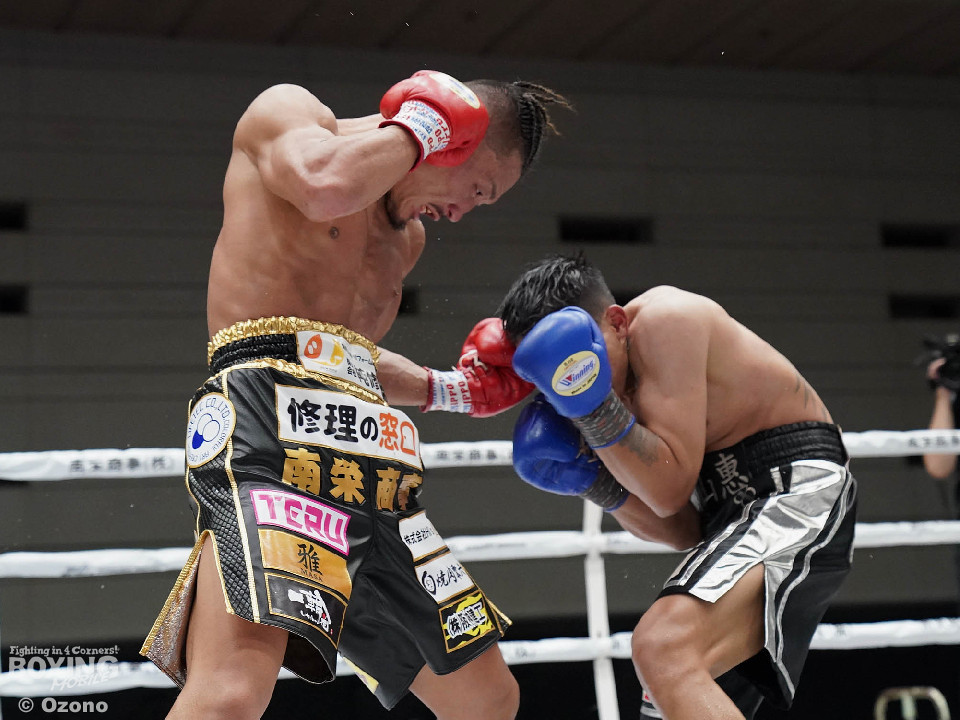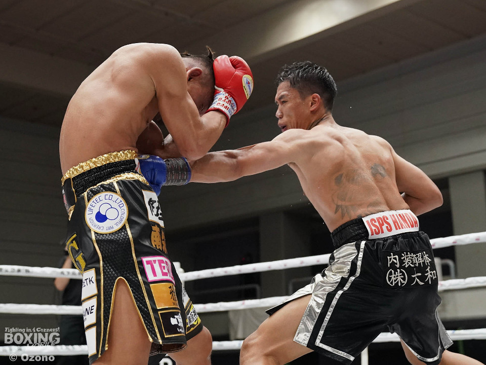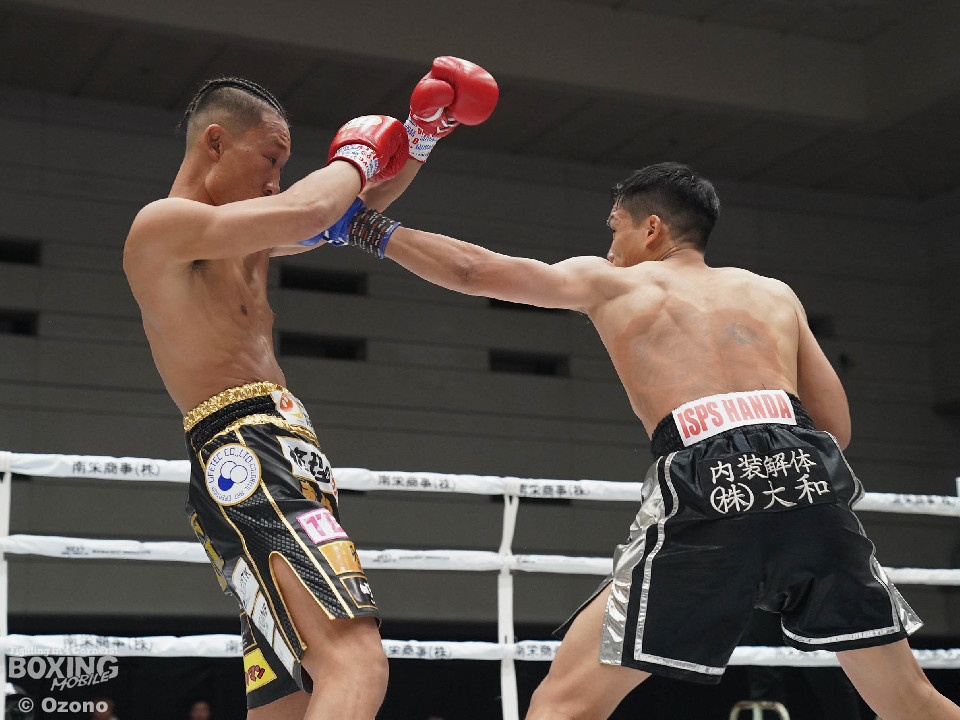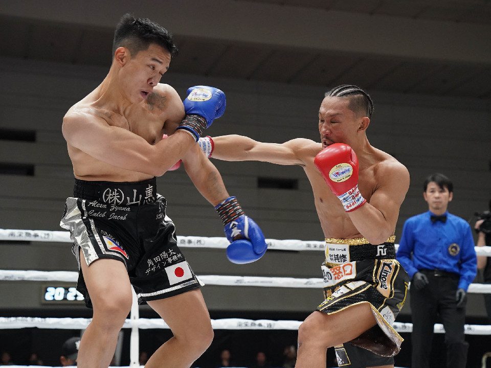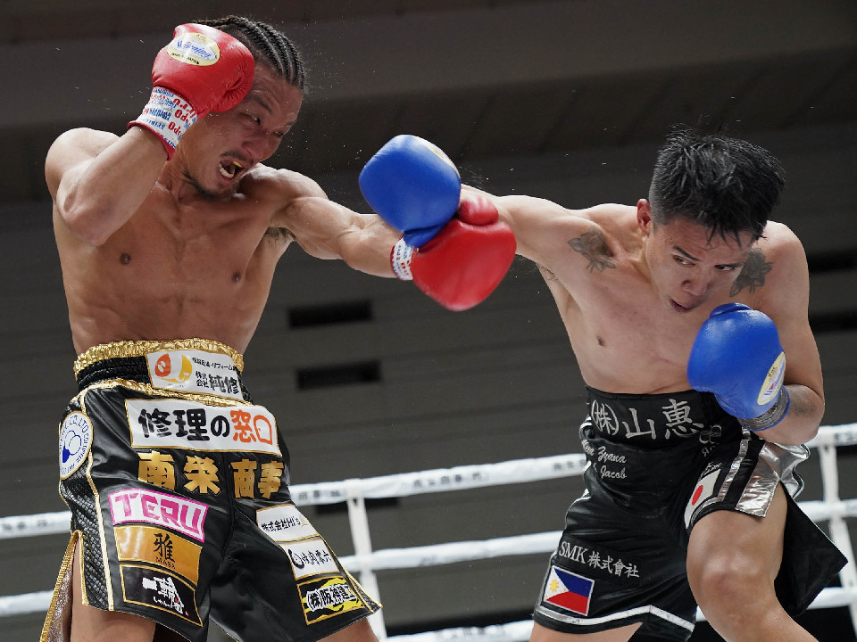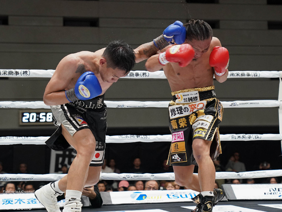 試合:山本が丁寧にジャブを突きながら距離をキープ。2回、山本は左ボディ、右アッパーを好打するとボディにパンチを集めて体力を削りにいく。福重は左右フックを返したが後手に回った。3回、山本は左ボディを突き刺すと右フックを強振。4回も山本のラウンド、プッシュしながら左ボディから右アッパーにつなげた。5回、山本はジャブを軸にワンツー、右アッパーを好打。福重は必死に右フックを返すが、パンチは空を切った。6回、ボディの打ち合いで我慢比べが続いた。7回、山本は打ったら動くを意識。福重は左ボディを返した。8回、劣勢の福重は回転力を上げて逆転を狙うが。山本も押し負けなかった。終始、有効打で上回った山本がランカーの力を示した。