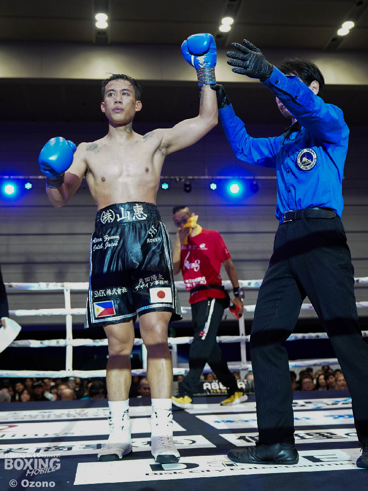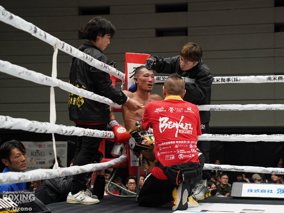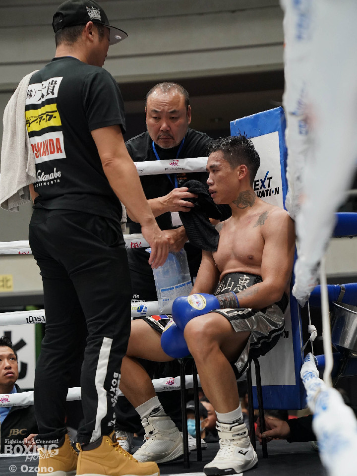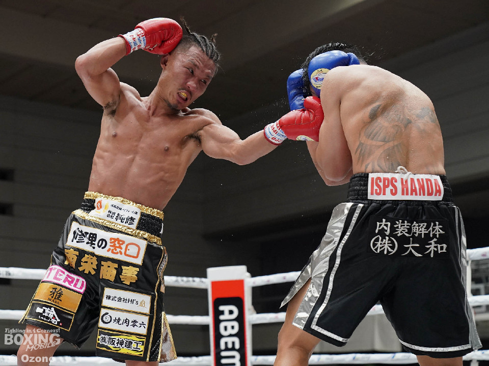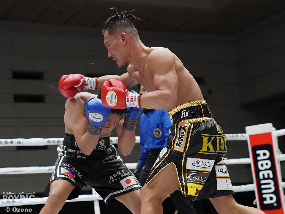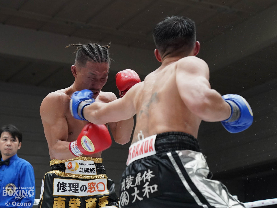 試合:山本が丁寧にジャブを突きながら距離をキープ。2回、山本は左ボディ、右アッパーを好打するとボディにパンチを集めて体力を削りにいく。福重は左右フックを返したが後手に回った。3回、山本は左ボディを突き刺すと右フックを強振。4回も山本のラウンド、プッシュしながら左ボディから右アッパーにつなげた。5回、山本はジャブを軸にワンツー、右アッパーを好打。福重は必死に右フックを返すが、パンチは空を切った。6回、ボディの打ち合いで我慢比べが続いた。7回、山本は打ったら動くを意識。福重は左ボディを返した。8回、劣勢の福重は回転力を上げて逆転を狙うが。山本も押し負けなかった。終始、有効打で上回った山本がランカーの力を示した。