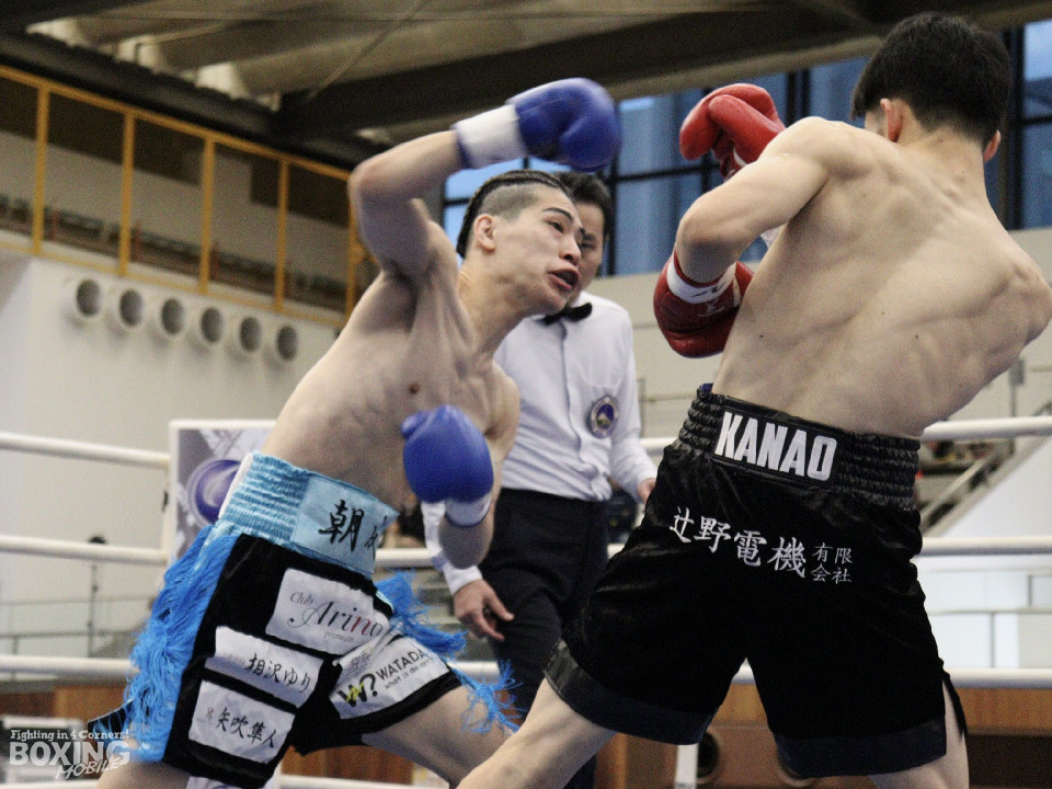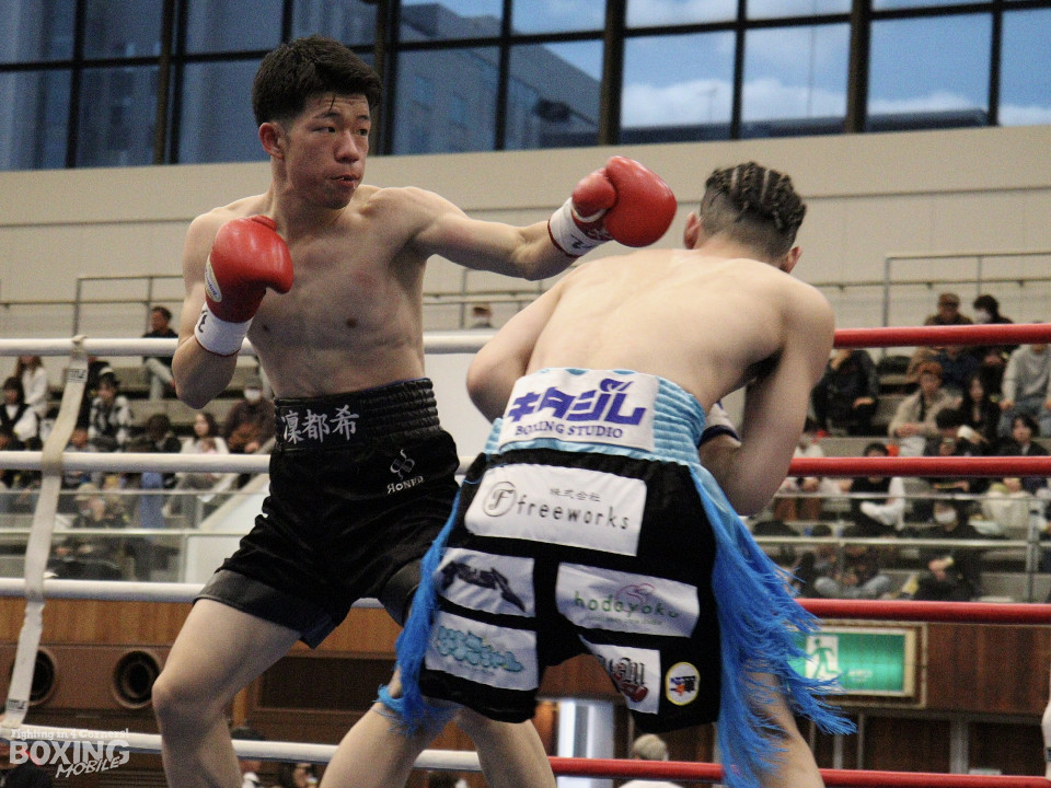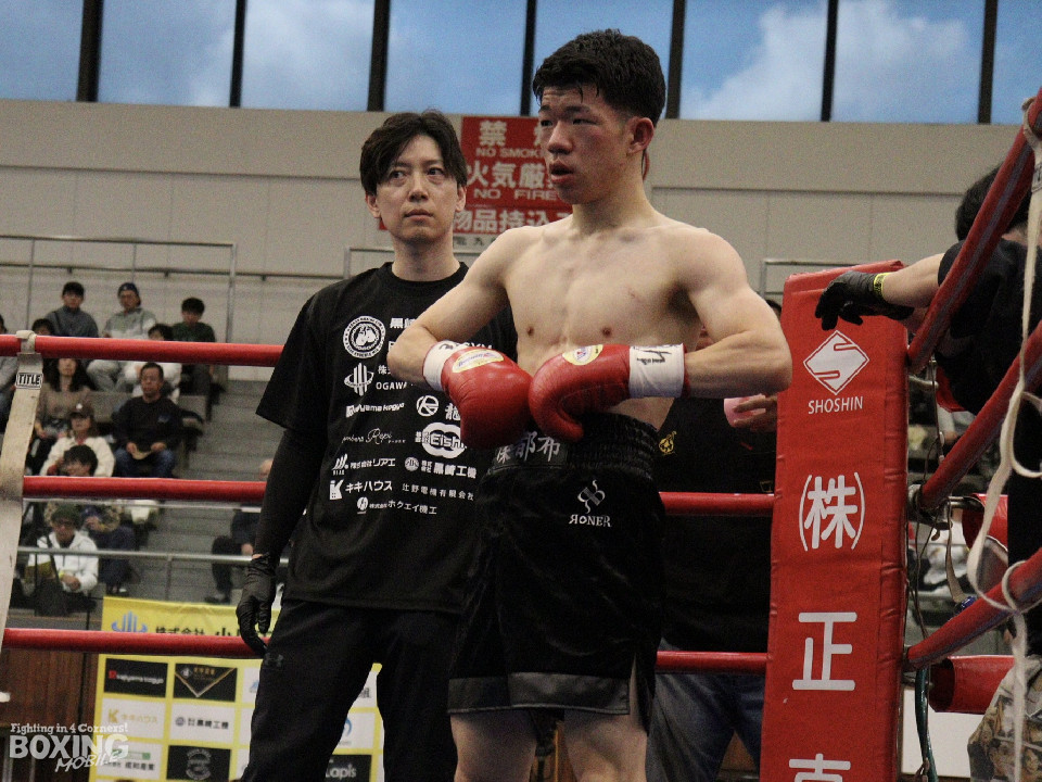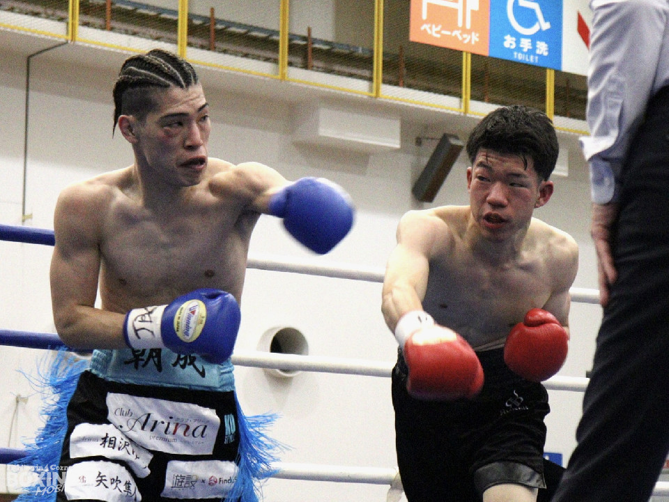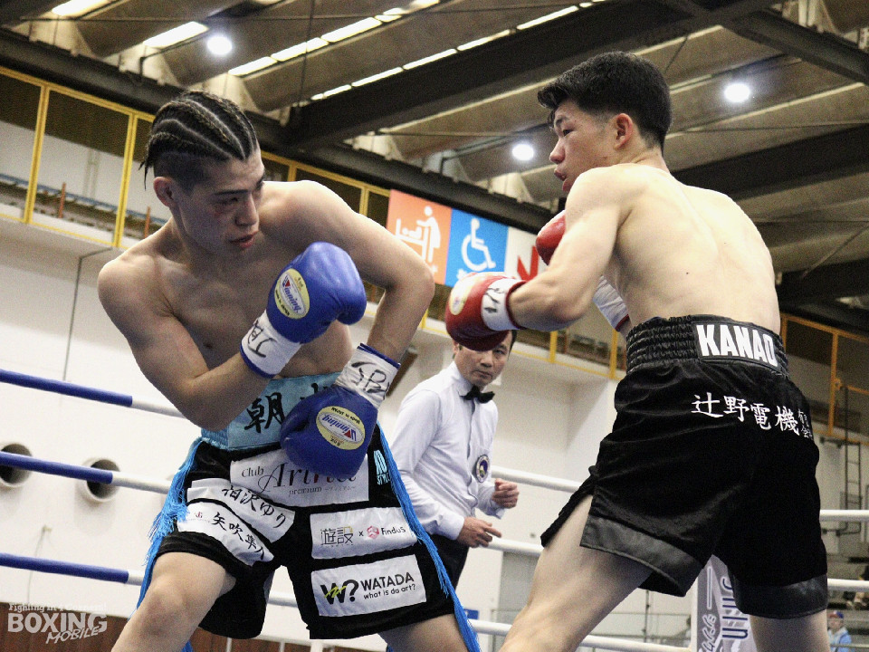 試合:デビュー戦同士による一戦は、中間距離でし烈なペース争い。その中で土方がワンツー左ボディをヒット。2回、なかなかクリーンヒットを奪えない伊豆だが、ワンツーで後退させるとパンチをまとめてジャッジに攻勢をアピール。3回、土方が左ボディを突き刺せば、伊豆も打ち下ろしの右ストレートで譲らず。ジャッジを悩ませた。4回、右ストレートを何度も交錯させたが、」決定打は生まれなかった。ジャッジ1者は伊豆につけたが残り2者は引き分けとし、決着がつかなかった。