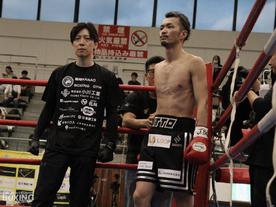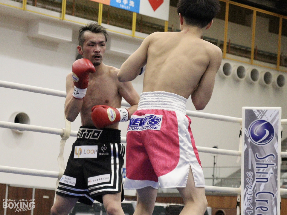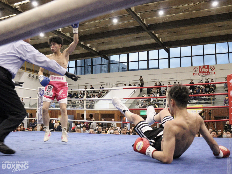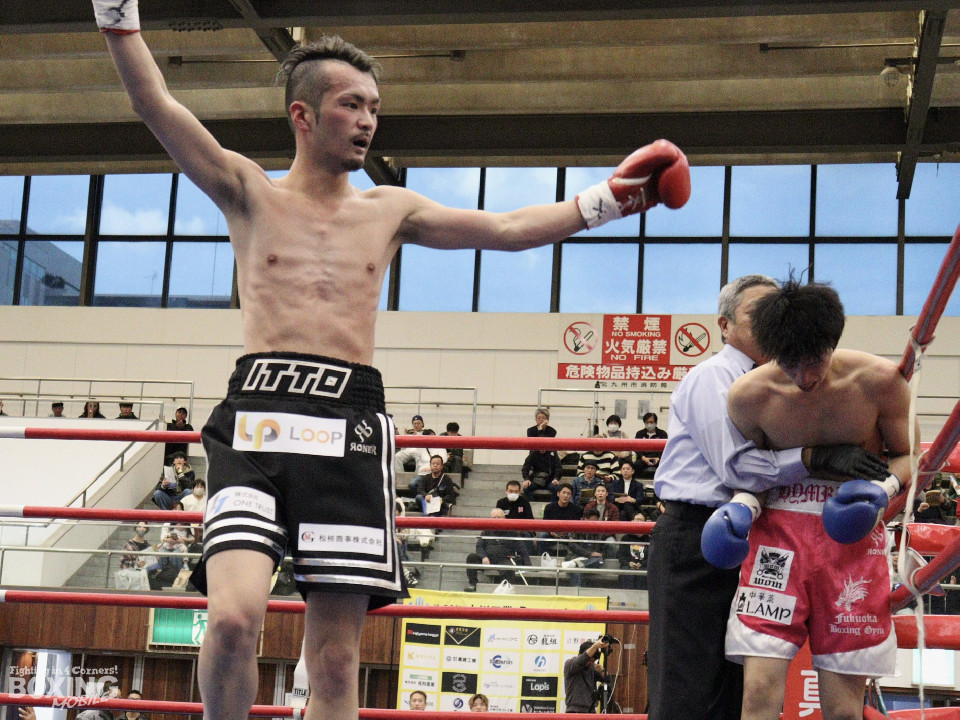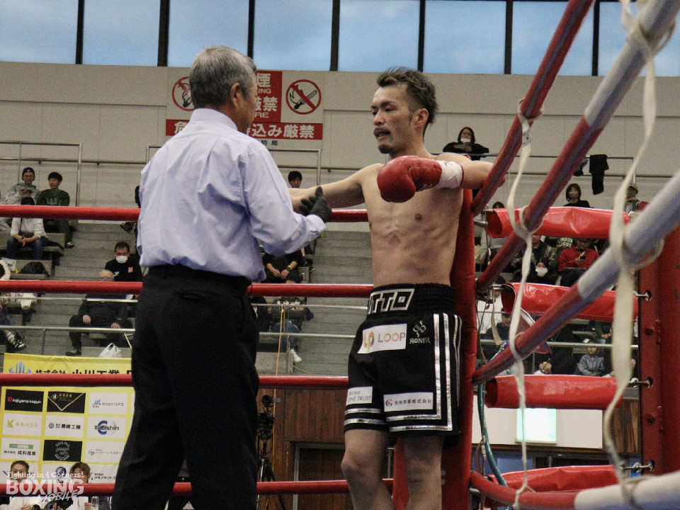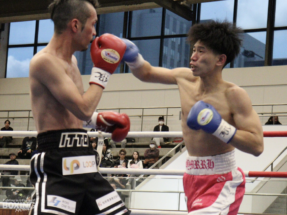 試合:石田が距離を詰めて積極的に攻めるとワンツー、左フックでダウンを奪取。立ち上がった小西はダメージが感じられるが、強気に攻めるとワンツーで顔を弾き反撃。2回、小西は長いリーチを活かしたジャブで組み立てるとグイグイと攻め立てた。流れが目まぐるしくに変わった。3回、小西は右ストレートでグラつかせたところでレフェリーが割って入った。小西が逆転KO勝ちでデビュー戦を飾った。