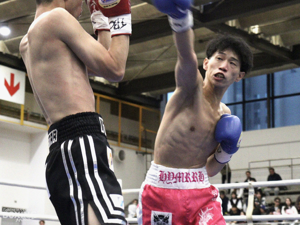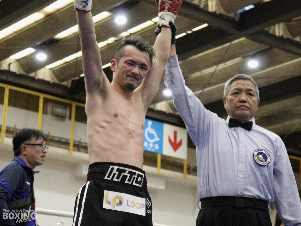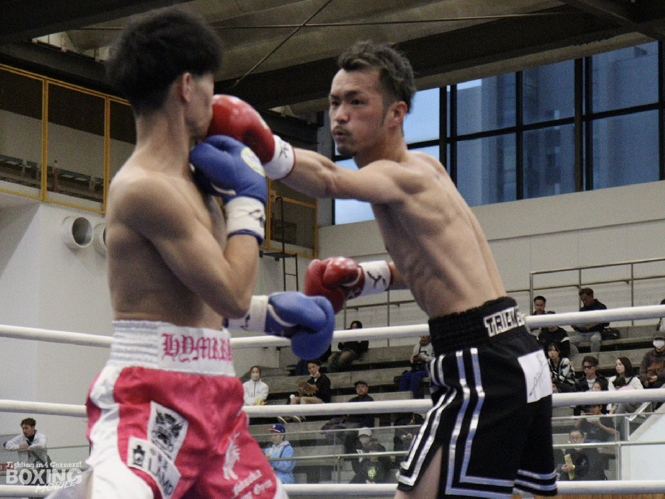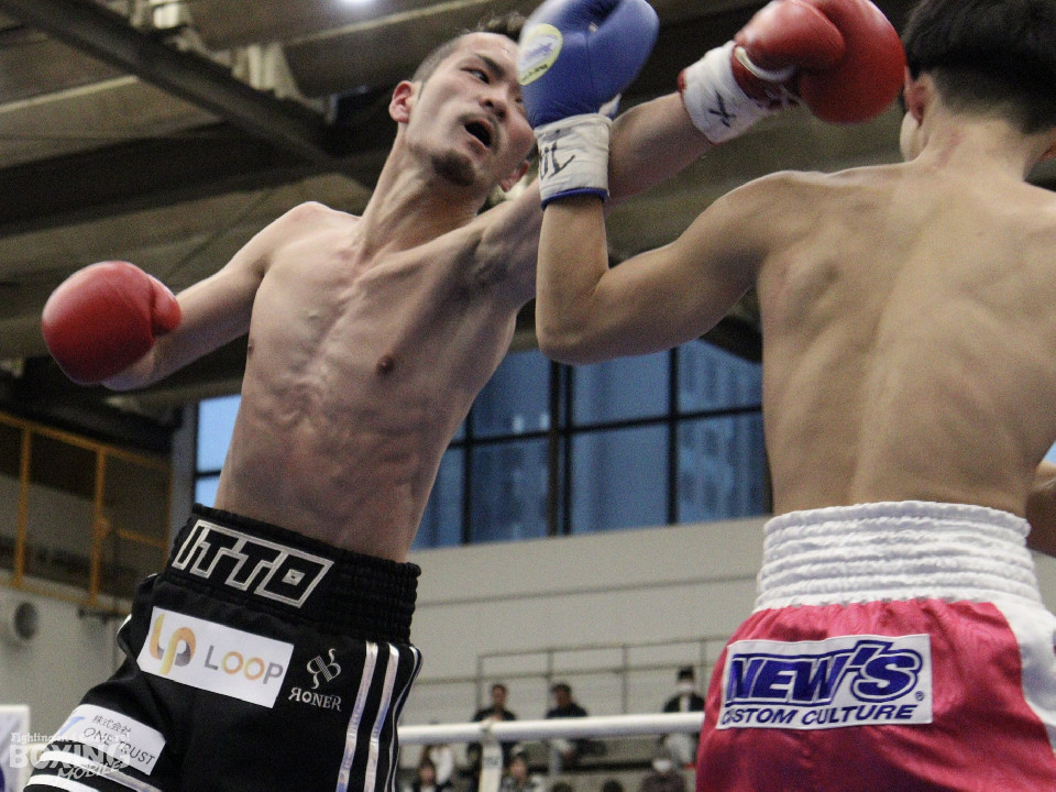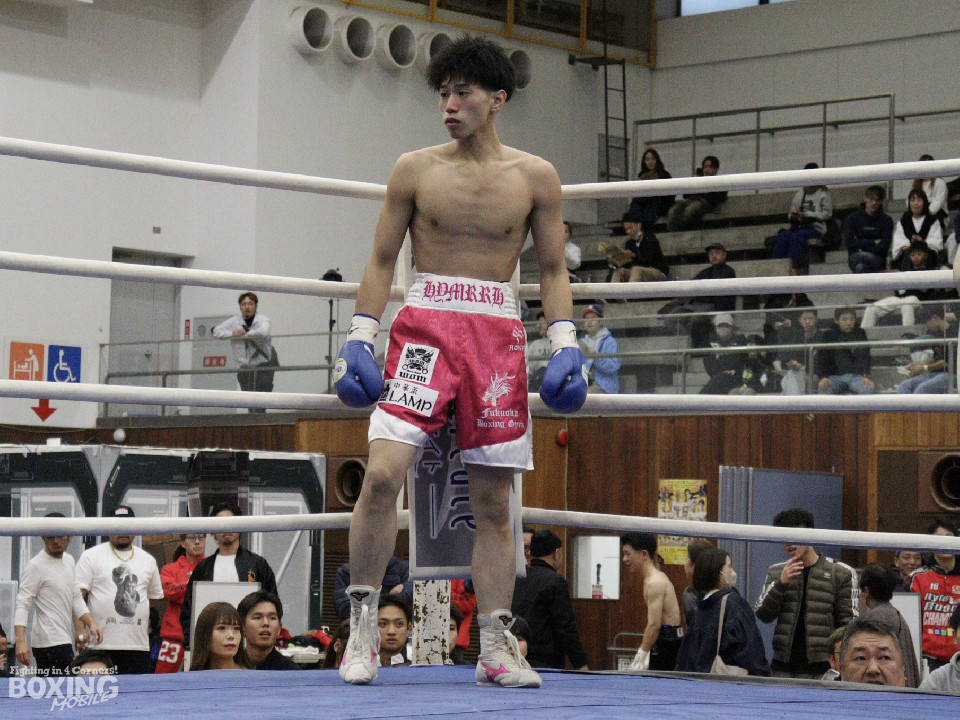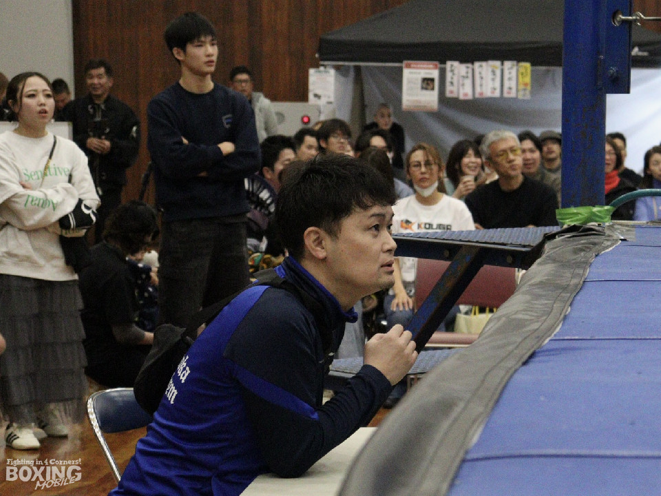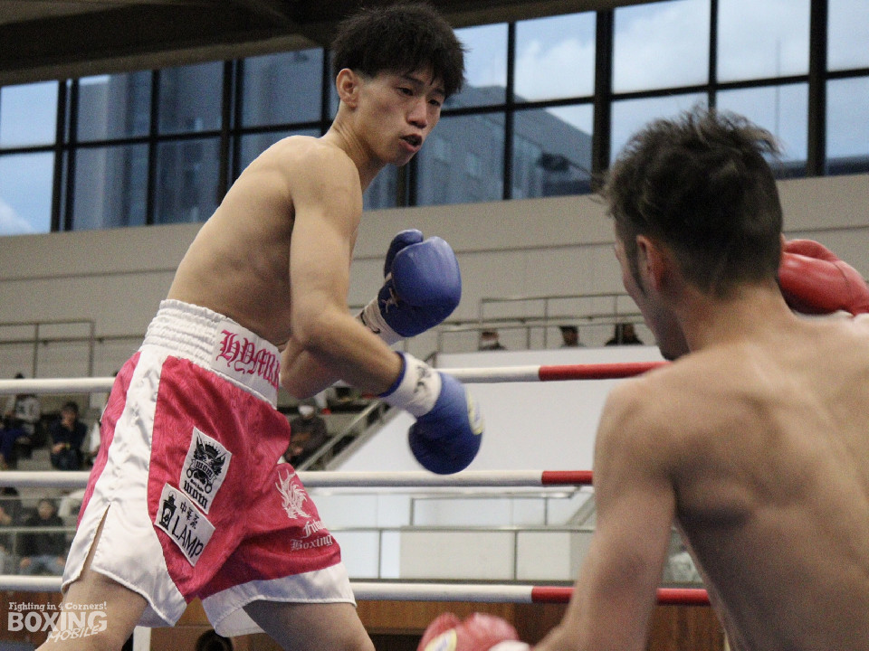 試合:石田が距離を詰めて積極的に攻めるとワンツー、左フックでダウンを奪取。立ち上がった小西はダメージが感じられるが、強気に攻めるとワンツーで顔を弾き反撃。2回、小西は長いリーチを活かしたジャブで組み立てるとグイグイと攻め立てた。流れが目まぐるしくに変わった。3回、小西は右ストレートでグラつかせたところでレフェリーが割って入った。小西が逆転KO勝ちでデビュー戦を飾った。