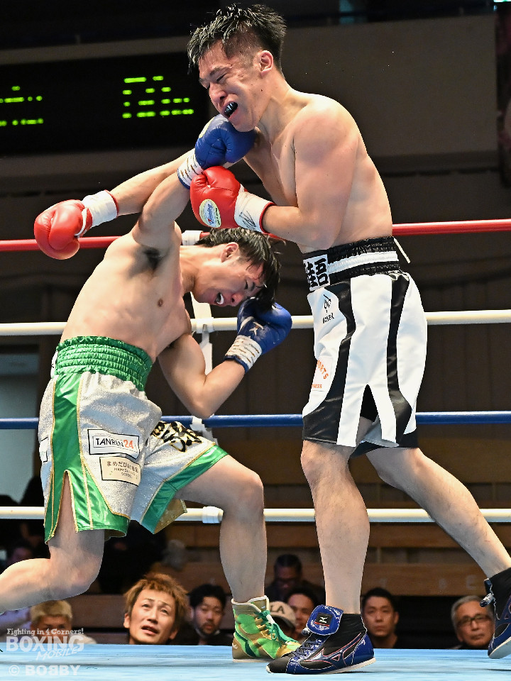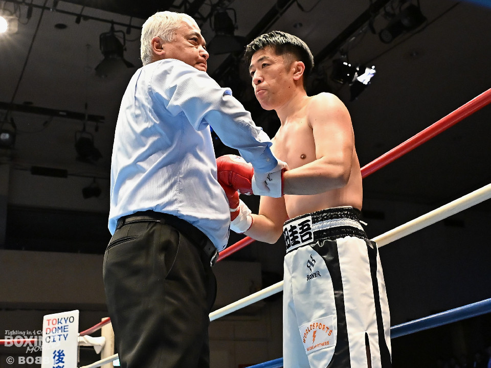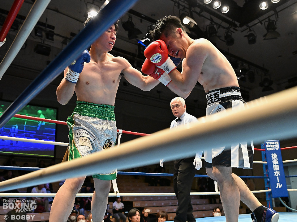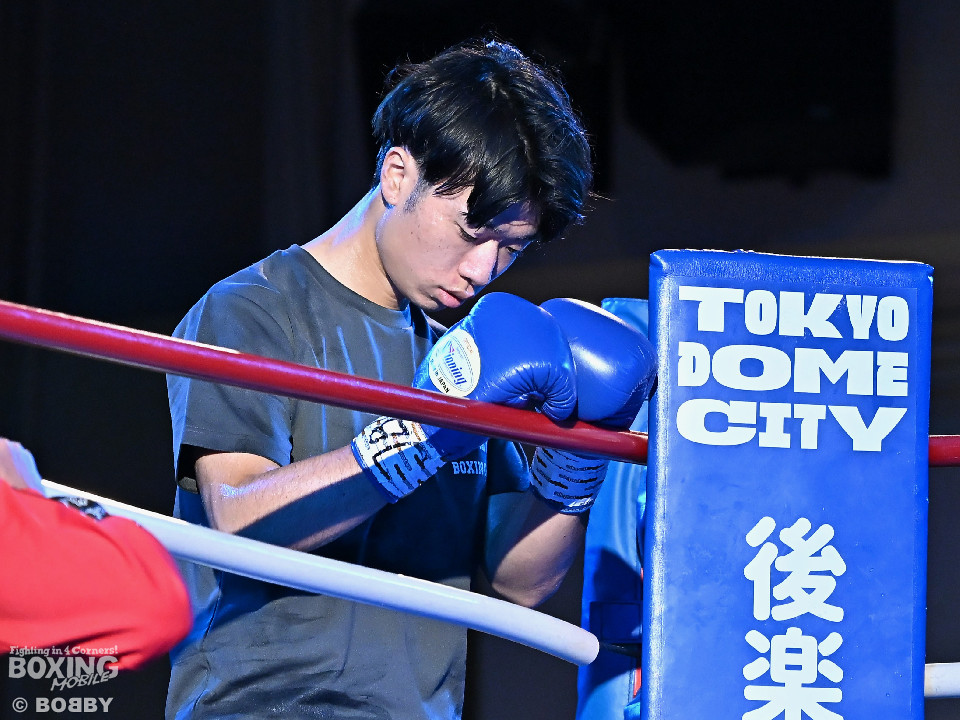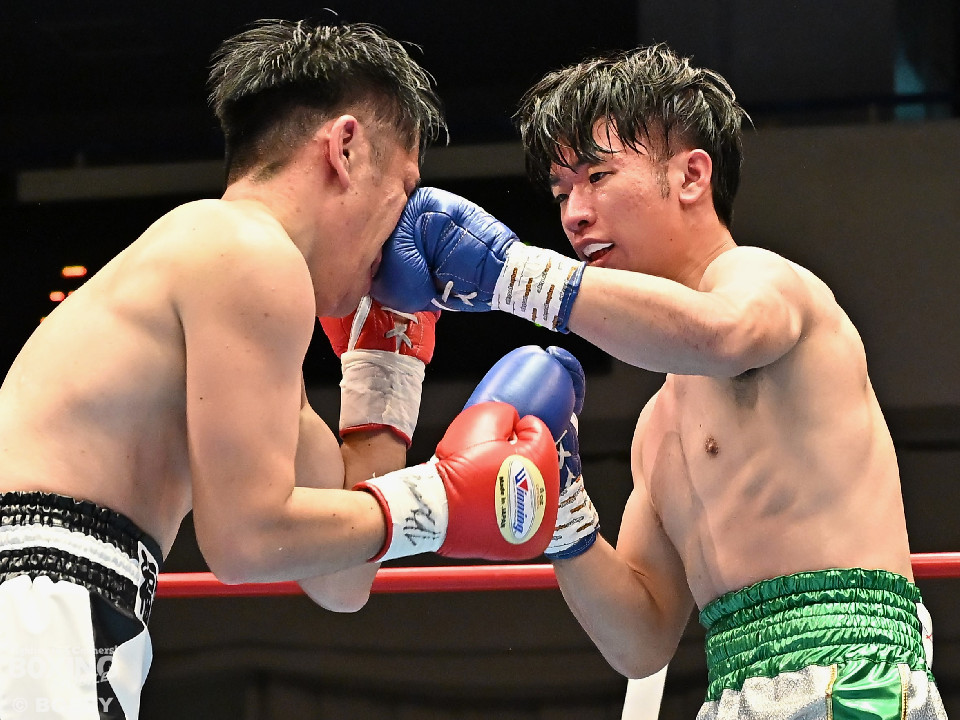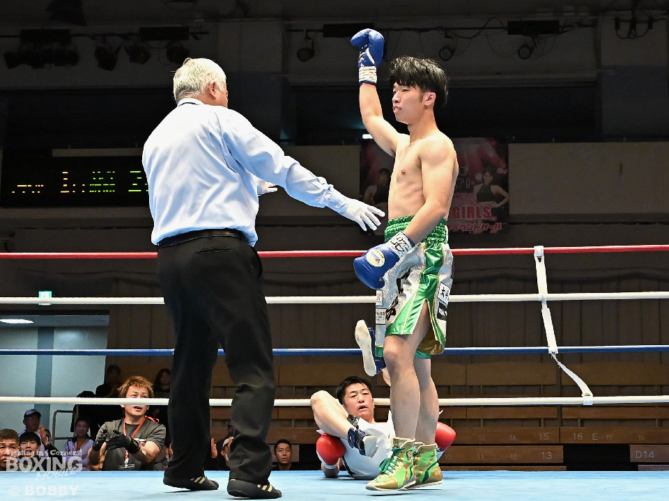 試合:開始ゴング直後から互いに連打を繰り出す打撃戦となった初回、豆田の右で福田がダウン。再開後はダメージを見せない福田も連打で反撃。豆田も負けじと連打を返した。2回、福田はパンチを上下に散らし、連打で豆田をロープに押し込むと連打をまとめた。3回、連打で前に出る福田に対し足を使ってジャブから組み立てた豆田はボディから連打につなげた。4回、連打で押す福田に対し、豆田はボディからワンツーにつなげ、ノーモーションの右をヒットした。結果は三者のの支持を集めた豆田が初勝利を飾った。
