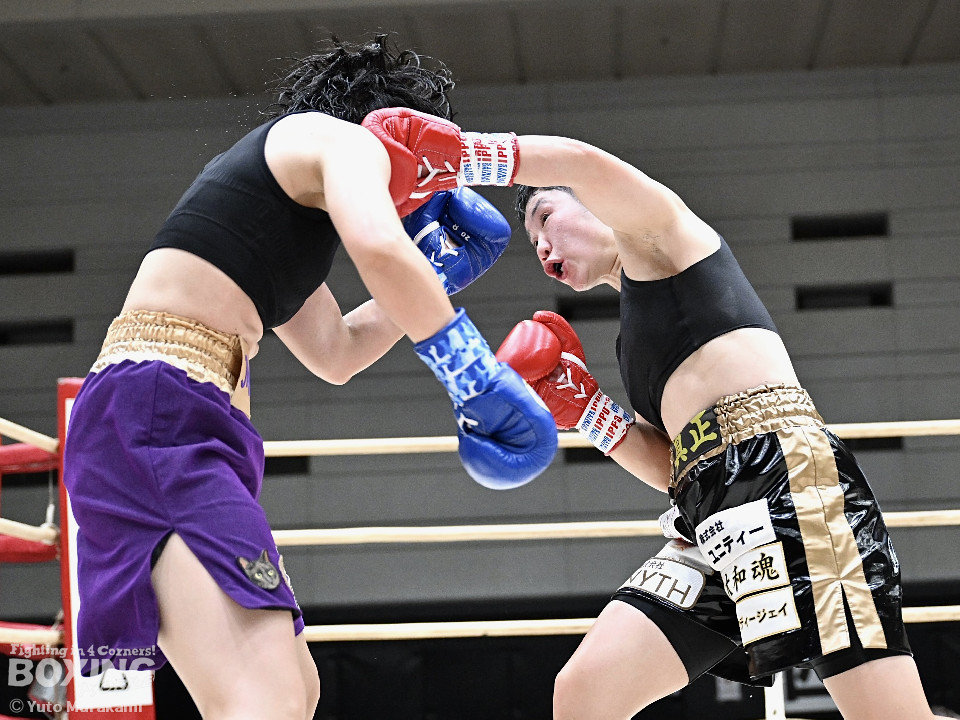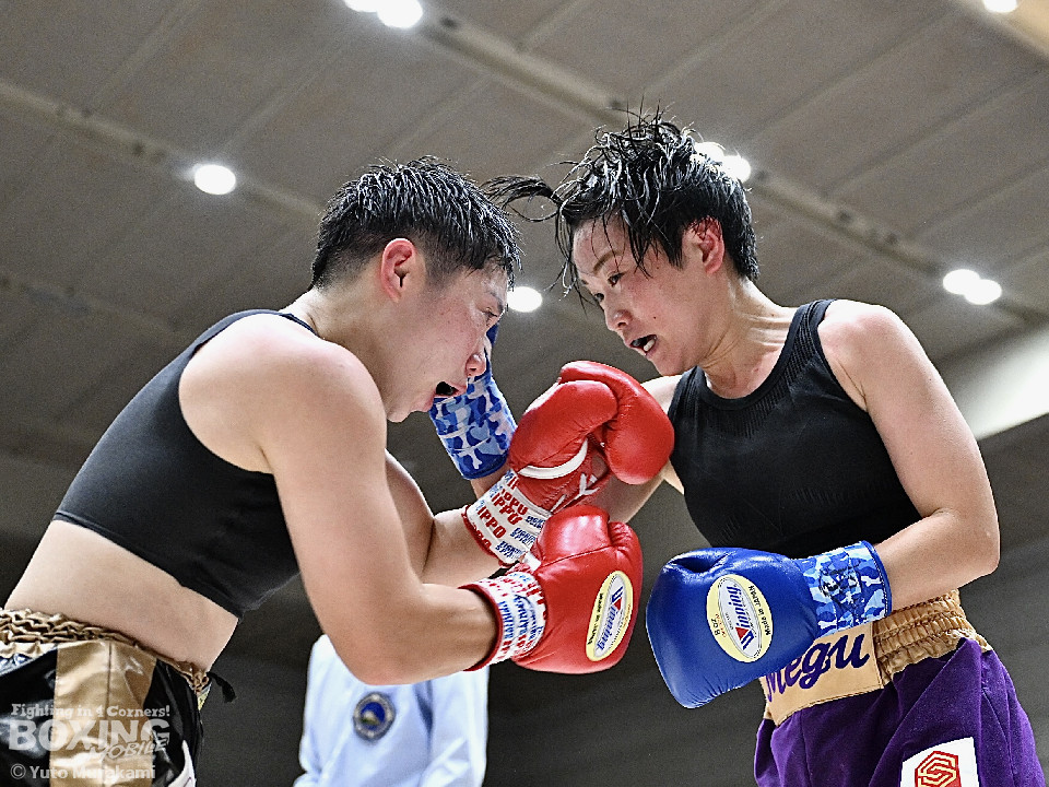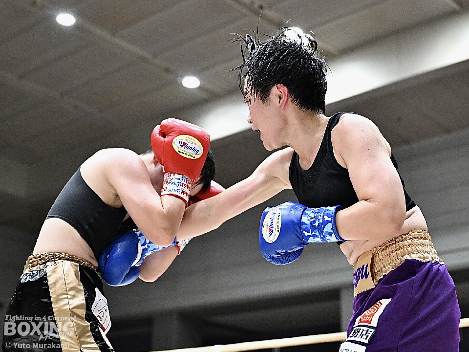 試合:元IBFアトム級王者の山中が今年4月の世界戦以来の再起戦に臨んだ。初回、渡邉が細かいパンチで仕掛けるが、サウスポー山中はガードとボディワークでかわすと左ボディストレートを好打。2回、ショートアッパーを繰り出す渡邉に対し、山中は打ち終わりに力強い右フックを決めて見栄えの良さをアピール。3回、渡邉は体力を温存せず回転力を活かしたパンチでしつこさを発揮。しかし、決定打を打ち込むまでには至らず。4回も変わらず渡邉がプッシュしながらパンチを繰り出した。このラウンド、山中は手数が少ない。5回、山中は右フックで顔を弾くと相手の勢いに飲まれることなく有効打を集めた。7回、山中は左ボディアッパーを突き刺すが、渡邉の手数は止まらない。8回、至近距離で激しいパンチの応酬。その中で山中がワンツーで顔を弾き突き放した。山中が判定勝ちで再起に成功した。