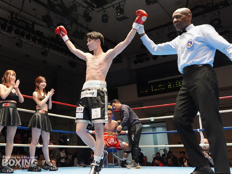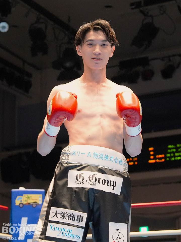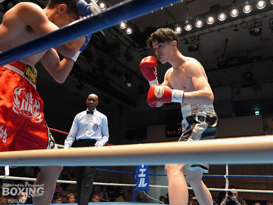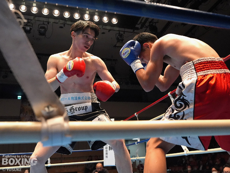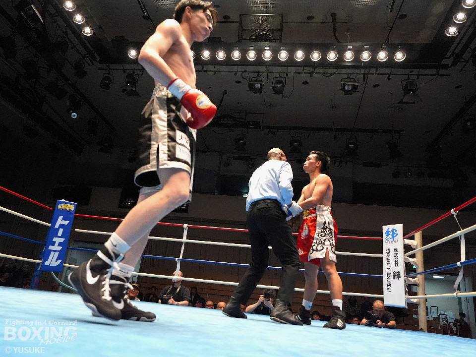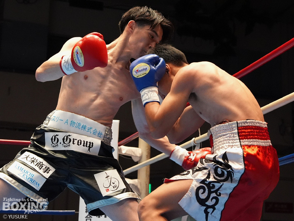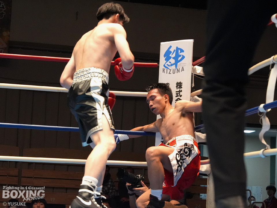 試合:頻繁にスイッチするタニャパットに対し、安田はジリジリと距離を詰めてジャブでタイミングを図った。2回、安田はプレスをかけて左ボディで効かせると左アッパーをフォローしてダウンをゲット。再開後、右フックで倒してフィニッシュした。A級初戦の安田が圧勝した。