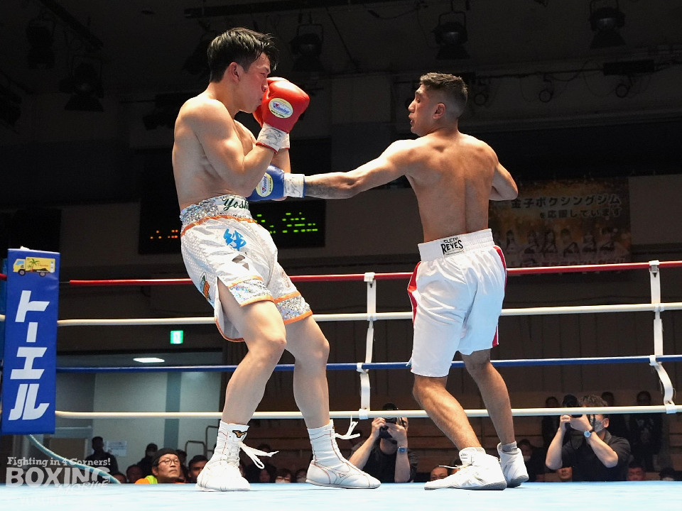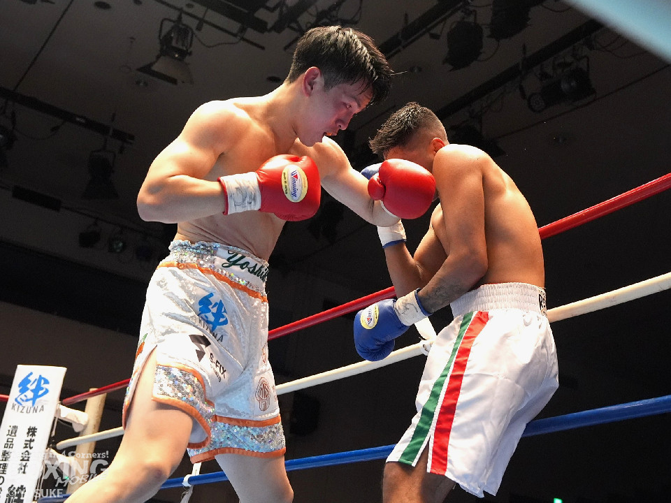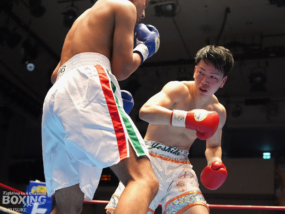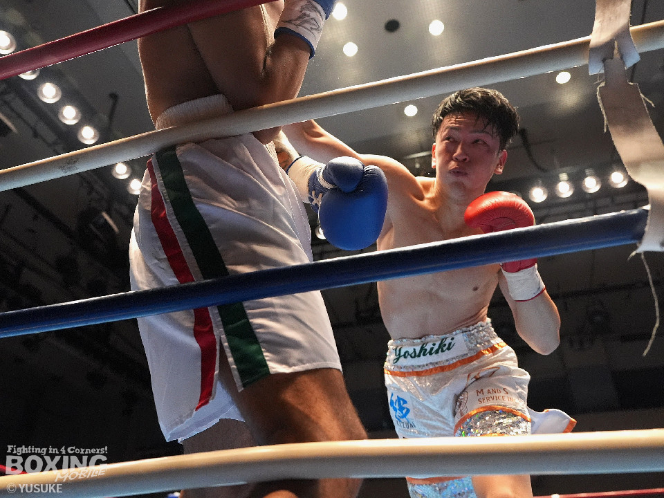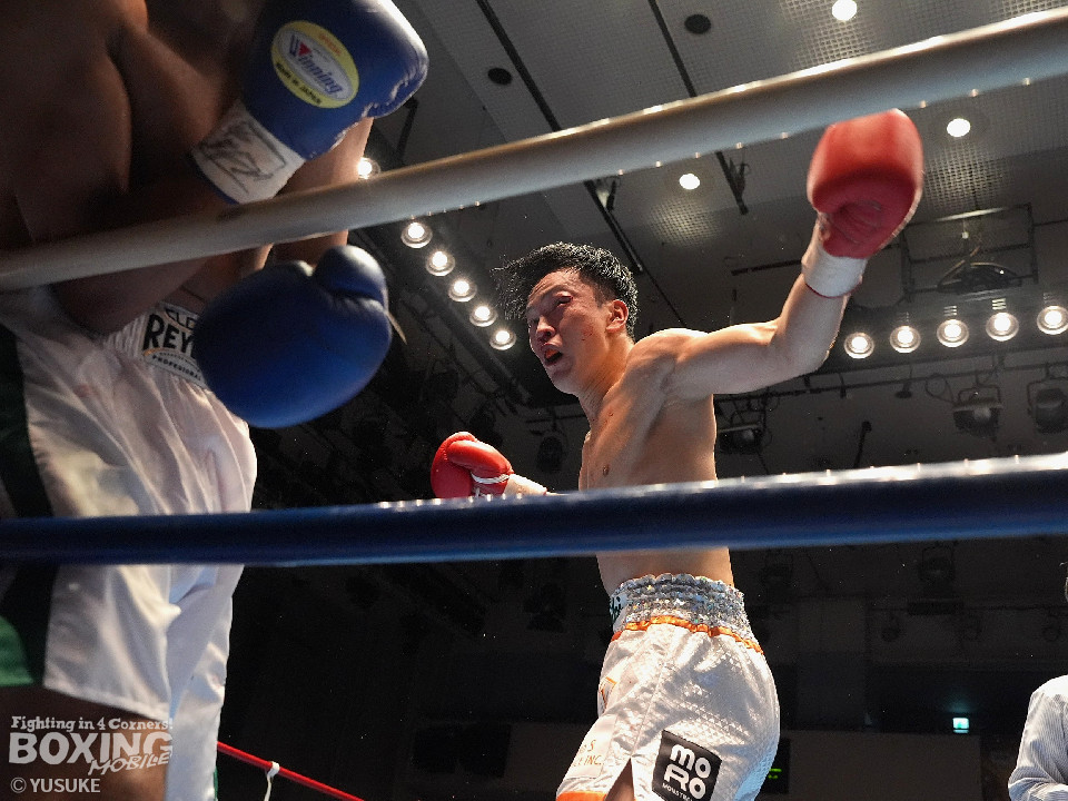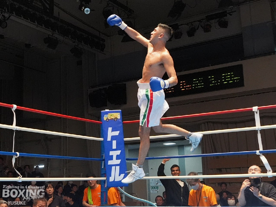 試合:多破が長いリーチを活かしたジャブから組み立てると左フックをヒット。2回、多破は打ち終わりにワンツを決めるとテンポの良い動きを披露。後手に回った金子は左ボディで食い下がった。3回、金子はプッシュしながら右ショートでガクッと腰を沈めさせて反撃。ロープを背負った多破は左ボディを突き刺した。4回、多破は右カウンターを好打すると上下に打ち分け攻勢。金子はヒッティングで左右上を腫らした。5回開始早々、レフェリーは2度目のドクターチェックを要請。これ以上の試合続行を不能としたレフェリーが試合を止めた。多破が日本ランキングの座を守った。