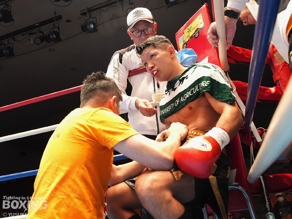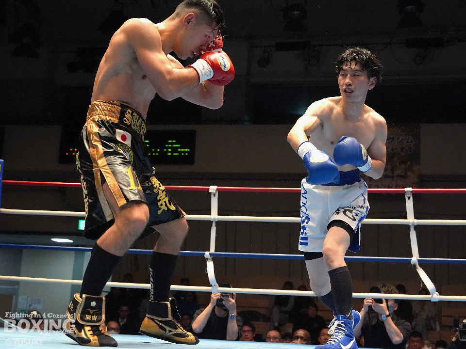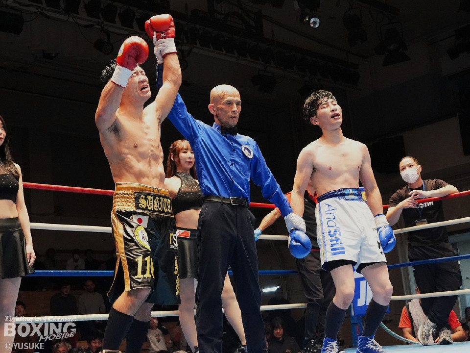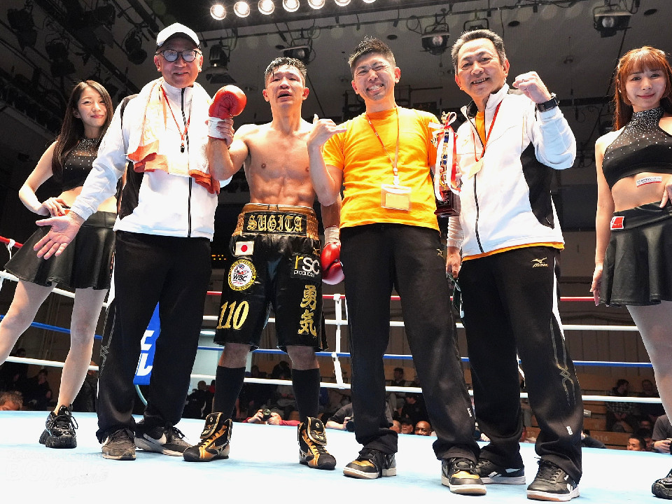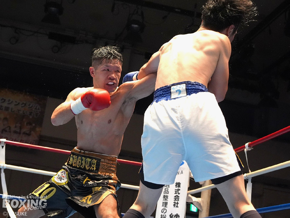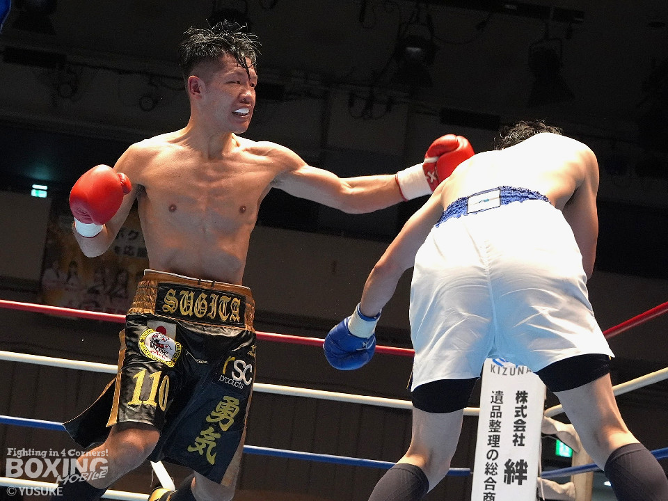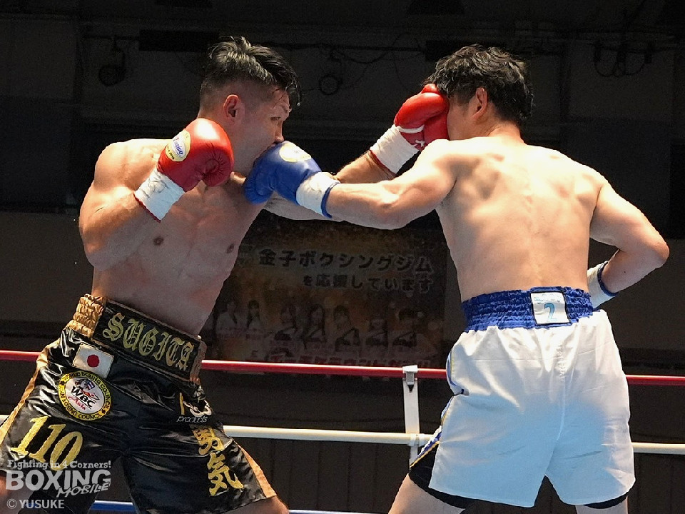 試合:秋間が変則的な左を飛ばしてリズムを作りにいく。2回、杉田はプレスをかけて左から丁寧に組み立てると返しの右をブロック。3回も杉田のディフェンスが光る。ガードとボディワークで回避するとジワリジワリと攻め立てた。続く回も杉田のラウンド。ジャブで顔を弾きポイントを加点。5回、秋間は右アッパー、ワンツーで積極的な攻撃を繰り広げると、6回も手数を増やして反撃。7回、杉田のジャブが冴える。左フック、右ストレートを好打した。8回、両応援団の声援が沸き起こる中、パンチを交錯させて会場を盛り上げた。採点は割れたが杉田を支持。杉田が日本ランカーを撃破した。