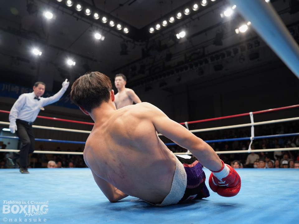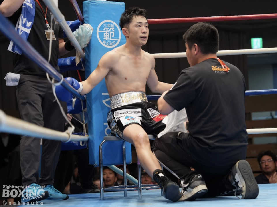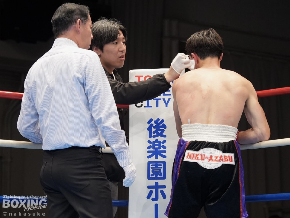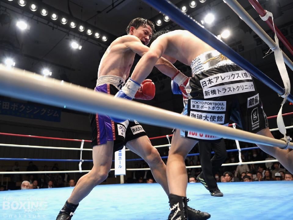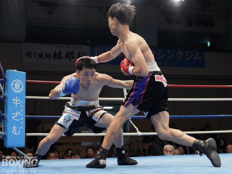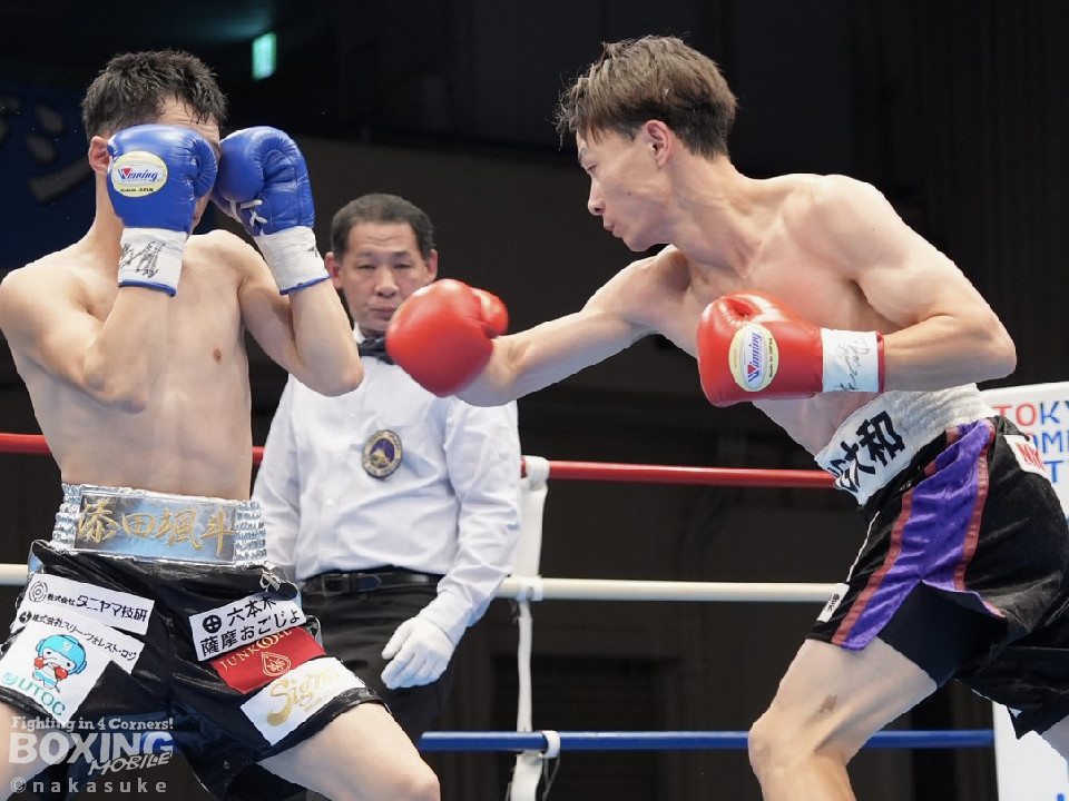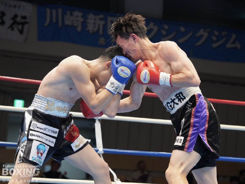 試合:齋藤がワンツーでガクッと腰を沈めさせて先制攻撃。2回、添田は上下に揺さぶりをかけると右カウンターでダウンを奪取、一気にペースを手繰り寄せた。3回、齋藤は距離を潰して右ボディを徹底すると連打で攻勢。ラウンド毎にペースが入れ替わった。4回、偶然のバッティングで齋藤は左耳をカット。その後、齋藤は強引に前に出てボディ攻撃を続けた。5回、齋藤は右ショートでグラつかせると追撃を図るが、添田はクリンチで窮地を脱した。6回、齋藤は右フックをねじ込むと最後までKOを狙い攻撃の手を緩めなかった。終始、積極的に攻めた齋藤が勝利した。