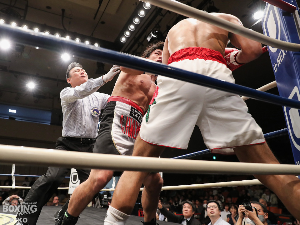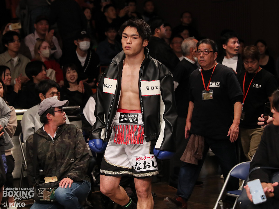 試合:カドカが右ストレートをねじ込むが、サウスポー石井は左フックで効かせるとコーナーに詰めて力強い左右フックを叩きつけて攻勢。ダメージが深いと判断したカドカ陣営からセコンドからタオルが投入された。石井が初回KO勝ちを飾った。