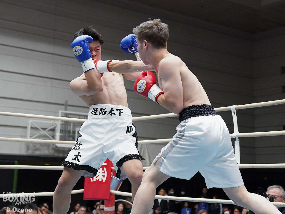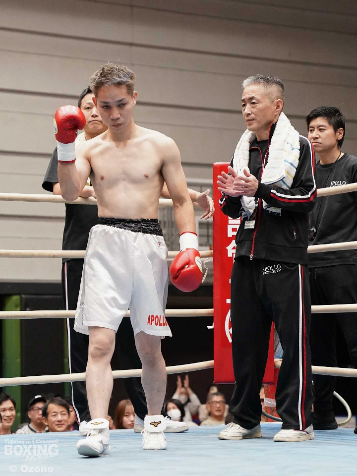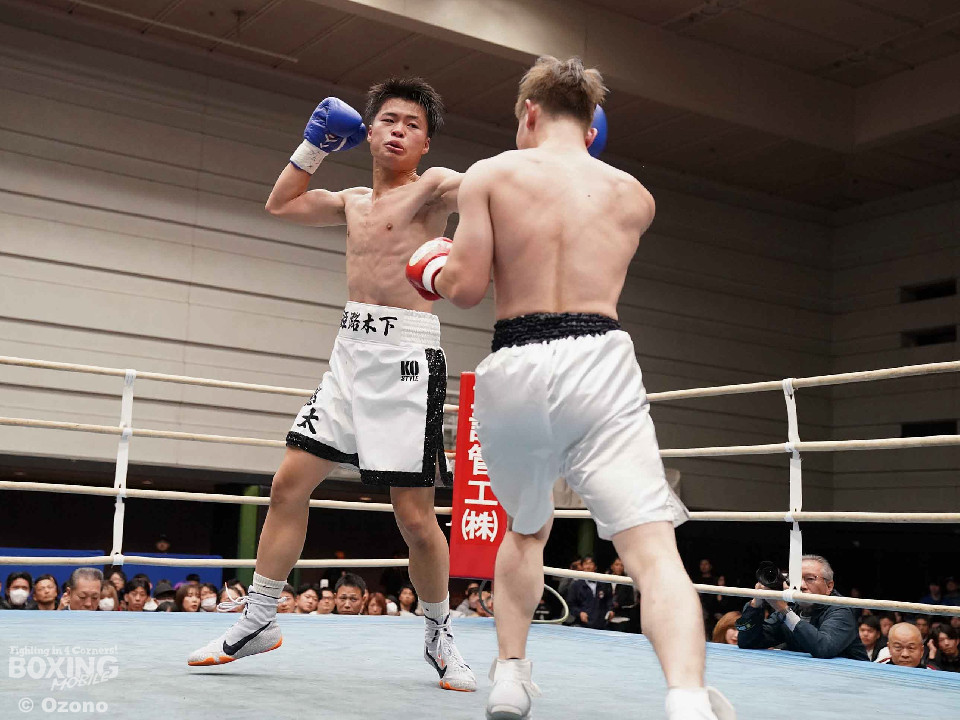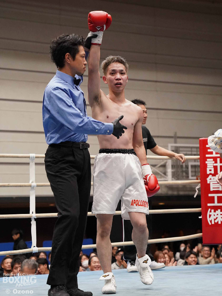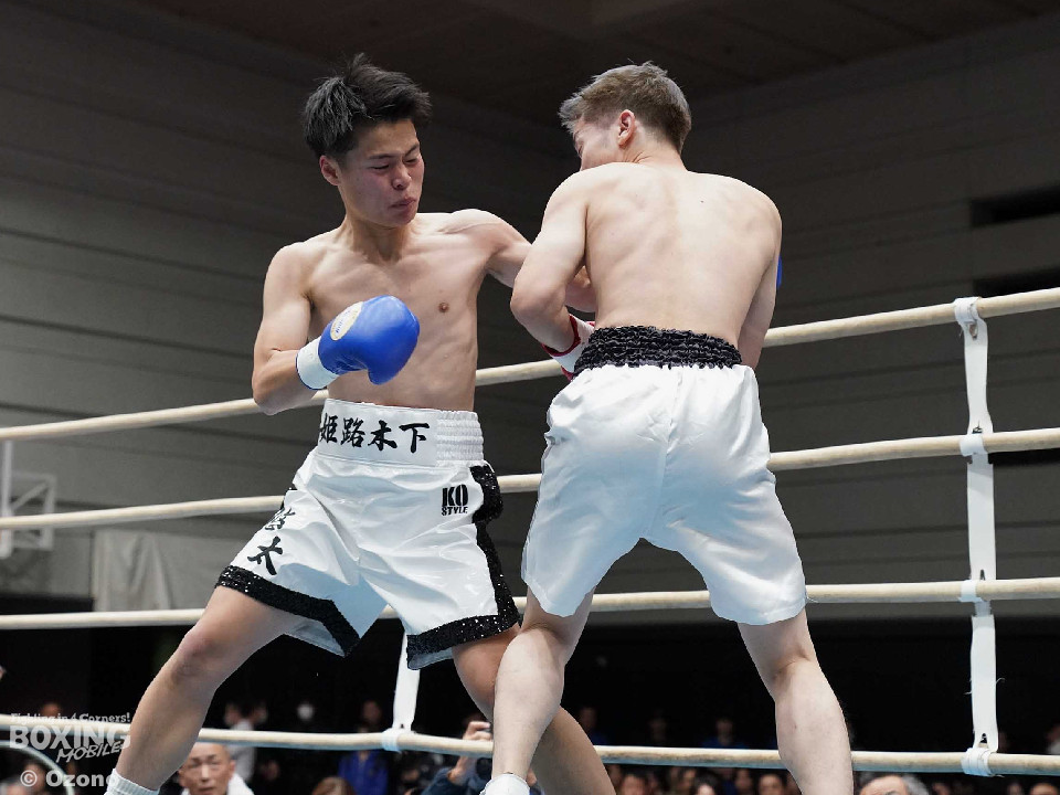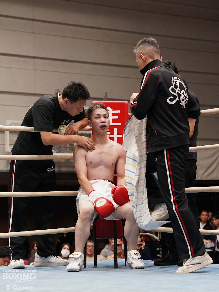試合:稲継がプレスをかけてワンツーから仕掛けるのに対し、森下は足を使いながら右アッパーで対抗。2回、森下はジャブで突き放すと単発のワンツーをヒット。3回、稲継は左ボディから左フックにつなげてジャッジに攻勢をアピール。4回、稲継はプッシュしながら右ショートをねじ込むと森下も歯を食いしばりながら応戦した。ジャッジ2者の支持を得た森下が連敗脱出に成功。リング上で歓喜の涙を流した。
