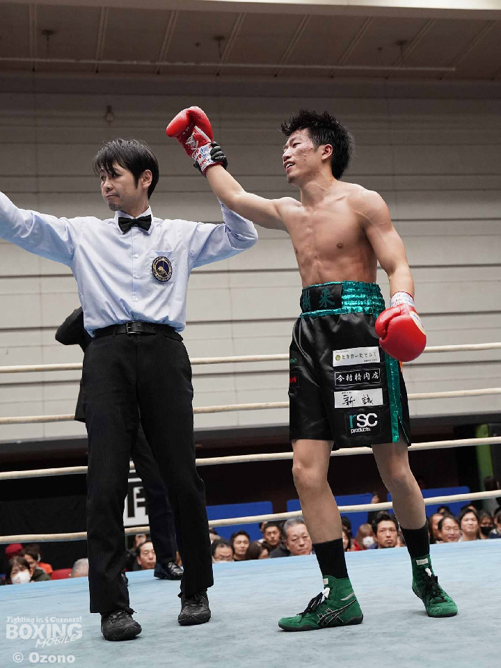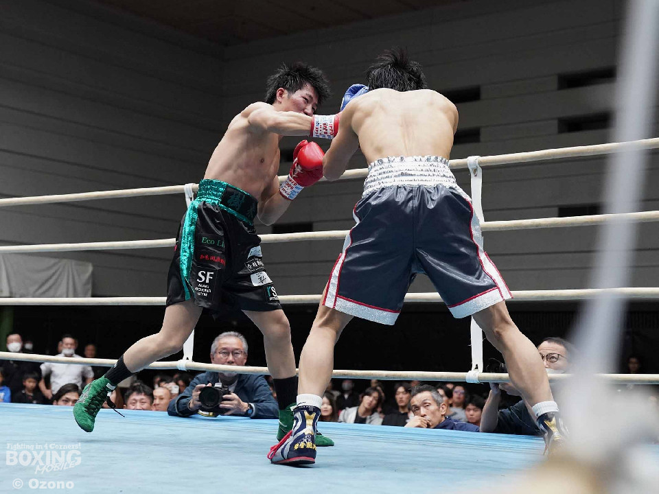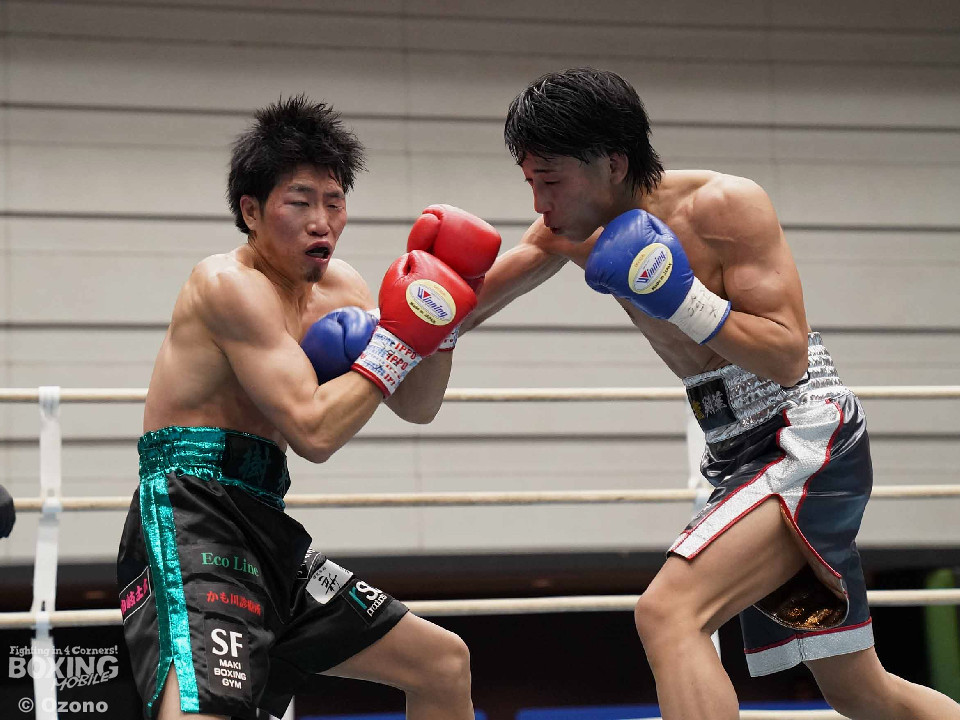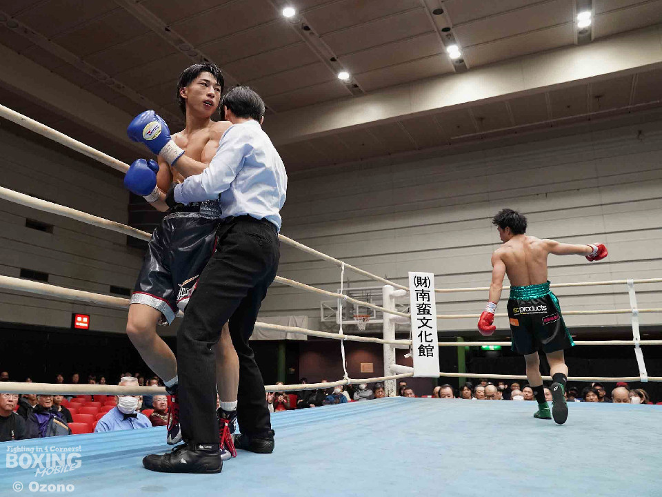 試合:中迫がグイっと前に出て右フック、左ボディを叩きつけると豊富な手数で攻め立てる。2回、進藤はボディにパンチを集めて流れを変えると右ストレートを好打。激しい打撃戦を繰り広げる中、手数で上回った印象。3回、お互いの意地がぶつかり合う中、中迫が右ショートでグラつかせると連打でレフェリーストップに持ち込んだ。中迫が今年6月以来の再起戦を飾った。