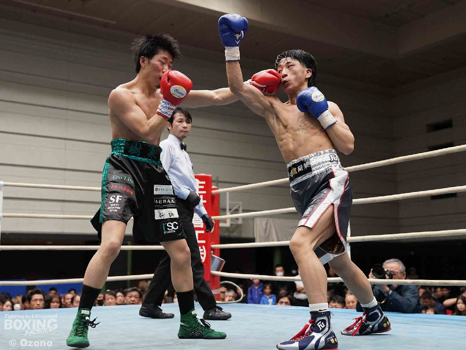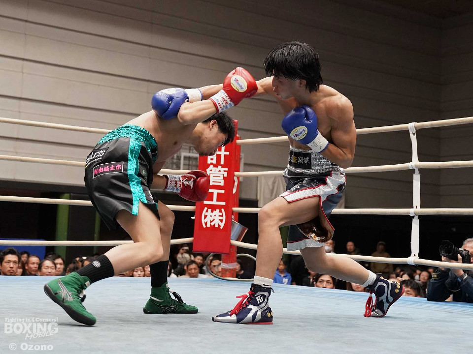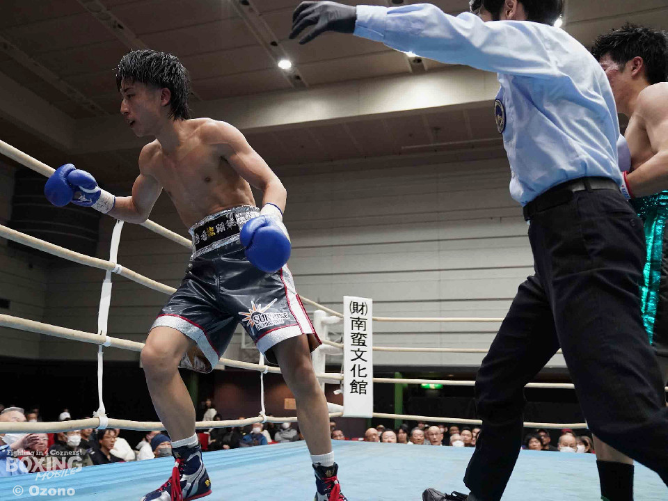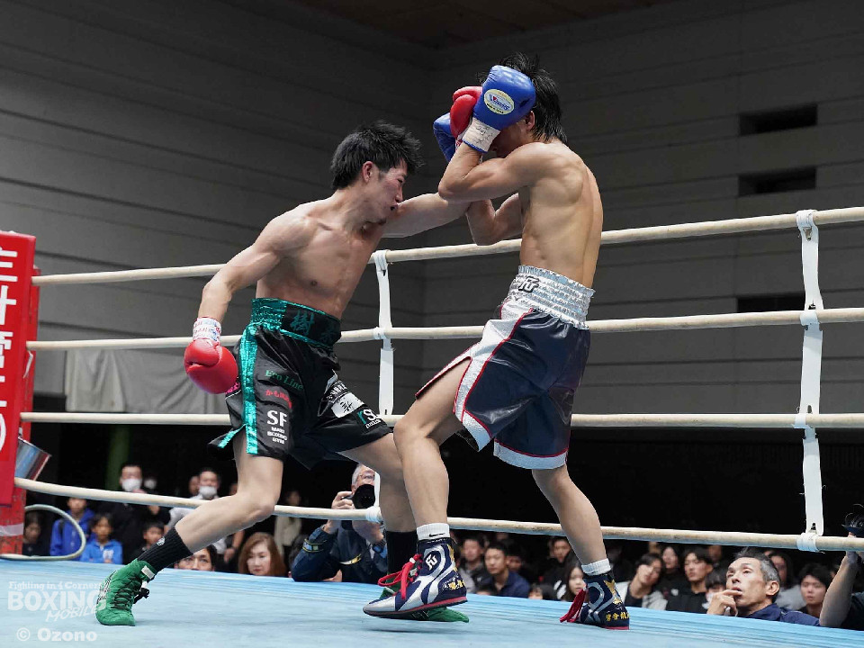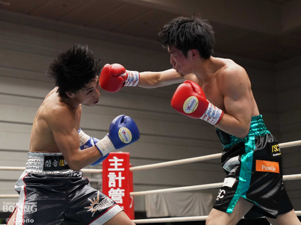 試合:中迫がグイっと前に出て右フック、左ボディを叩きつけると豊富な手数で攻め立てる。2回、進藤はボディにパンチを集めて流れを変えると右ストレートを好打。激しい打撃戦を繰り広げる中、手数で上回った印象。3回、お互いの意地がぶつかり合う中、中迫が右ショートでグラつかせると連打でレフェリーストップに持ち込んだ。中迫が今年6月以来の再起戦を飾った。
