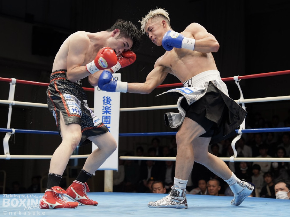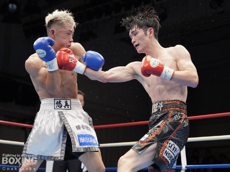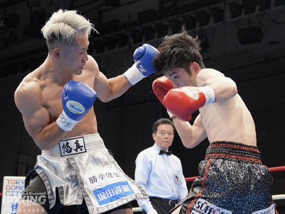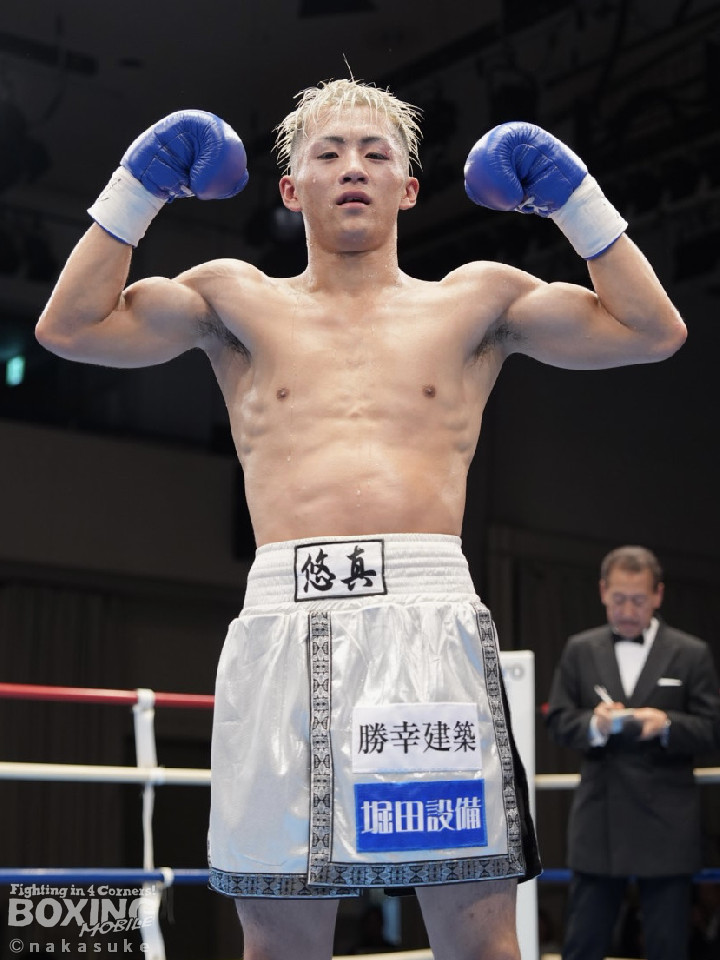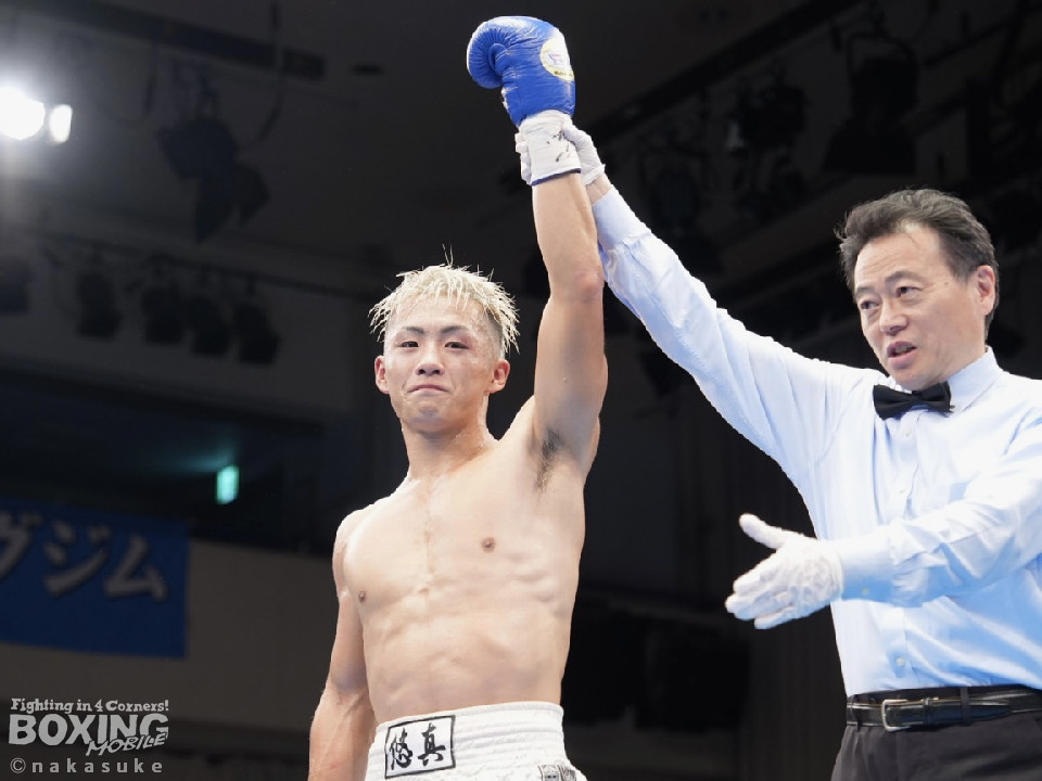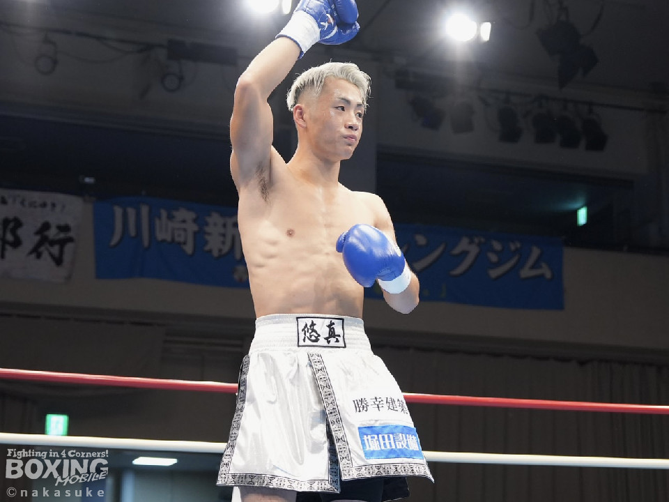 試合:堀田がジャブから右オーバーハンドにつなげると、左フックをヒット。後手に回った廣瀬だが右クロスを返した。2回、廣瀬は左ボディを突き刺すと、ワンツーを好打。3回、堀田は力強い右フック、左ボディで攻め立てると左ボディで一瞬動きを止めて攻勢。4回、堀田はボディを徹底して攻めると死角からの右アッパーでダウンを奪取。再開後、右アッパーで顔を弾いたところでレフェリーが割って入った。堀田が4連続KOでB級(6回戦)昇格を決めた。