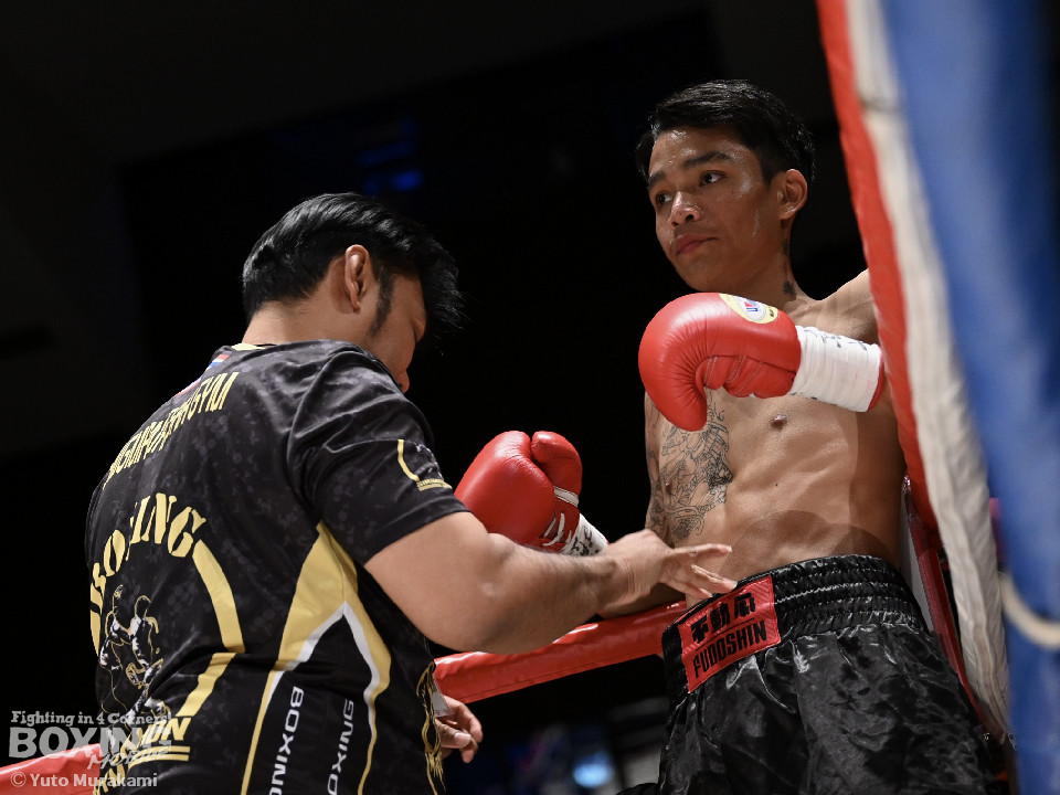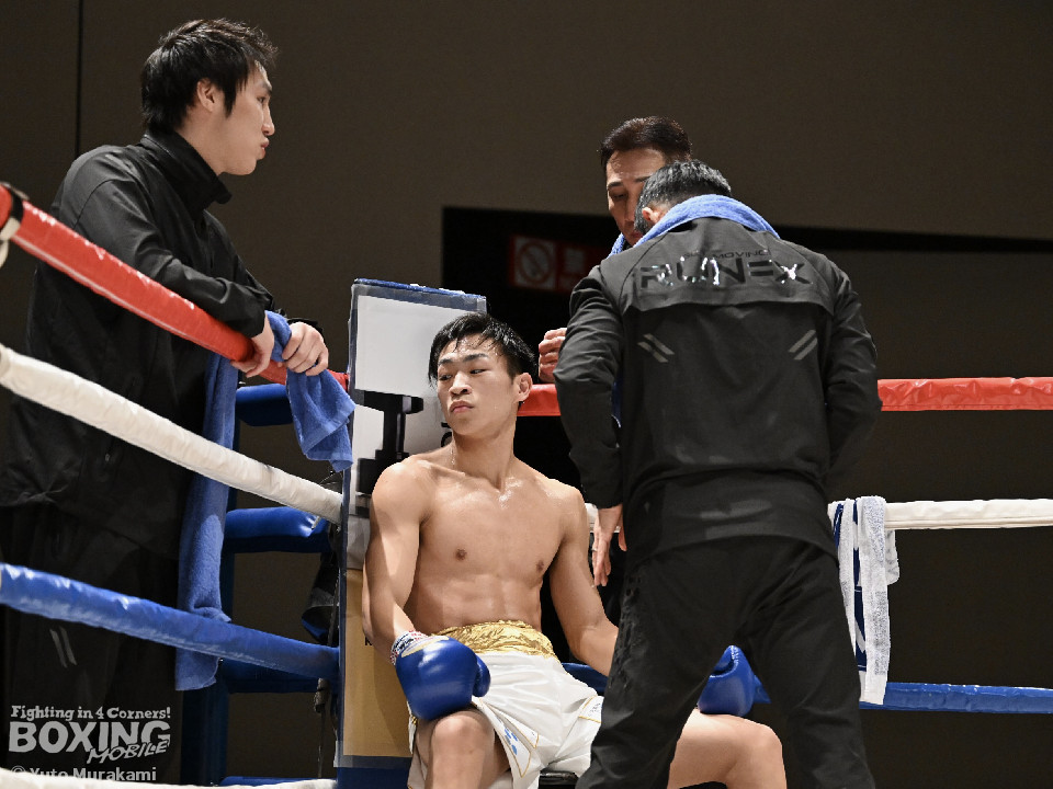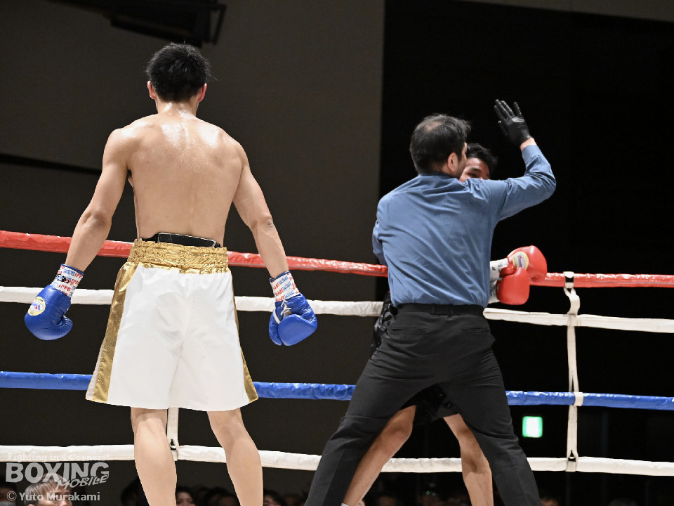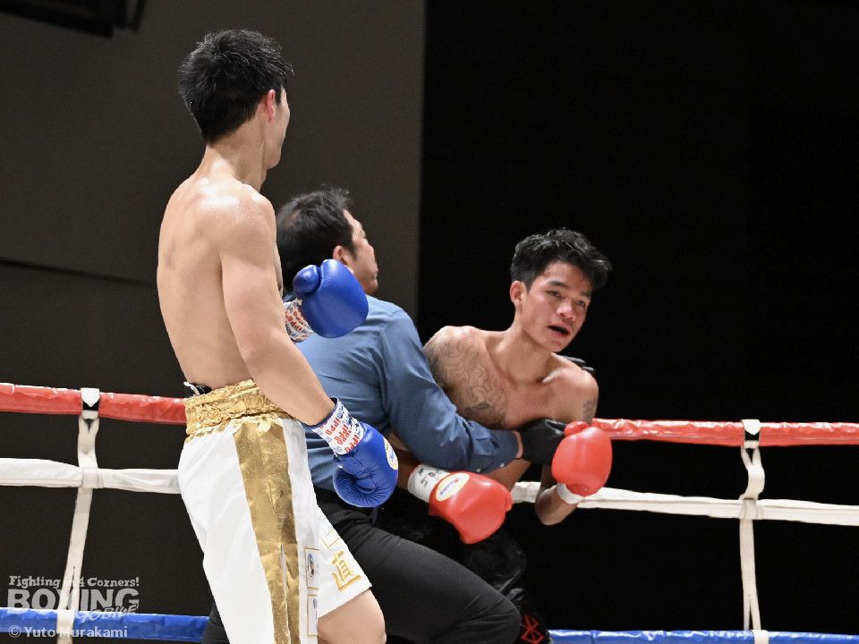 試合:ナルカモンとサウスポーの小松の対決。初回は小松がジャブを突きながらプレスをかけた。ナルカモンは足を使ってリングを大きく使いながら様子を見た。2回、ジャブの連打でリズムを作った小松が左ストレートでナルカモンの顔面を弾くとボディにもストレートを打って右も顔面に打ち込んだ。距離を詰める小松にナルカモンが左ボディを返すが、ロープに詰まって、小松がまとめに入るとレフェリーが試合を止めた。