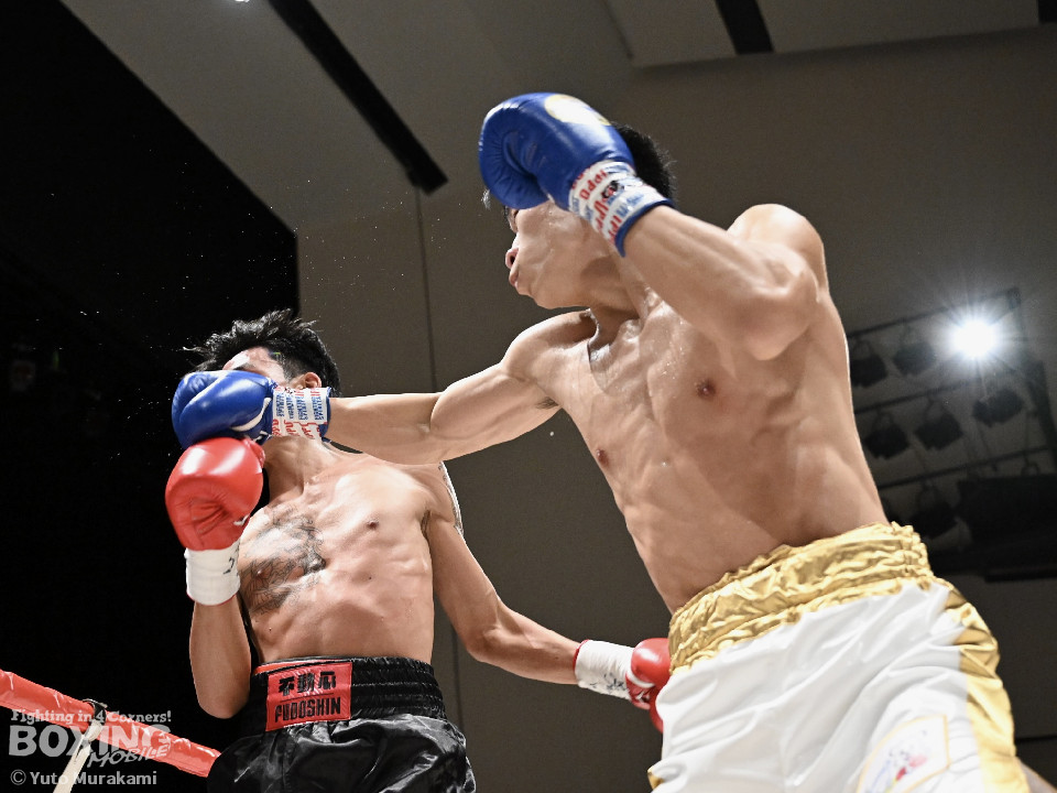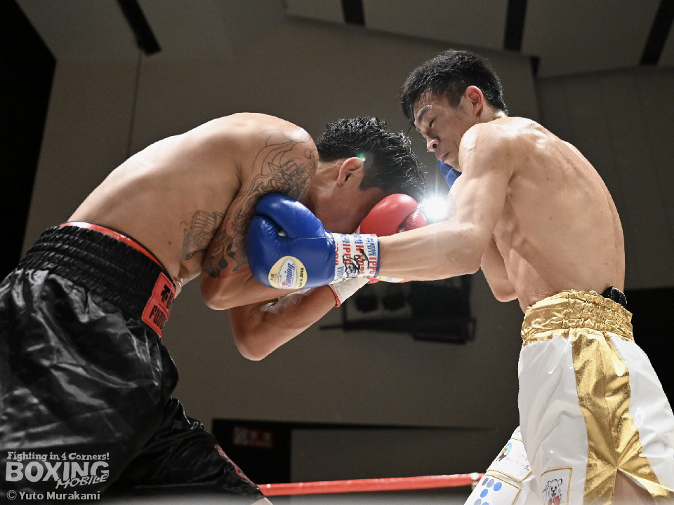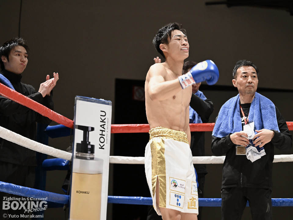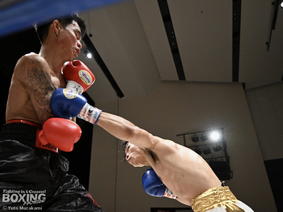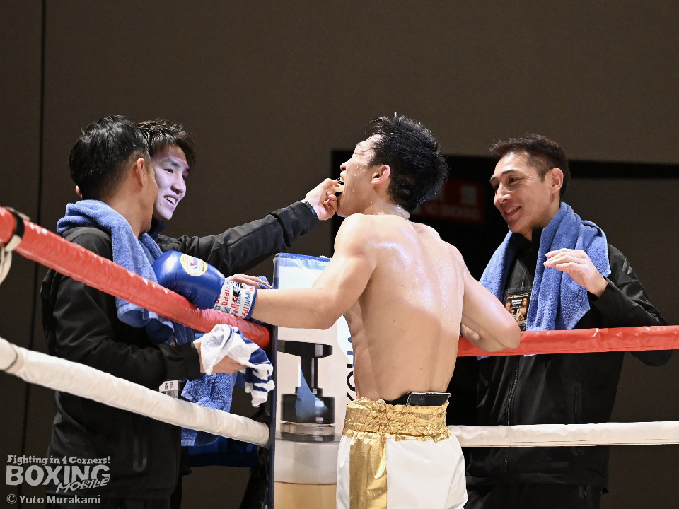 試合:ナルカモンとサウスポーの小松の対決。初回は小松がジャブを突きながらプレスをかけた。ナルカモンは足を使ってリングを大きく使いながら様子を見た。2回、ジャブの連打でリズムを作った小松が左ストレートでナルカモンの顔面を弾くとボディにもストレートを打って右も顔面に打ち込んだ。距離を詰める小松にナルカモンが左ボディを返すが、ロープに詰まって、小松がまとめに入るとレフェリーが試合を止めた。
