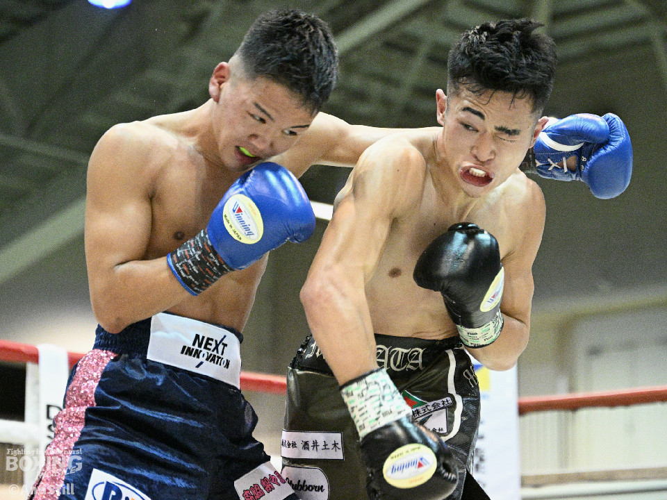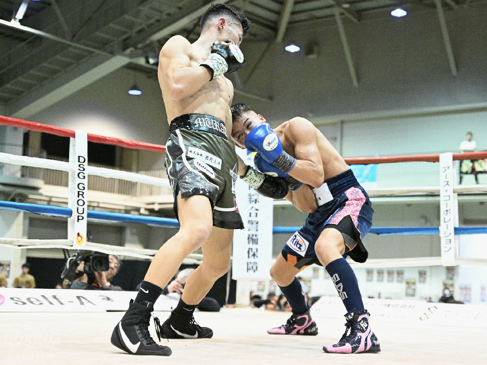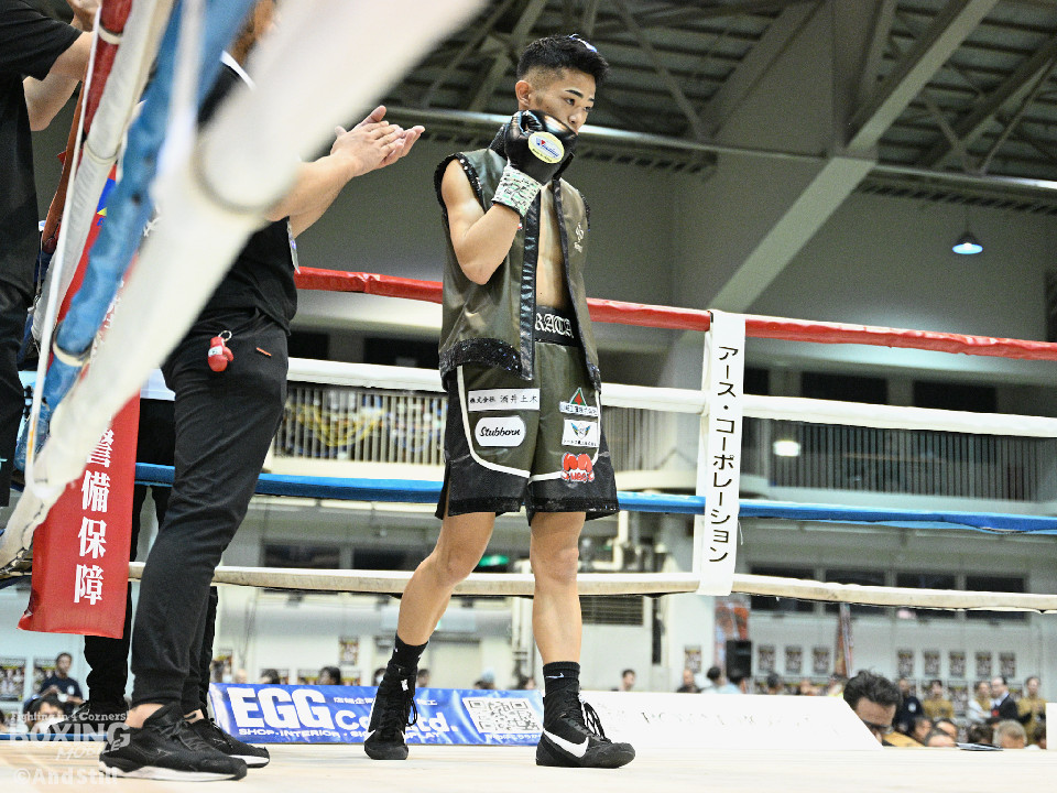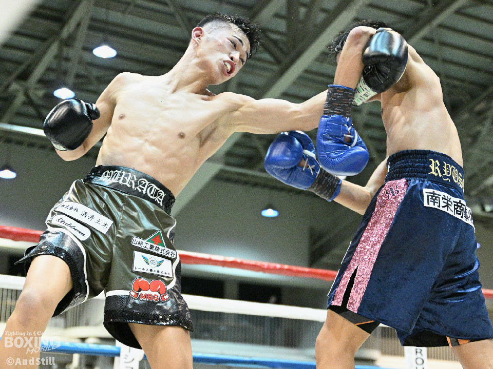試合:日本ユース・スーパーフライ級王座決定戦、中日本のホープ村田と関西のホープ森脇が拳を交えた。森脇が前後に揺さぶりをかけながらリズムを作りに行く。対する村田はジャブで様子を見た。2回、森脇はスピードを活かした攻撃を見せるが、村田は狙いすました左ショートフックでダウンを奪取。ピンチの森脇はクリンチで窮地を脱した。3回、村田は要所要所で左ボディを突き刺し見栄えの良さをアピール。4回、森脇はコンパクトな左フックから回転力を活かした連打で反撃。前半終了時の公開採点は、39-36×2、38-37×1で村田がリード。5回、森脇はパパっと手数を増やして積極性をアピール。6回、村田は打ったら頭の位置をずらしてリズム感のある攻撃。続く回も村田のラウンド。ジャブを軸に丁寧なボクシングでポイントをピックアップ。8回、相手の攻撃を見切った村田はジャブからワンツーで攻勢を印象づけた。村田が判定勝ちで新王者に輝いた。