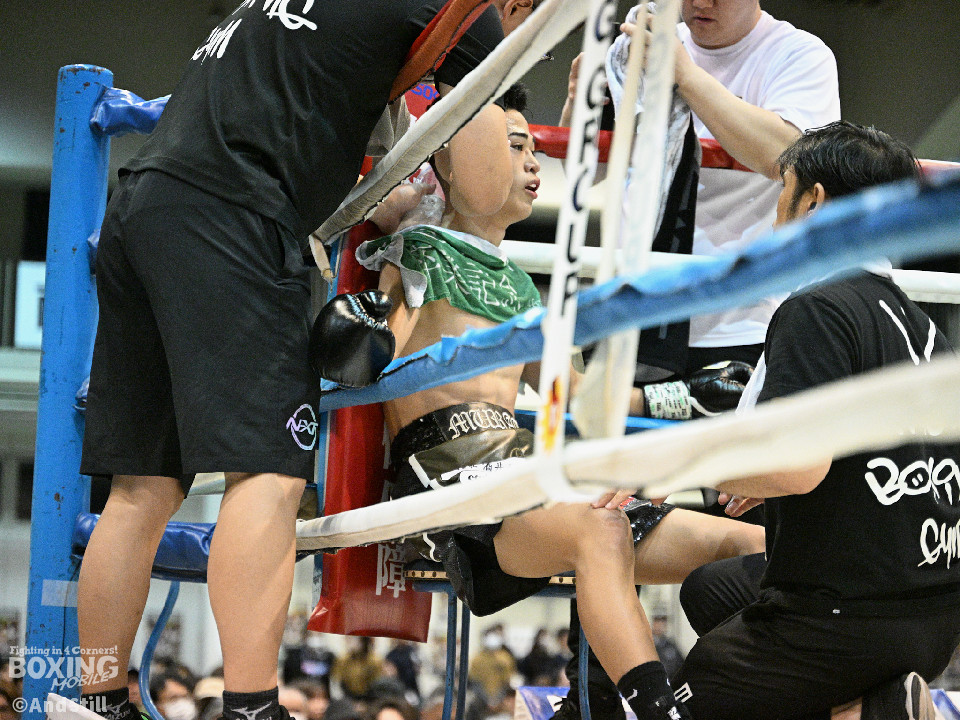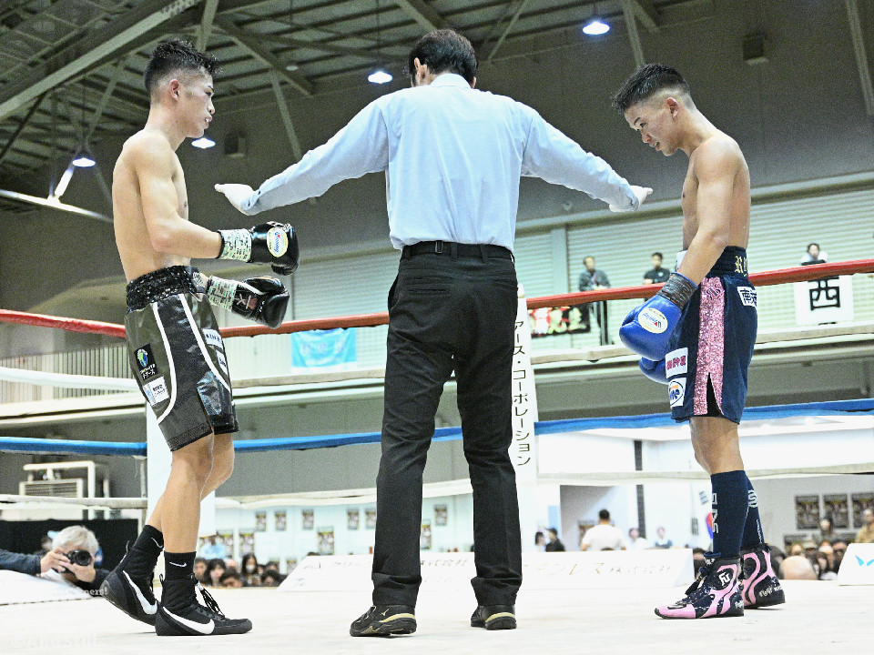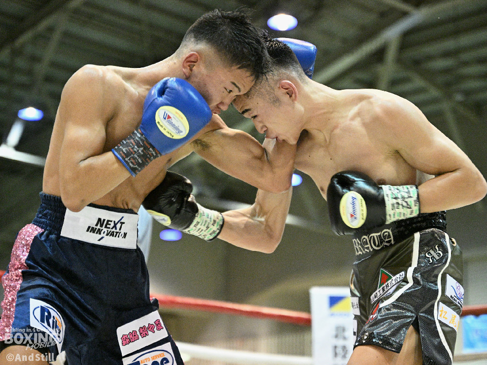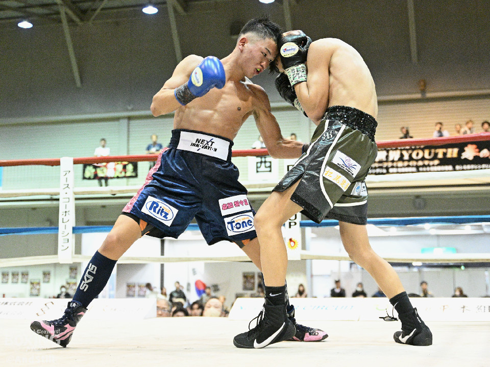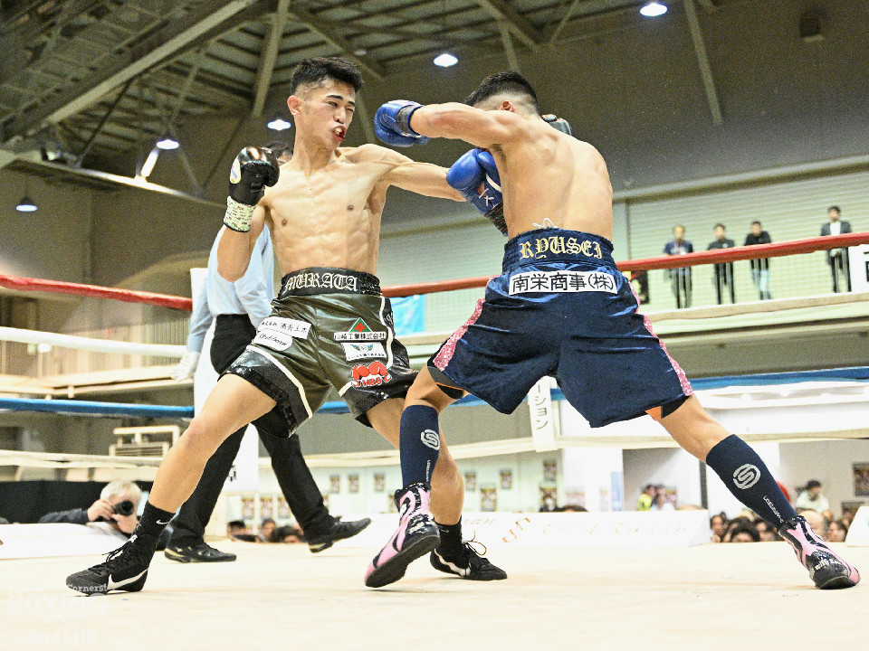 試合:日本ユース・スーパーフライ級王座決定戦、中日本のホープ村田と関西のホープ森脇が拳を交えた。森脇が前後に揺さぶりをかけながらリズムを作りに行く。対する村田はジャブで様子を見た。2回、森脇はスピードを活かした攻撃を見せるが、村田は狙いすました左ショートフックでダウンを奪取。ピンチの森脇はクリンチで窮地を脱した。3回、村田は要所要所で左ボディを突き刺し見栄えの良さをアピール。4回、森脇はコンパクトな左フックから回転力を活かした連打で反撃。前半終了時の公開採点は、39-36×2、38-37×1で村田がリード。5回、森脇はパパっと手数を増やして積極性をアピール。6回、村田は打ったら頭の位置をずらしてリズム感のある攻撃。続く回も村田のラウンド。ジャブを軸に丁寧なボクシングでポイントをピックアップ。8回、相手の攻撃を見切った村田はジャブからワンツーで攻勢を印象づけた。村田が判定勝ちで新王者に輝いた。