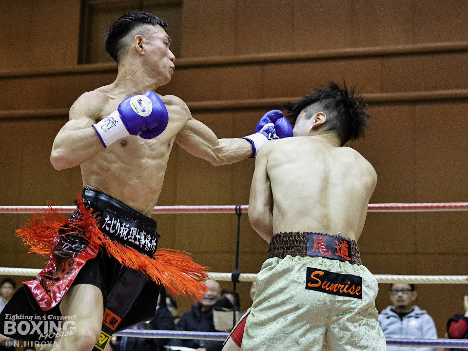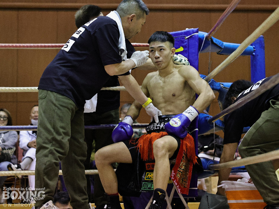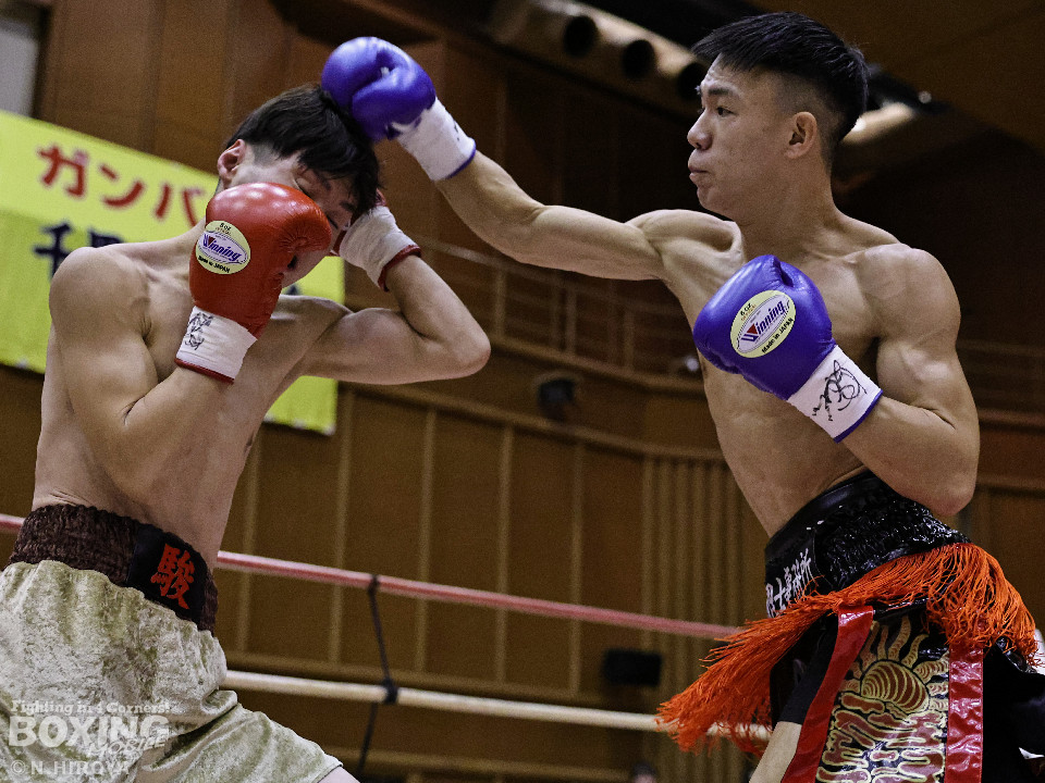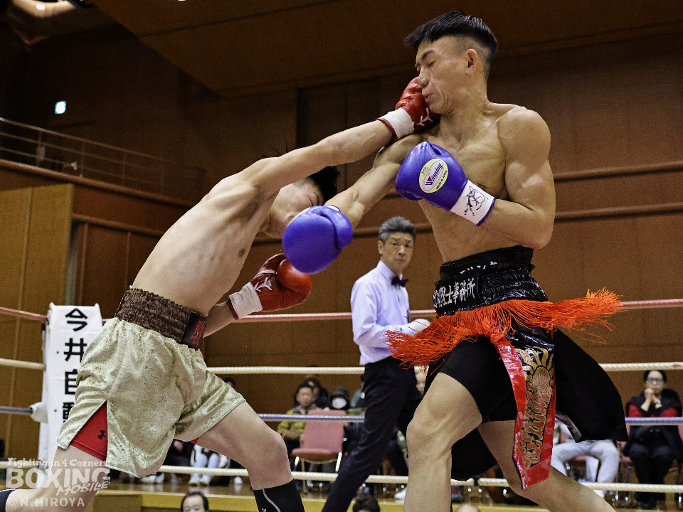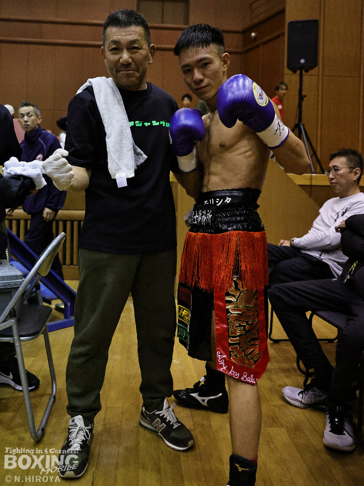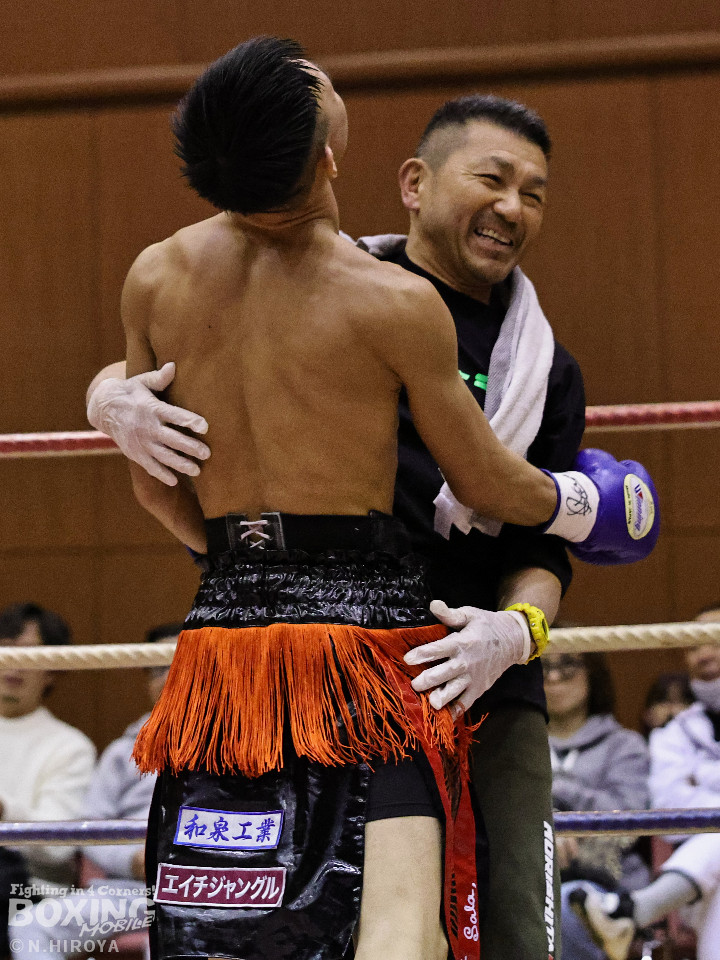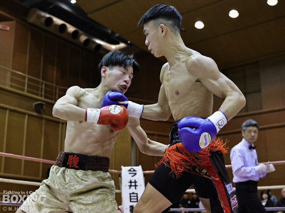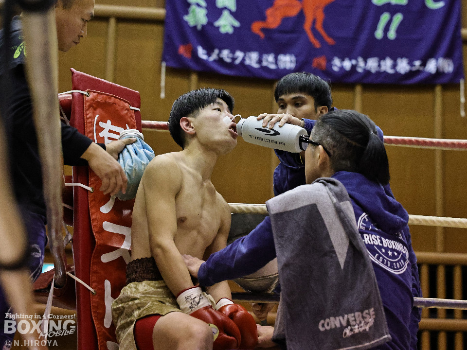 試合:中間距離でジャブの差し合いからスタートした試合は、2回に弘田が右フックを叩きつけて見栄えの良さをアピール。3回、弘田はステップインから左フックで顔を弾くと右フックでダウンを奪取。ダメージが残る小坂に迫るとパンチを畳みかけてレフェリーストップに持ち込んだ。A級初戦の弘田が日本2位の小坂を撃破した。