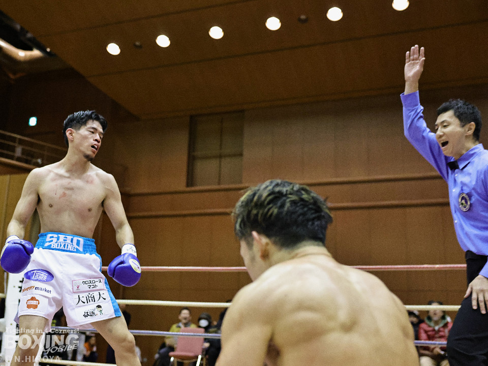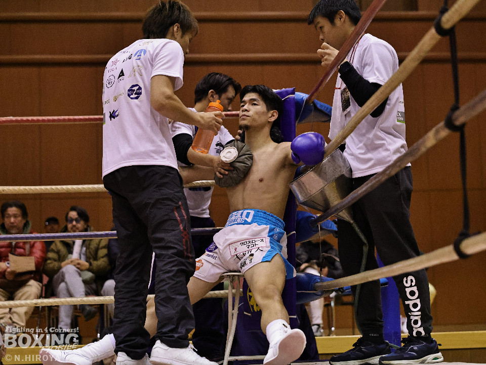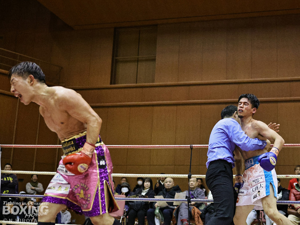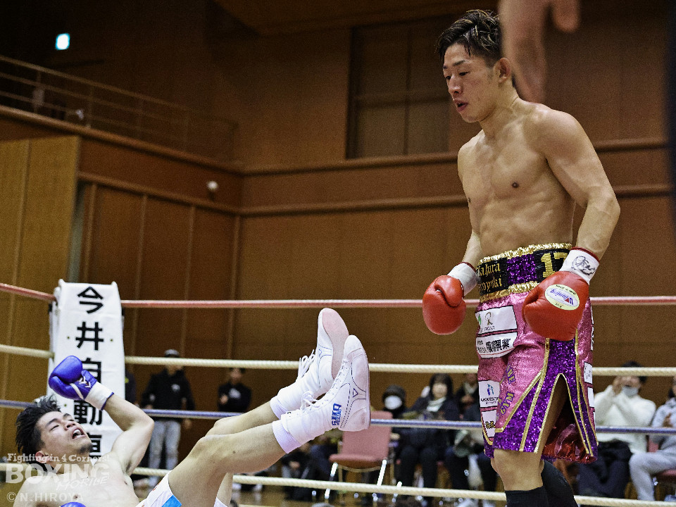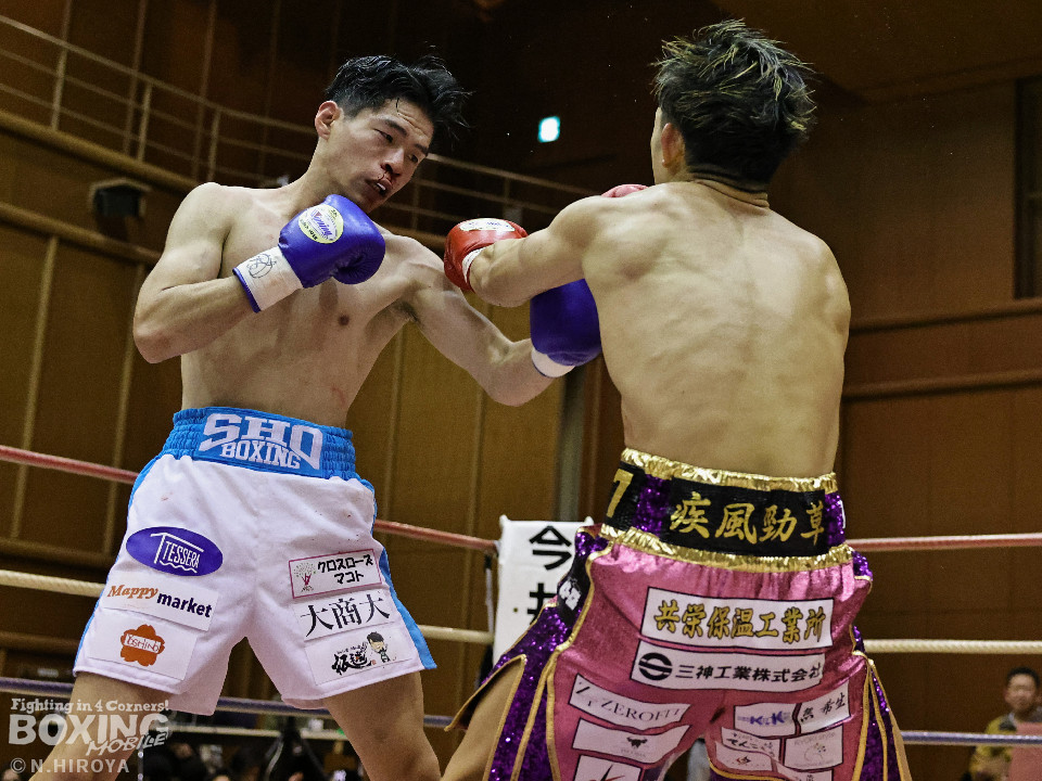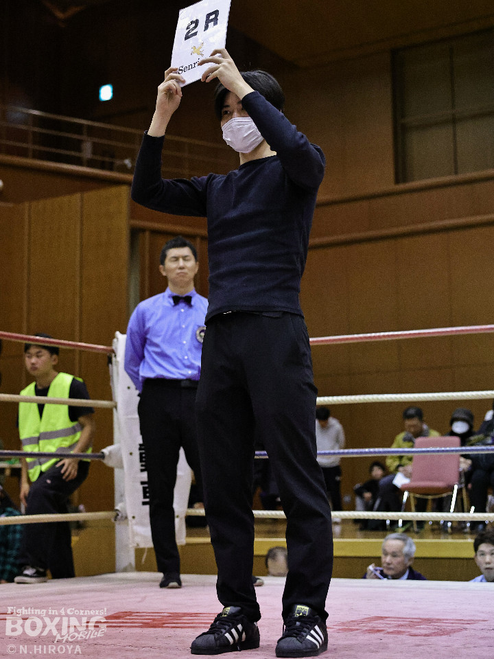 試合:山原がシャープなジャブを飛ばして距離とタイミングを探るのに対し、高原は力強い右フックを叩きつけて応戦。2回、山原は左を突きながらリズムを作ると左ボディをヒット。3回、至近距離でのパンチの応酬、山原が左ボディを突き刺せば、高原も右フックで譲らず。ラウンド終了間際、高原の右フックが火を噴きダウンを奪取。なんとか立ち上った山原はゴングに救われた。4回、高原は右ボディストレートを突き刺し前に出たところに山原が左フックを合わせてダウンを奪い返す!その後は死力を尽くしての打ち合いに発展。山原は後頭部への打撃による反則で減点1が課せられた。5回も両者の意地がぶつかり合う打撃戦。高原が右フックを強振し左目尻を切り裂いた。6回、山原が左ボディに的を絞り攻勢をアピール。7回、打ち合いは激しさを増し総力戦。距離が詰まり乱戦模様。高原はホールディングの反則で減点1。ラウンド終盤、高原は回転力を上げて攻め立てた。勝負が決まったのは8回、高原はワンツーで効かせると一気にスパートしてレフェリーストップに持ち込んだ。激戦を制した高原がランキングを死守した。
