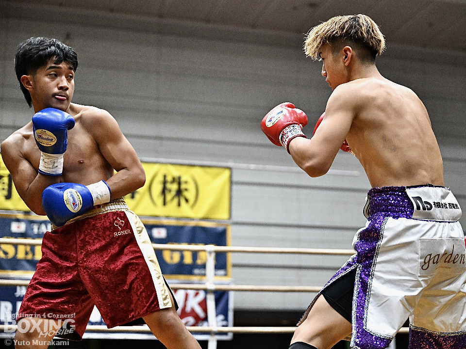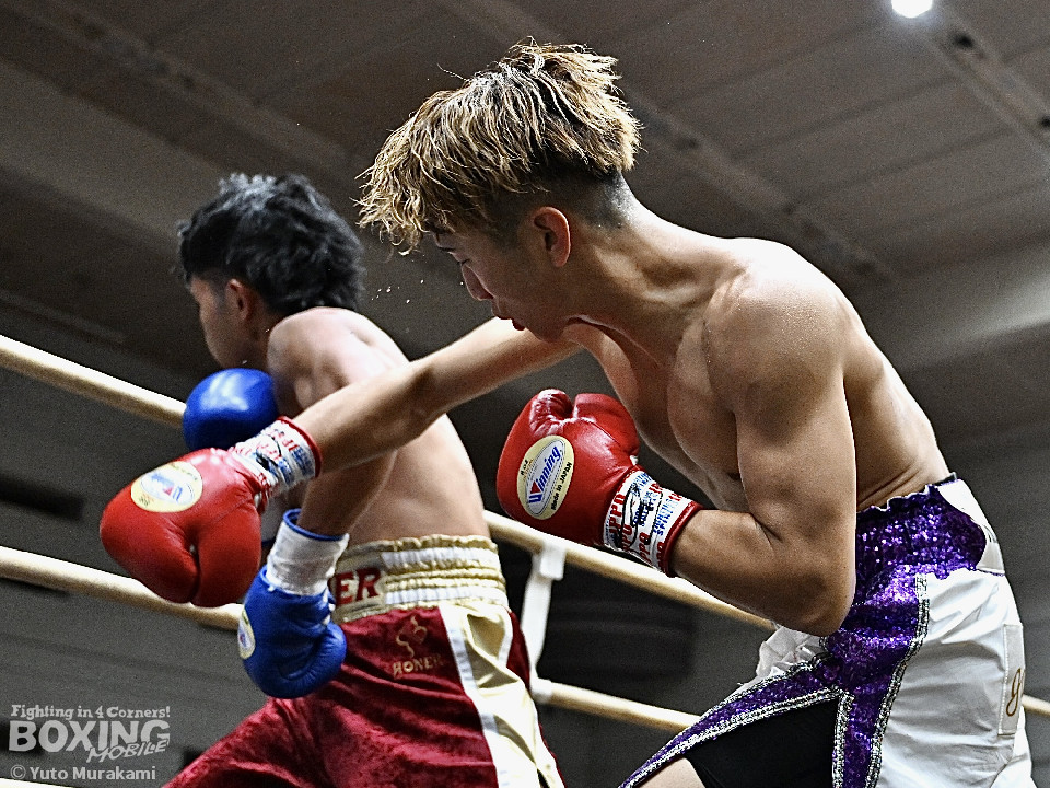 試合:ジャブを飛ばして距離を探る香川に対し、ジェドがステップインからの右フックでガクッと腰を沈めさせてペース掌握。2回、ジェドはサウスポーにスイッチして右フックを好打。香川はあと一歩が踏み込めず。明確にポイントを取りたい香川は3回、プレスをかけて左ボディで反撃。4回、ジェドが左フックで顔を弾くが、香川も右ストレートを返した。ジャッジ2者の支持を得た香川に軍配が上がった。