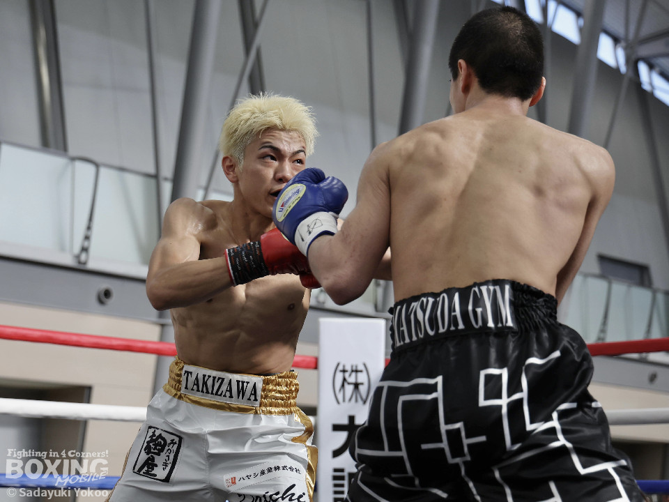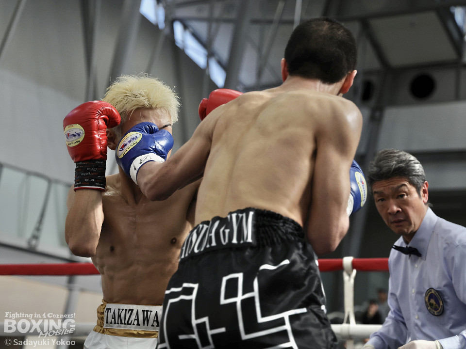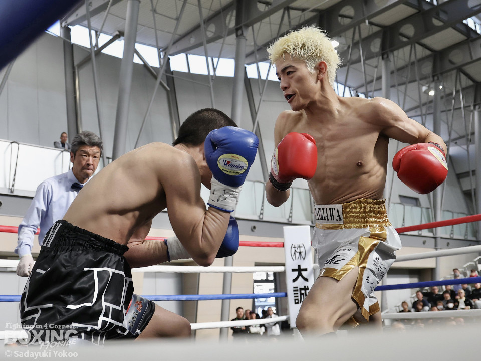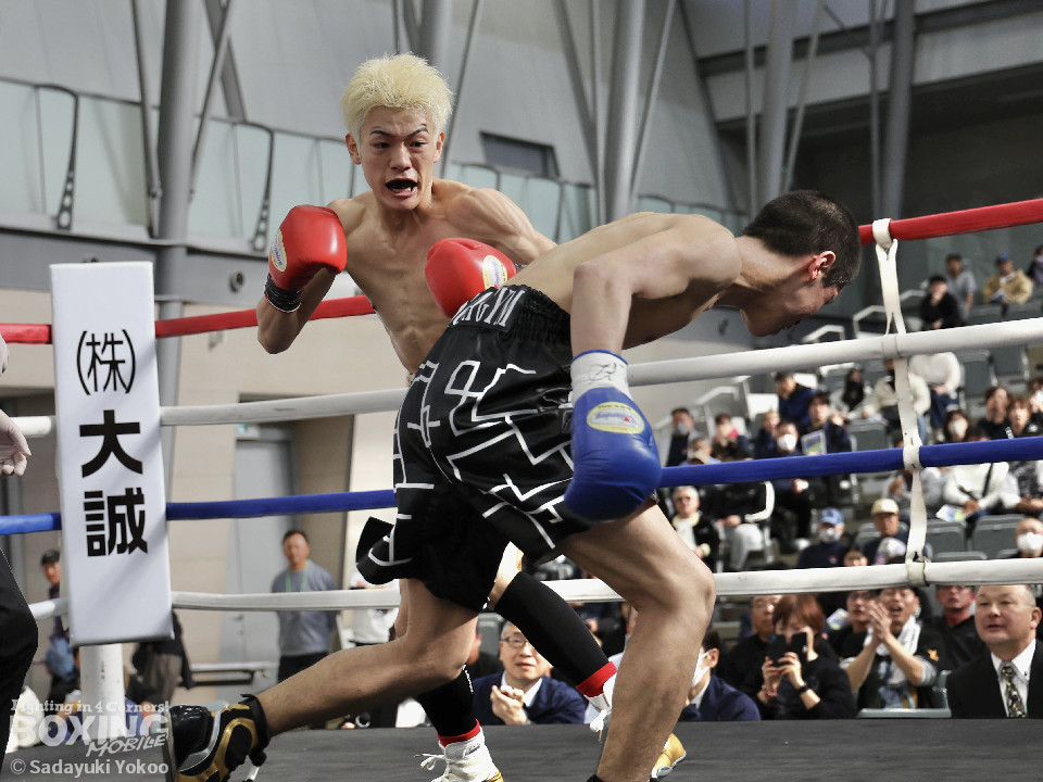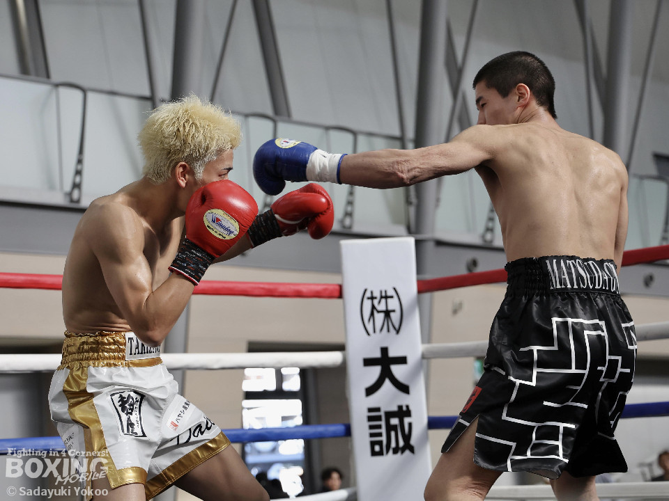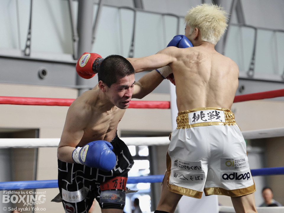 試合:試合開始直後からパンチを交錯させる両者。先手を取ったのは樋田。右ストレートを側頭部に合わせて一度目のダウンを奪う。立ち上がった島袋だがダメージは深く樋田の追撃に合う。その後、再び右ストレートをもらい完全に効いた島袋をレフェリーが救った。樋田は大歓声の中、勝ち名乗りを受けた。
