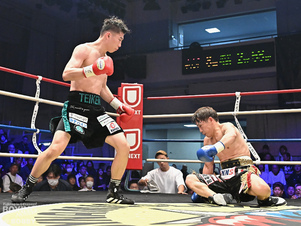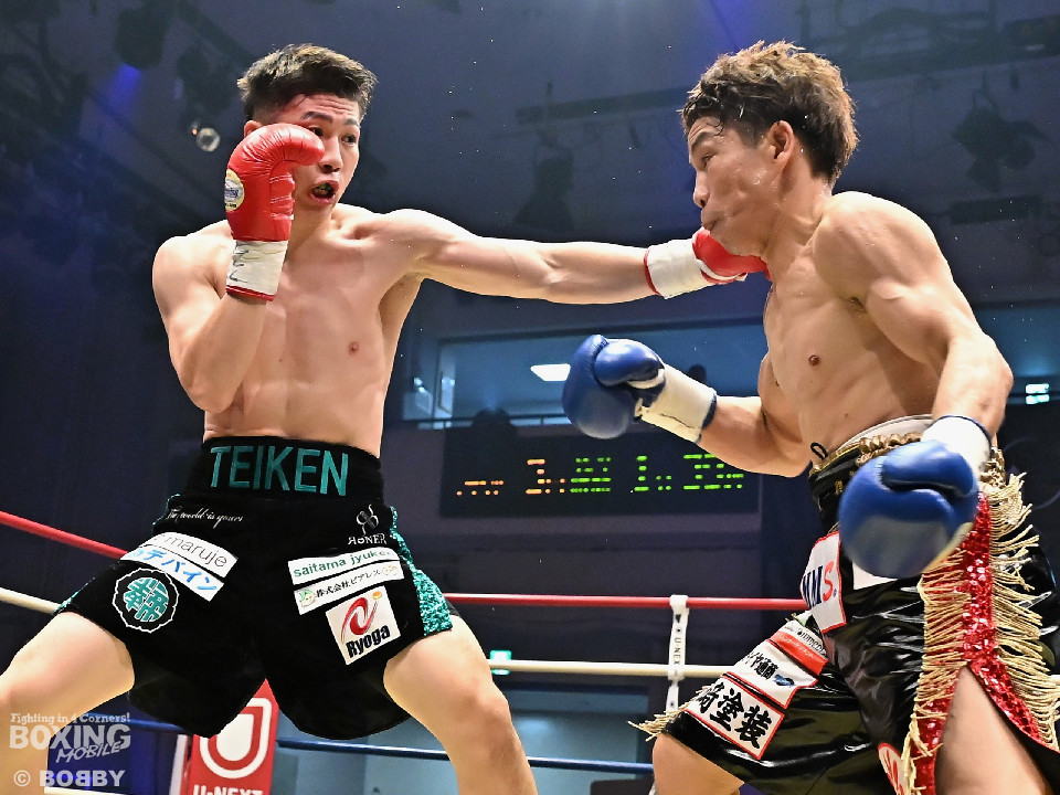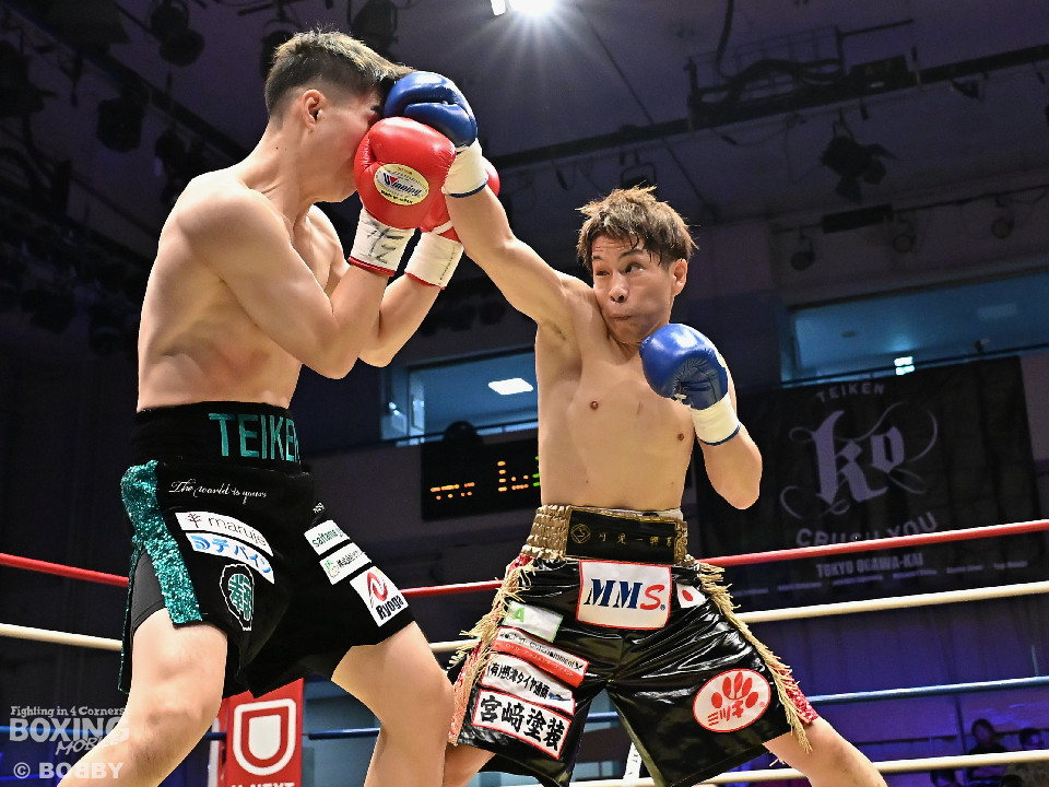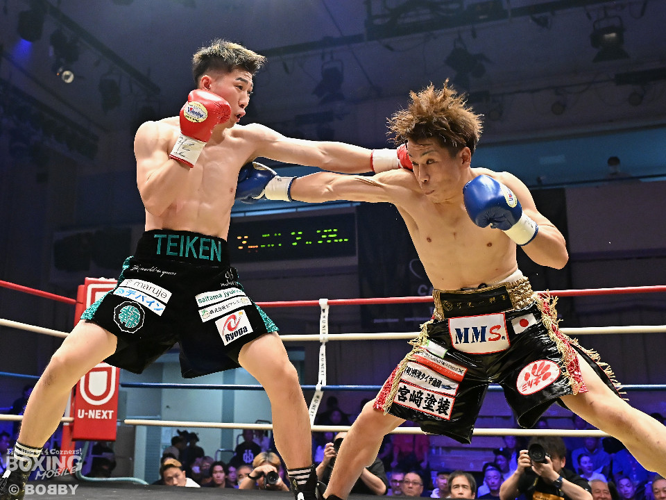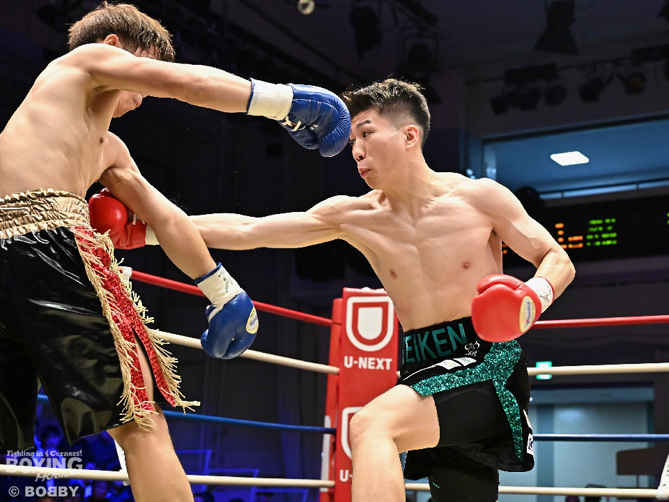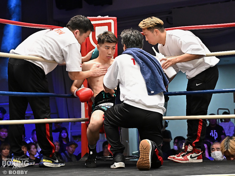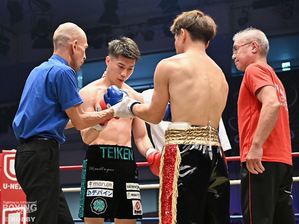 試合:1~2回、サウスポー岸根が前後を意識しながら左を狙うのに対し、福井は慎重にリターンを返す構図。激しいペース争いが続いた。3回、岸根が右ボディを叩くが、福井は右ストレートで顔を弾き見栄えの良さをアピール。4回、左から切り込む岸根だが、距離が遠く決定打を打ち込めず。福井はリターンの左フックを決めた。5回、福井は右ボディストレートを差し込みポイントを加点。頭がぶつかり左目を痛めた岸根に対し休憩が与えられた。6回、岸根は強引に前に出て右フックを強振、流れを変えに行く。7回、福井は打ち合いを避けてカウンターを軸に試合を進めた。8回、福井は右カウンターでダウンを奪取。再開後、オーソドックスにスイッチした岸根は、右オーバーハンドを叩きつけるが、福井は冷静さを失わなかった。福井が今年4月の日本タイトル戦以来の再起戦を飾った。