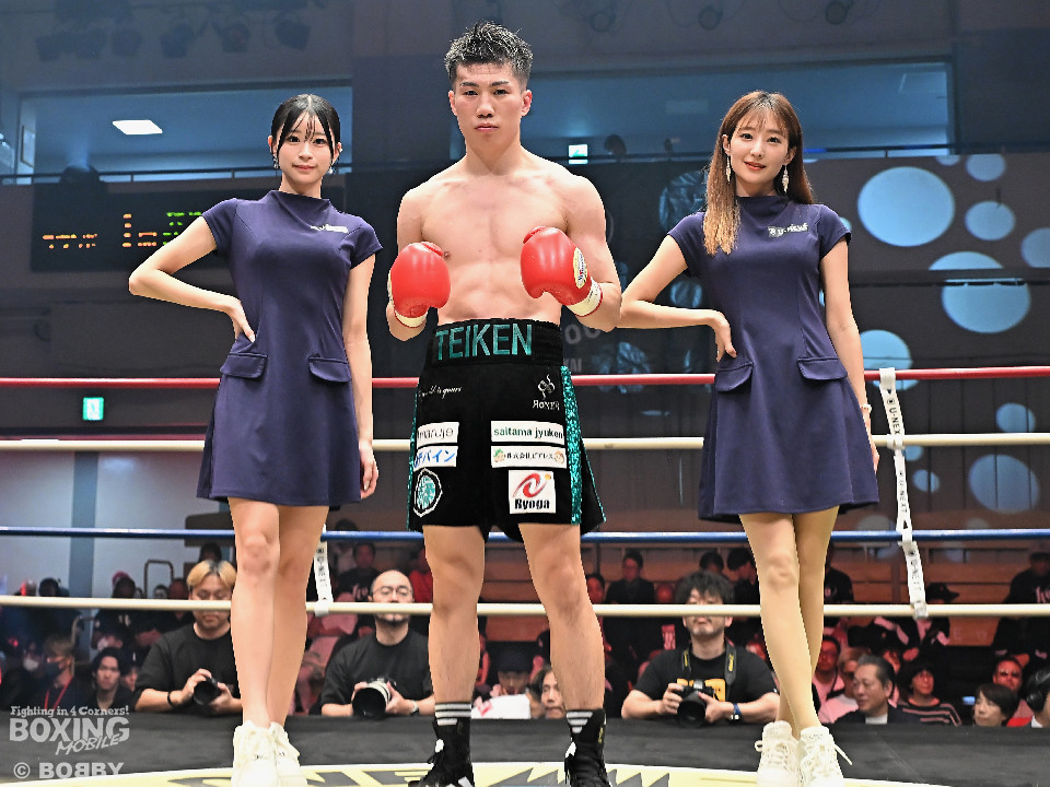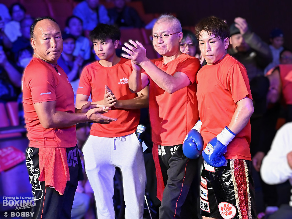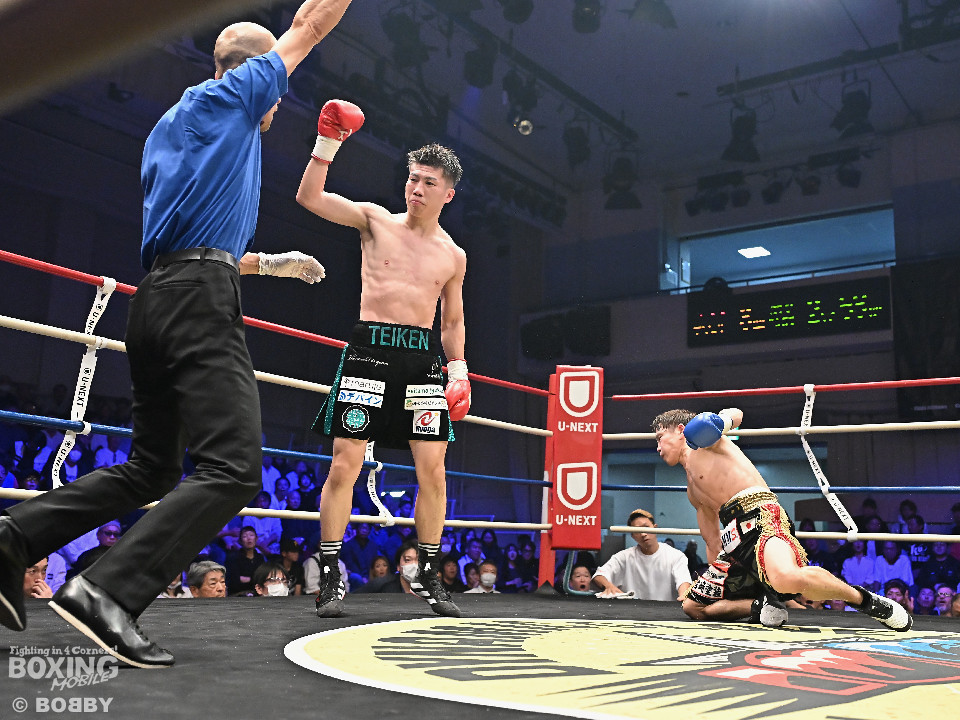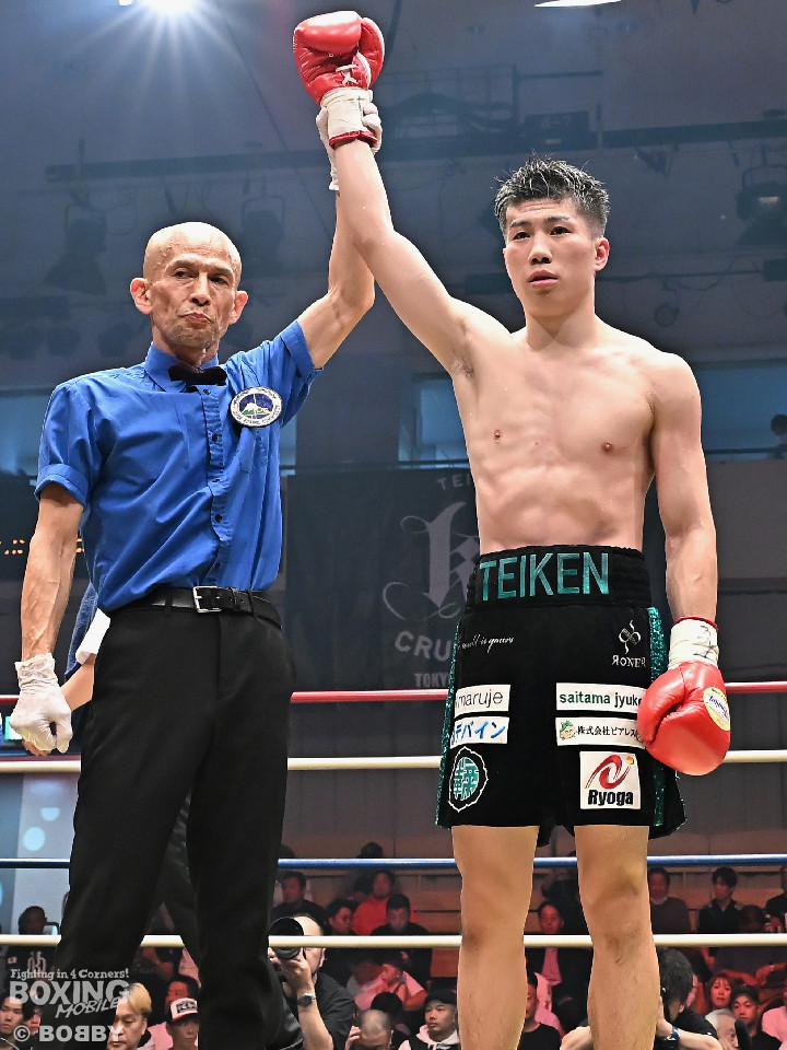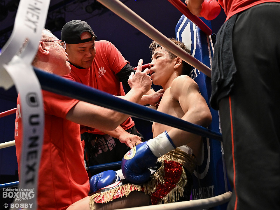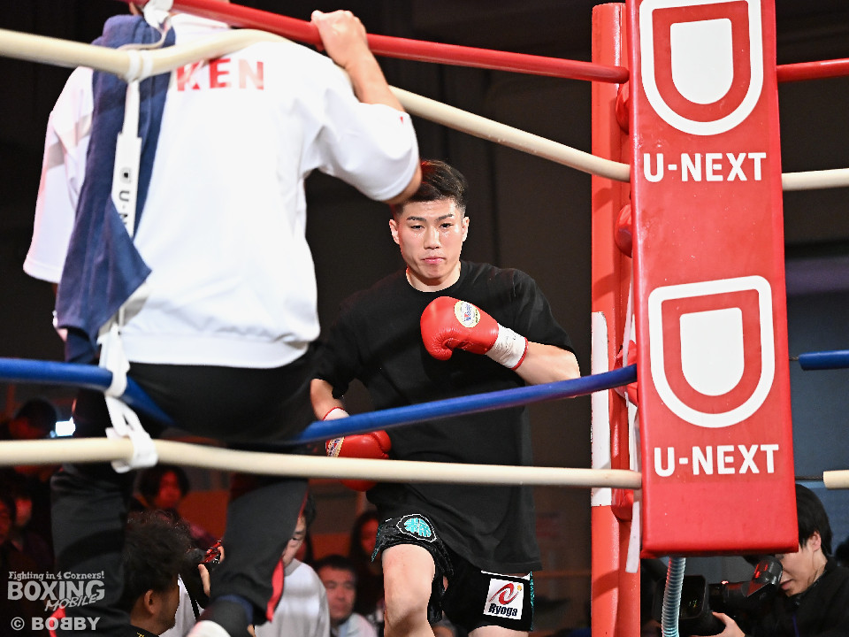 試合:1~2回、サウスポー岸根が前後を意識しながら左を狙うのに対し、福井は慎重にリターンを返す構図。激しいペース争いが続いた。3回、岸根が右ボディを叩くが、福井は右ストレートで顔を弾き見栄えの良さをアピール。4回、左から切り込む岸根だが、距離が遠く決定打を打ち込めず。福井はリターンの左フックを決めた。5回、福井は右ボディストレートを差し込みポイントを加点。頭がぶつかり左目を痛めた岸根に対し休憩が与えられた。6回、岸根は強引に前に出て右フックを強振、流れを変えに行く。7回、福井は打ち合いを避けてカウンターを軸に試合を進めた。8回、福井は右カウンターでダウンを奪取。再開後、オーソドックスにスイッチした岸根は、右オーバーハンドを叩きつけるが、福井は冷静さを失わなかった。福井が今年4月の日本タイトル戦以来の再起戦を飾った。