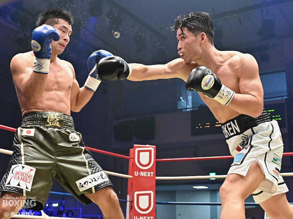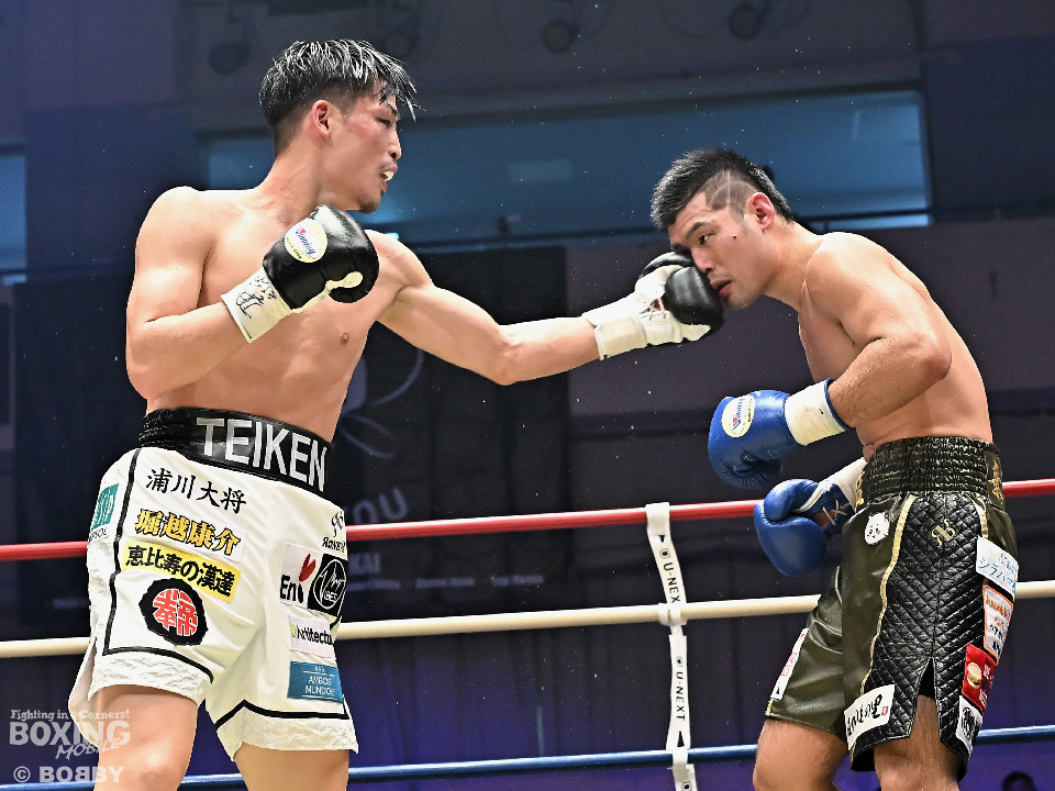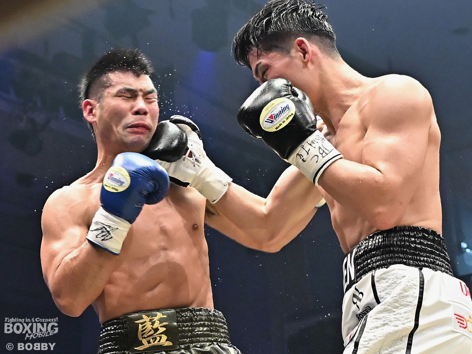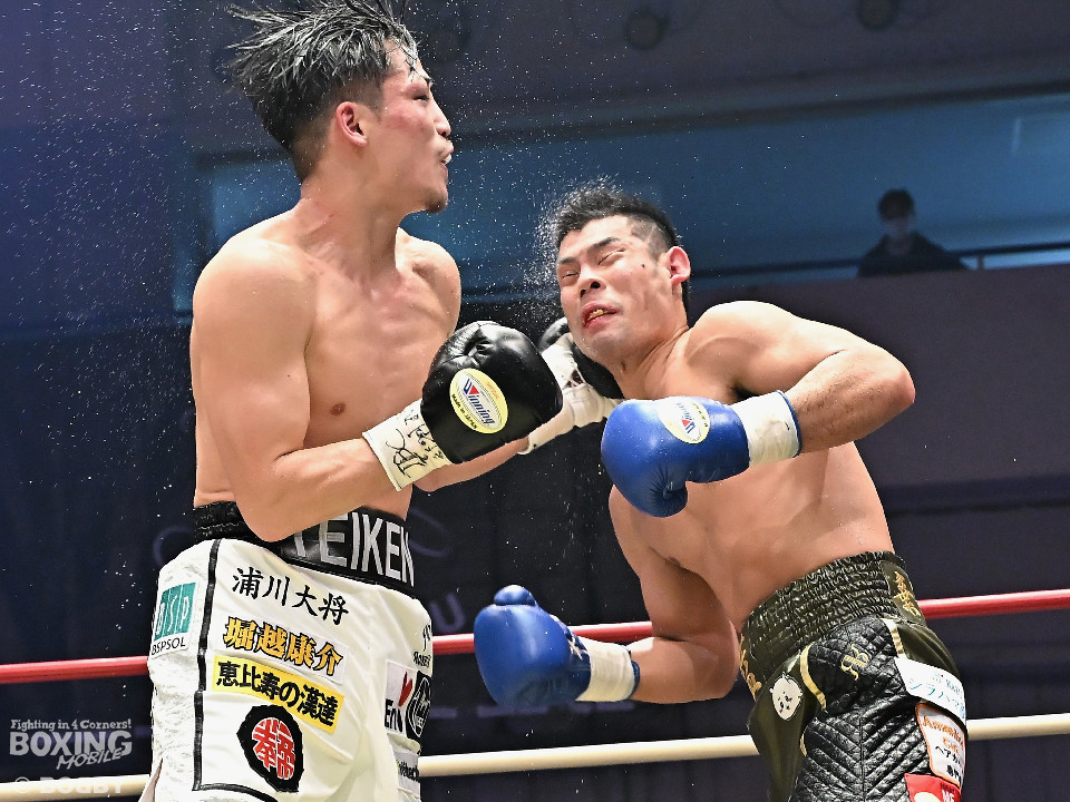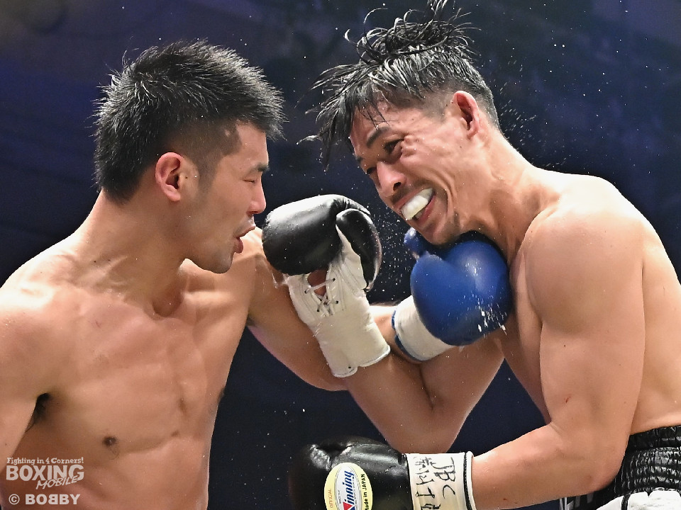 試合:空位の日本スーパーウェルター級王座を玉山と神風が争った。玉山がプレスをかけながらワンツー、左ボディで先制。神風はガードを固めながらジャブで対抗。2回、神風は左ボディから左フックにつなげて反撃。3回、神風は右フックでバランスを崩させると回転力を上げてアグレッシブな姿勢。4回、接近戦でのショートパンチの交換、玉山の有効打がやや上回った印象。5回、神風は右フックをねじ込むと左右フックを叩きつけて攻勢。前半終了時の公開採点は、48-47×2、49-46×1で神風がリード。6回、神風は右アッパーで顔を跳ね上げるとパパっとまとめた。7回、神風は右フックでグラつかせると一気にスパート!ピンチの玉山はクリンチで逃れるとラウンド終了間際に反撃に転じた。8回、玉山はワンツーから手数を増やして猛追。壮絶な打撃戦に会場は興奮に包まれた。9回、休むことのない乱打戦で意地のぶつかり合い!玉山はヒッティングで右目上をカットした。10回、両応援団の大声援が起こる中、神風が右フックをねじ込むと連打で攻勢。最後まで粘る玉山を振り切ると試合終了間際にもスパートをかけた。ジャッジ2者の支持を得た神風が新チャンピオン。激戦を制した神風はリング上で歓喜の涙を流した。