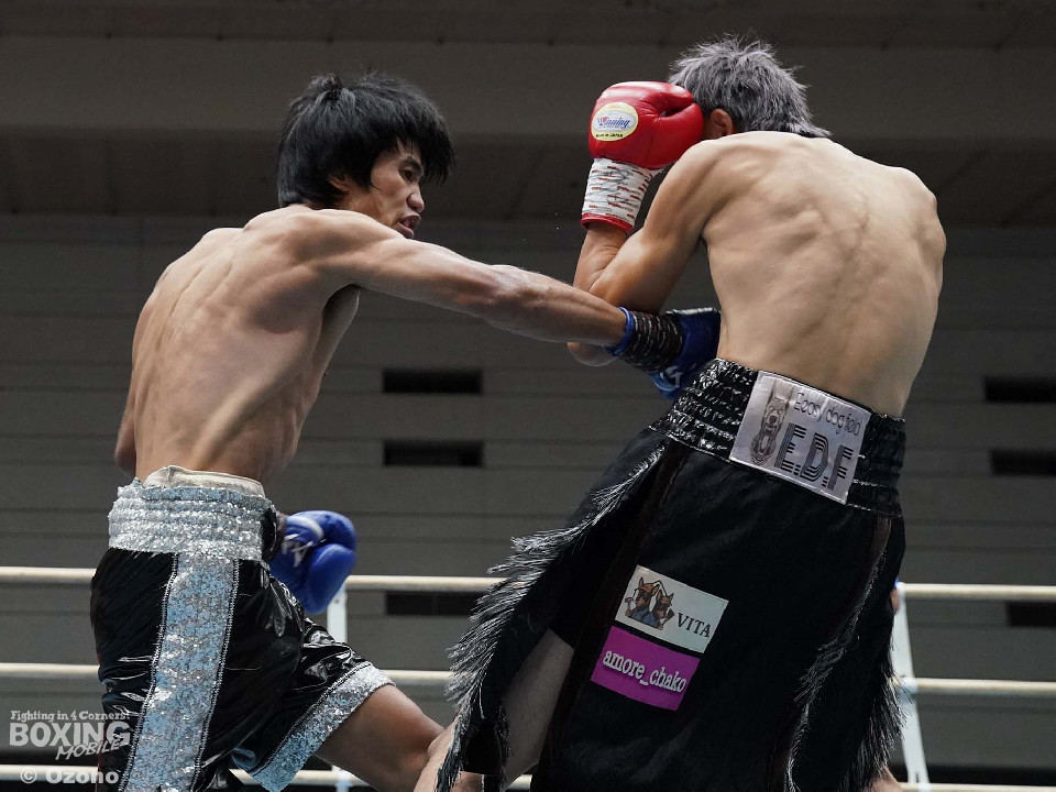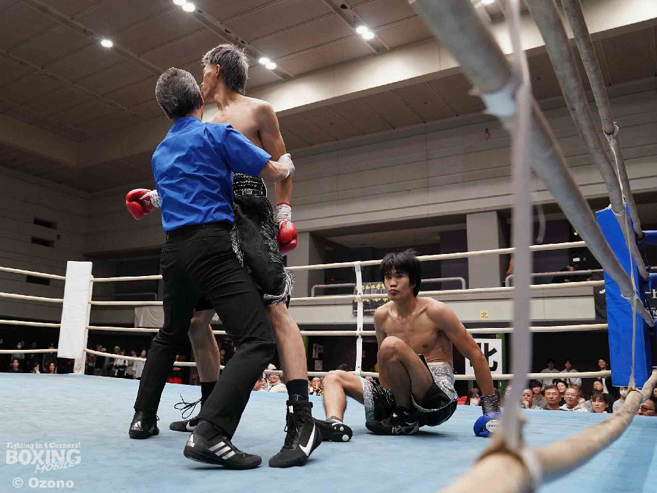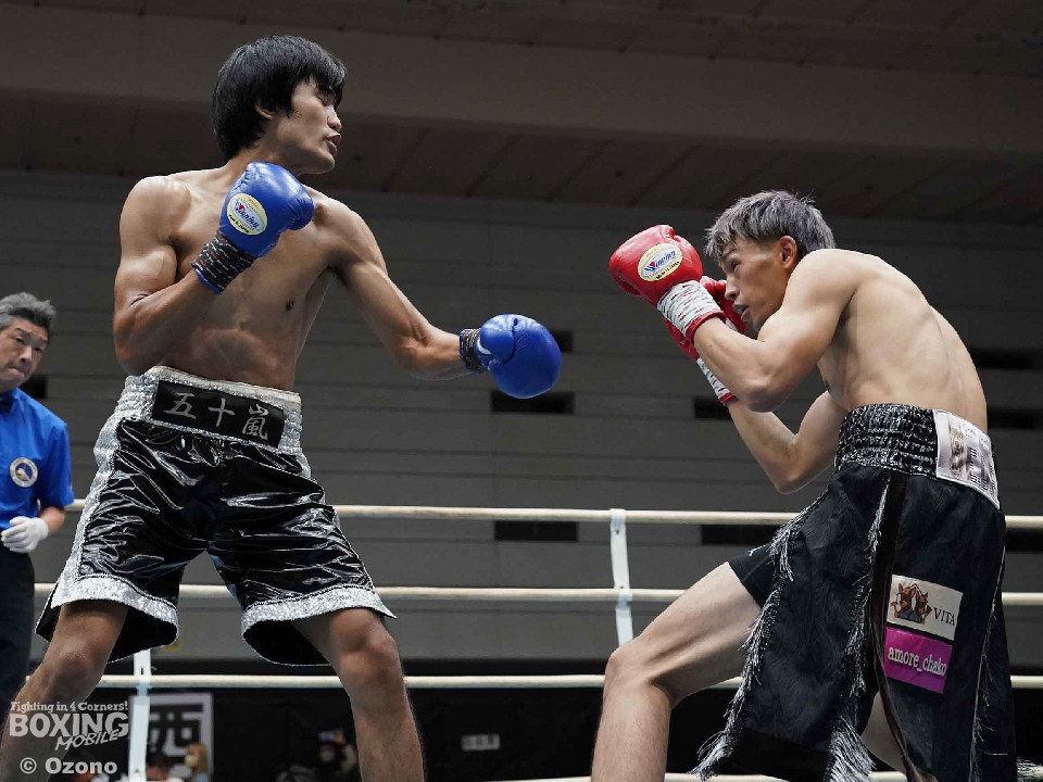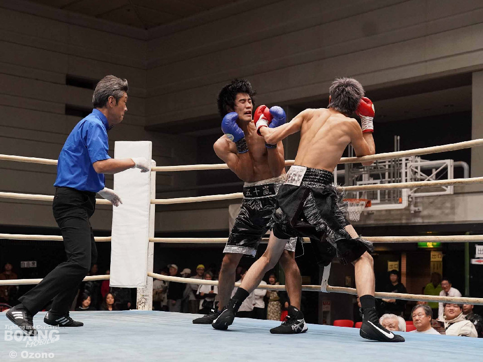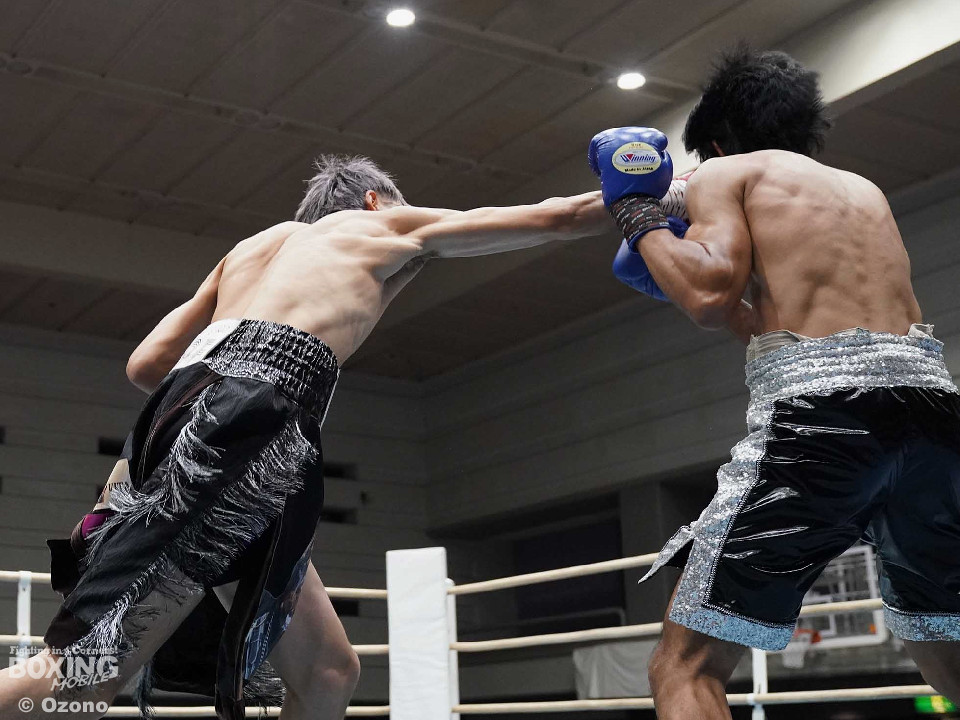 試合:芝本がジャブから右オーバーハンドを叩きつけて先制攻撃。出入りを意識しながらアグレッシブな姿勢。五十嵐の右クロスを浴びたが冷静さを保つとワンツーでダウンを先取。再開後、ロープに詰めて連打を浴びせると防戦一方になった五十嵐を見てレフェリーが割って入った。B級初戦の芝本がKO勝ちした。