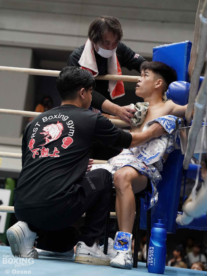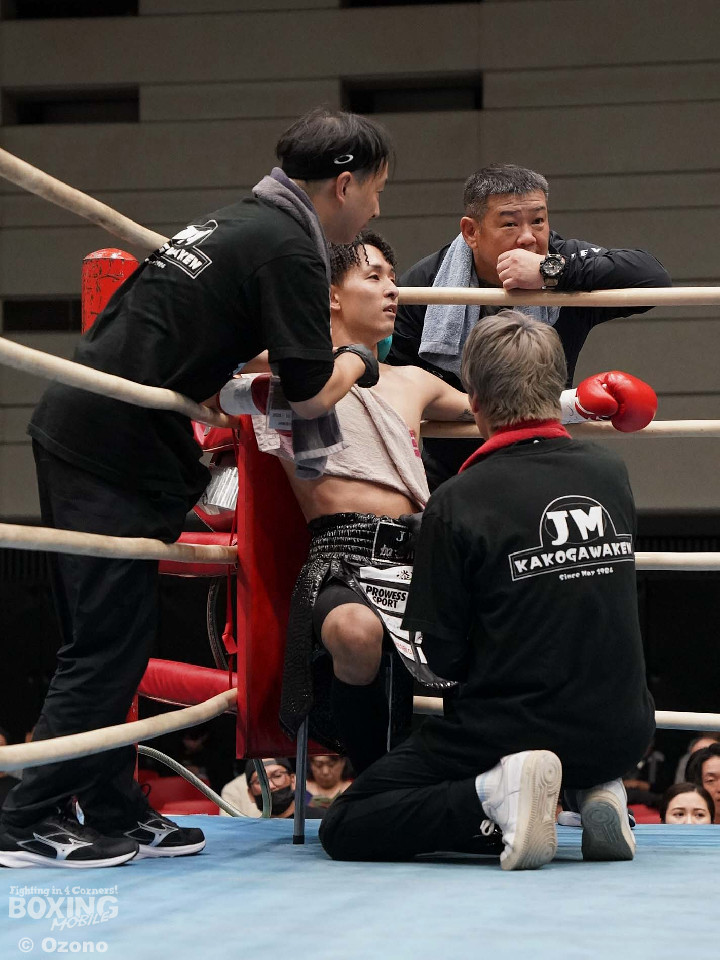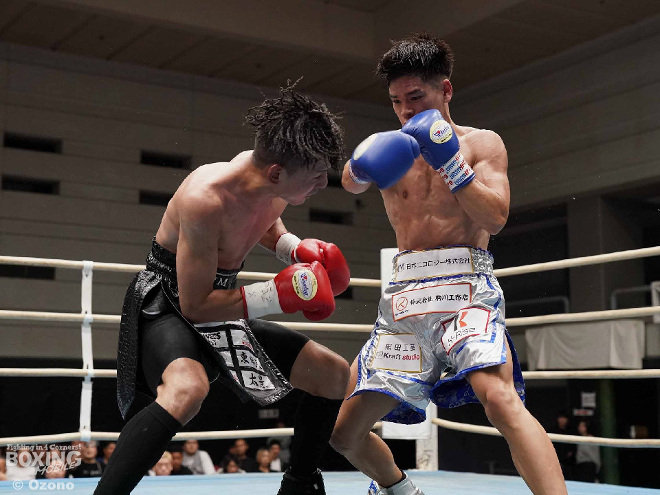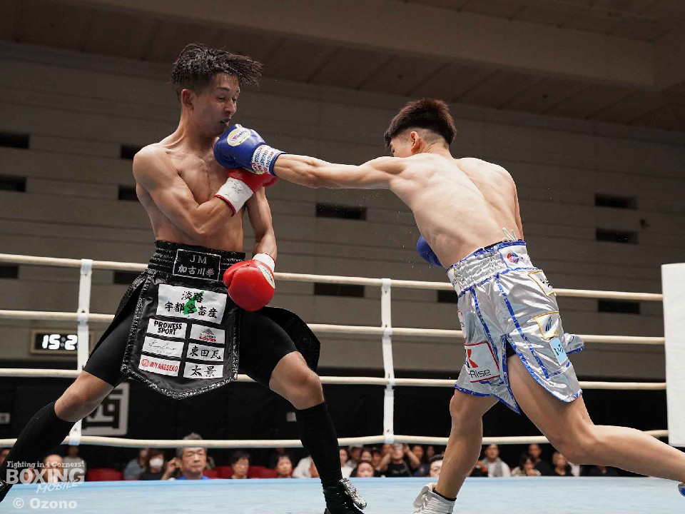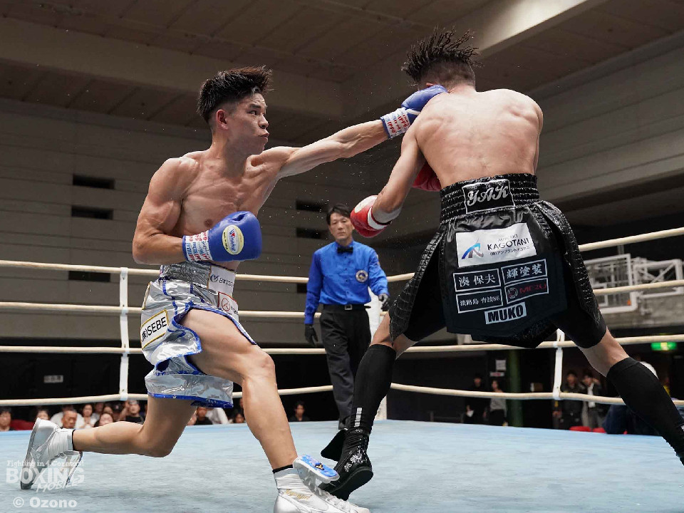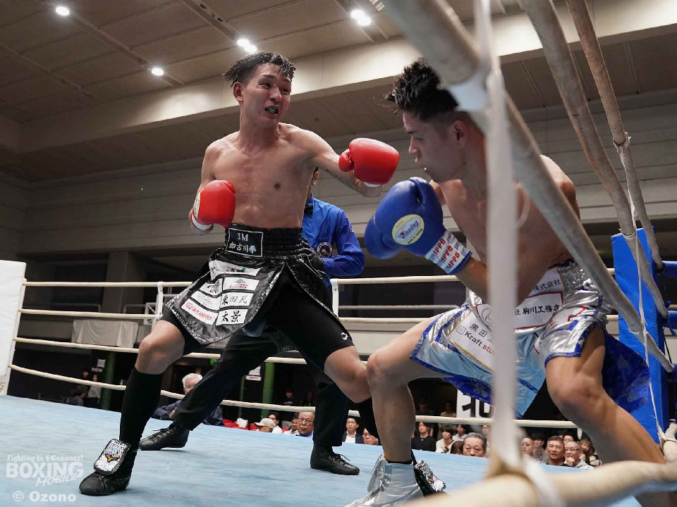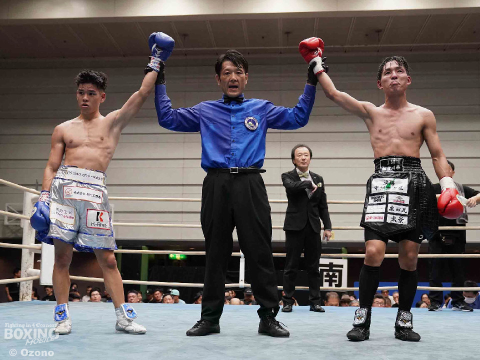 試合:序盤、サウスポー小田切が中間距離をキープしながら右フック、ワンツーをヒットすると打ち合いに付き合わず。3回、湊は強引に前に出て右ボディストレートから切り込むが、小田切は右フックを引っかけてリズムを保った。4回、小田切はスピードを活かした攻撃で的を絞らせず。5回も小田切はリターンの左を決めると距離が詰まるとクリンチで攻撃を遮断。6回、湊はステップインからワンツーをヒットし反撃すると続く回も要所で右ストレートを好打し挽回。8回、湊はプレスをかけて回転力を上げて攻勢をかけた。ジャッジ1者は小田切につけたが残り2者は引き分けとした。