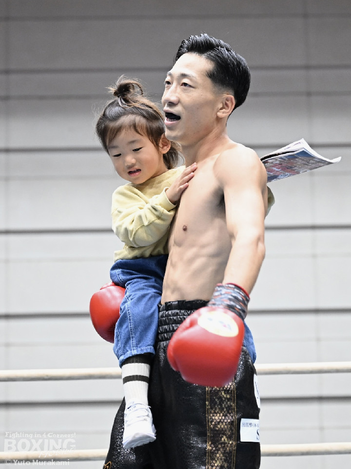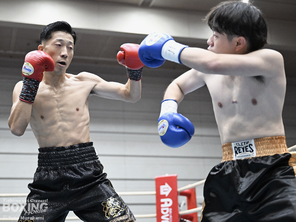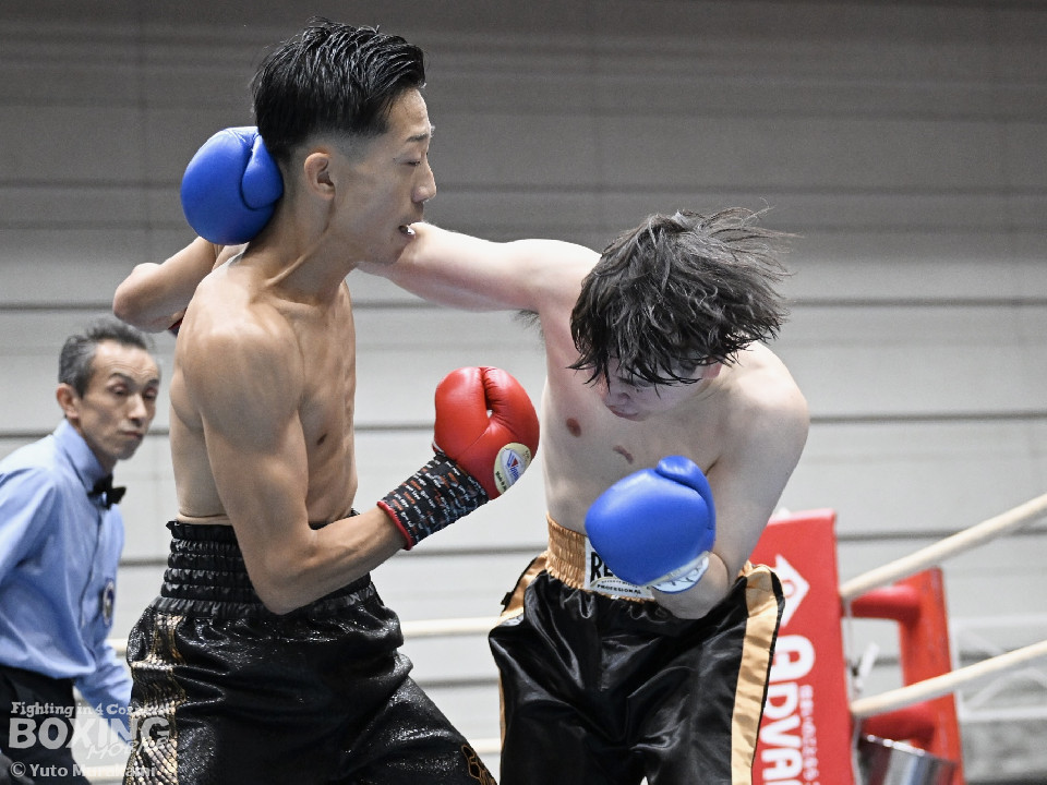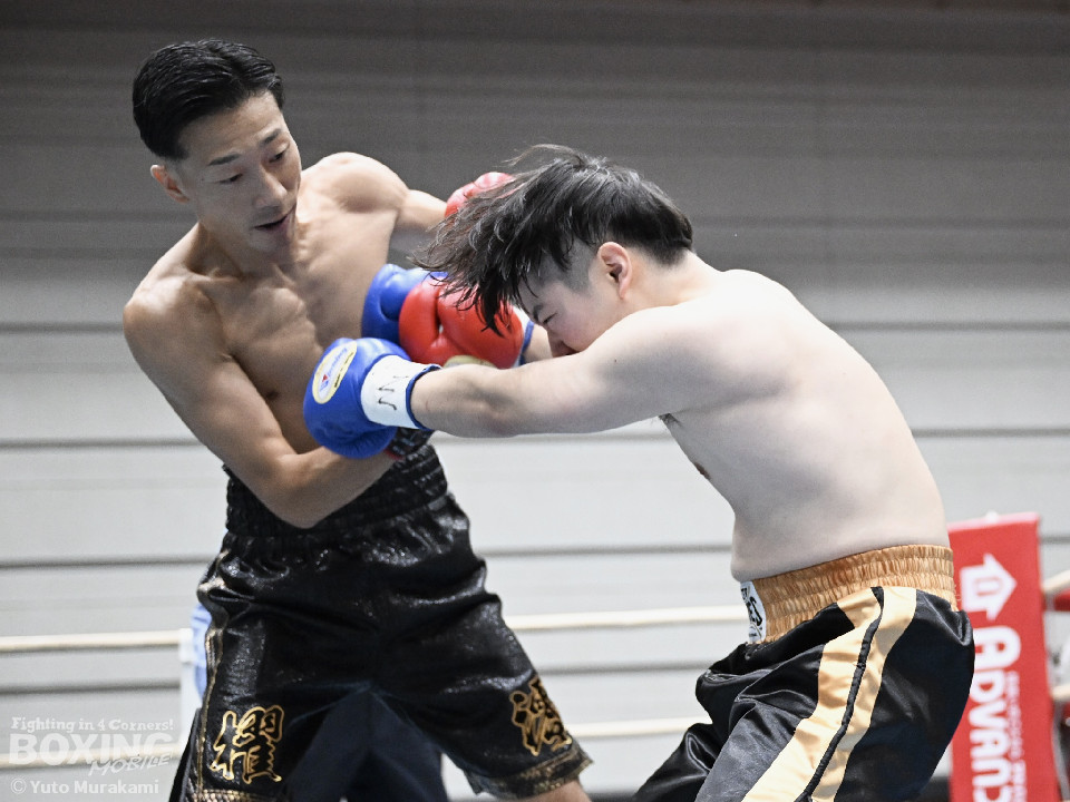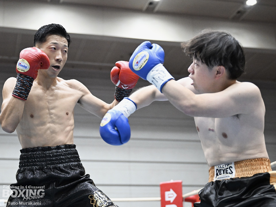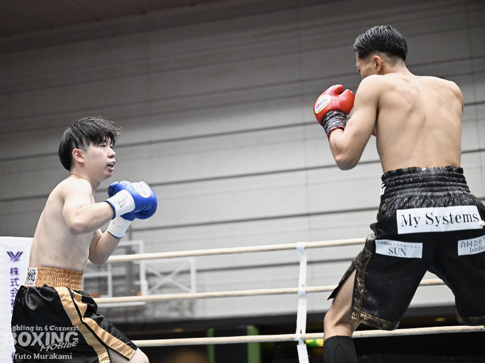 試合:サウスポー古池がサークリングしながらジャブを飛ばすのに対し、田中はジリジリと距離を詰めてタイミングを探る。慎重な立ち上がりとなったがラウンド終了間際、田中がワンツーでコーナーに押し込むと右ボディアッパーを突き刺すと、動きが止まった古池を見てレフェリーがストップした。
