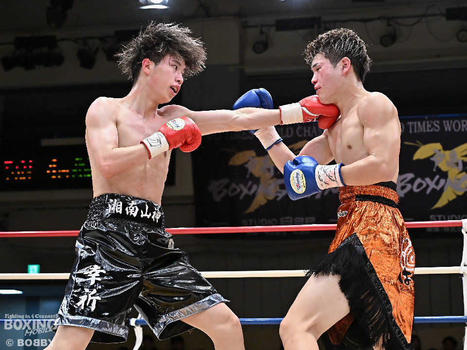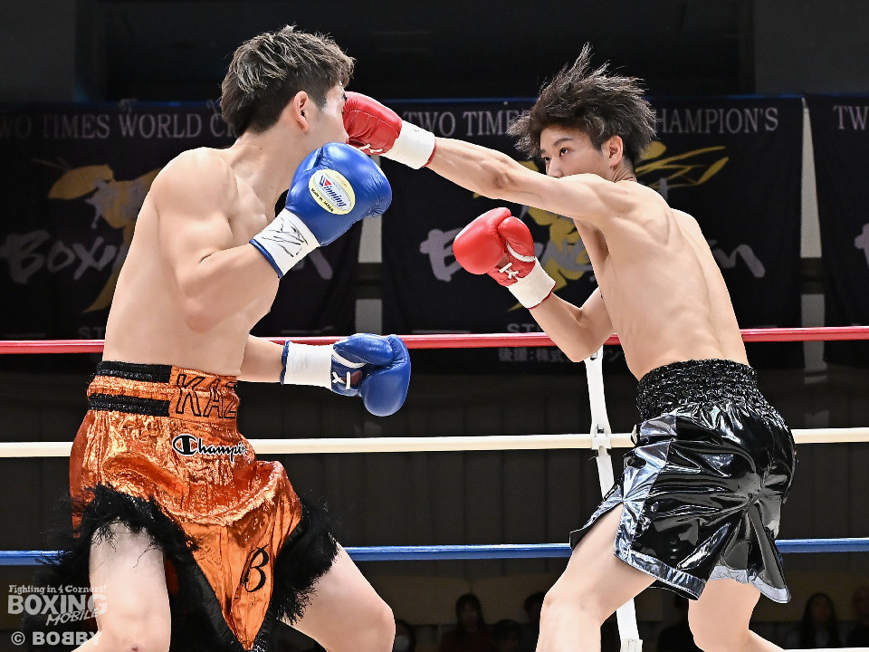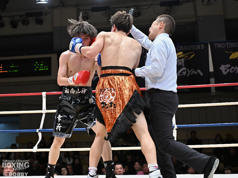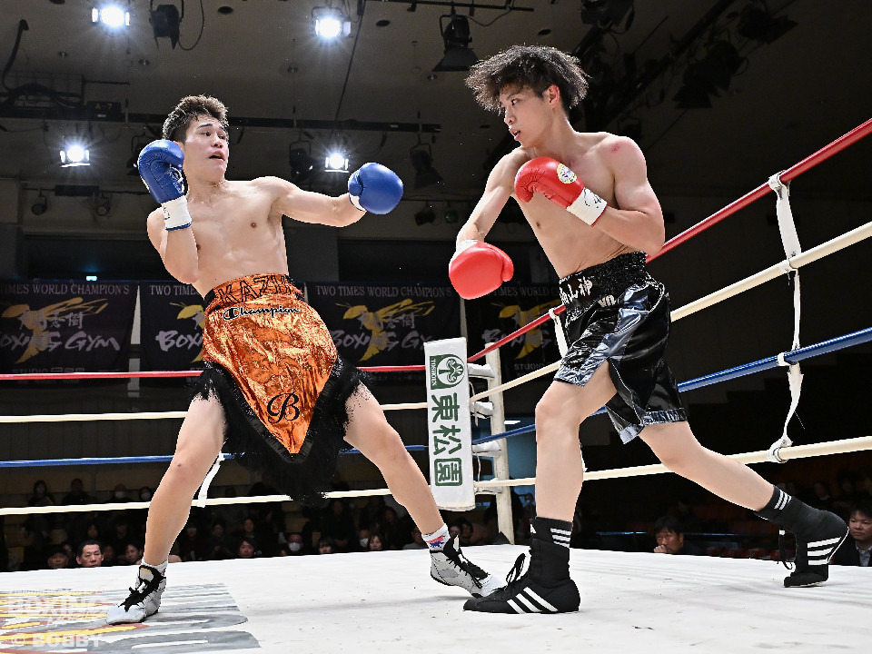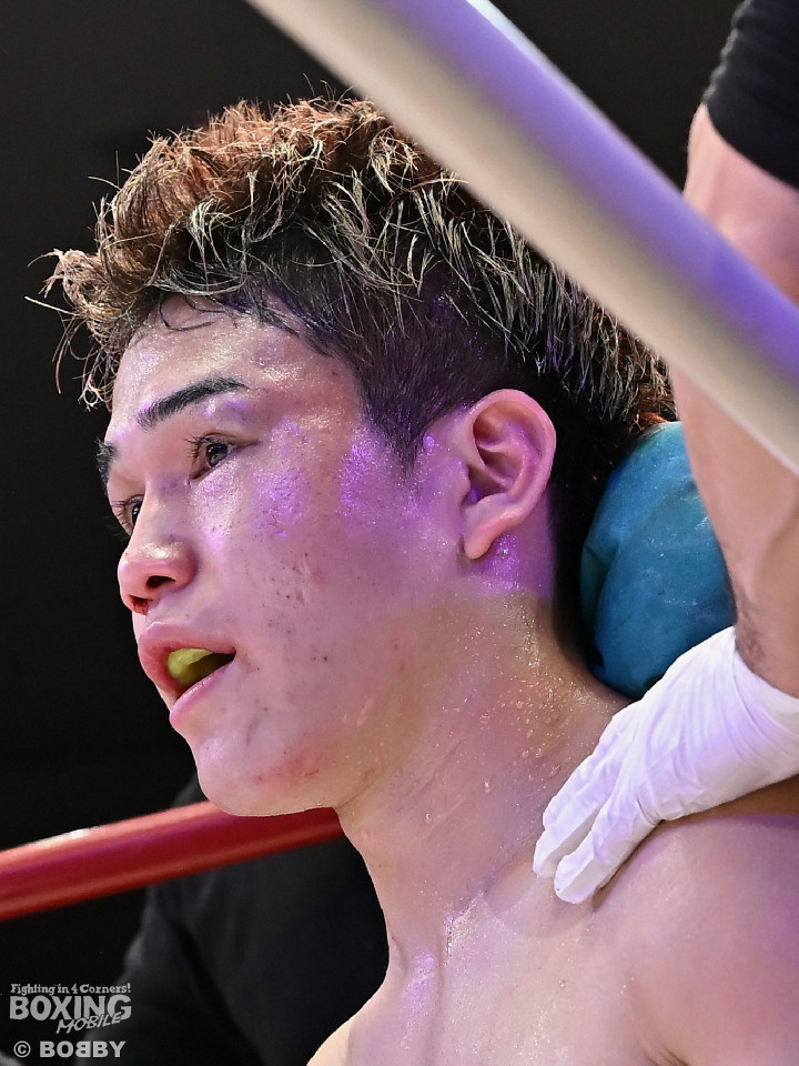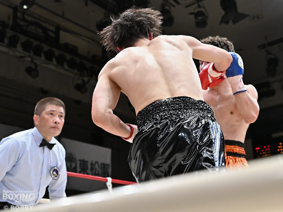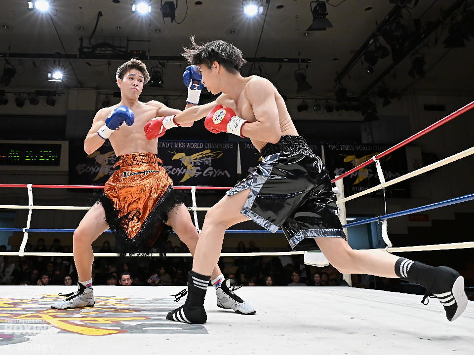 試合:石井がボディワークでかわすと単発の右ストレートをヒット。2回、相撃ちの右で片膝を突いた永嶋を見てレフェリーはダウンを宣告。再開後、永嶋は右ボディを突き刺すと激しいパンチの応酬を繰り広げた。3回、石井は頭のポジションをずらしながら的を絞らせず。ラウンド終盤にはワンツーで顔を弾いた。右ストレートにつなげたい永嶋だが、力みが見られた。4回、永嶋は回転力を活かした連打で反撃。石井も負けじと右ストレートで応戦すると永嶋の右目上が腫れ出した。その後もお互いに一歩も引かず打ち合っていたが、レフェリーが突然ストップ。永嶋の勝ちとしたが、間違いだったようですぐに石井の勝ちを告げた。永嶋の目の状態がこれ以上の試合続行不能と判断したもの。唐突な幕切れに会場は騒然となった。