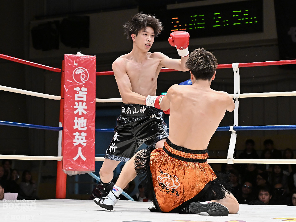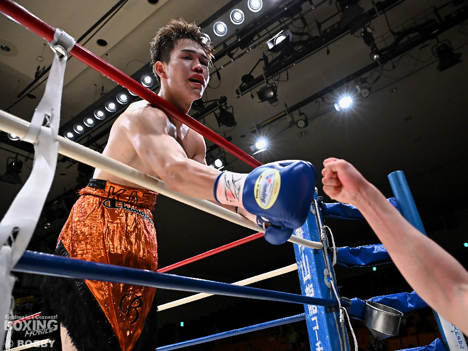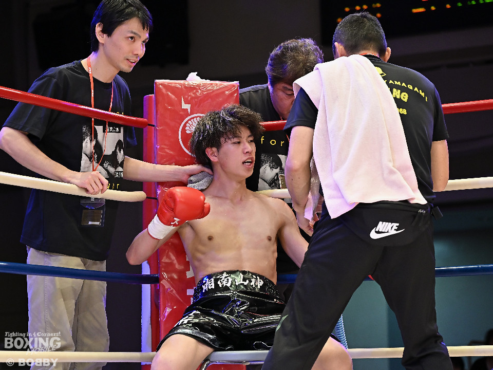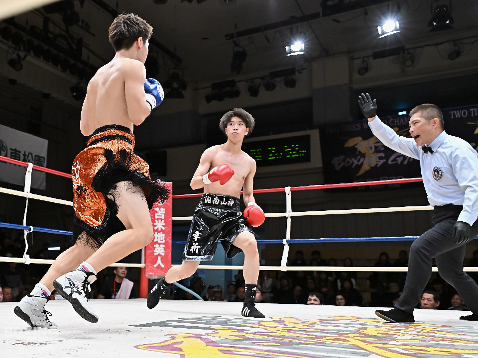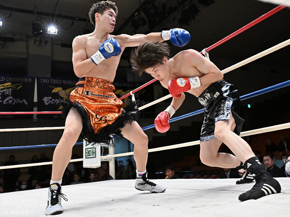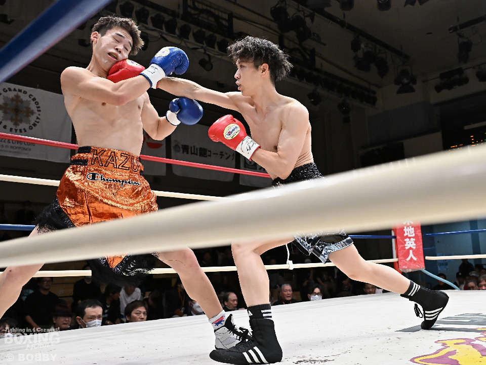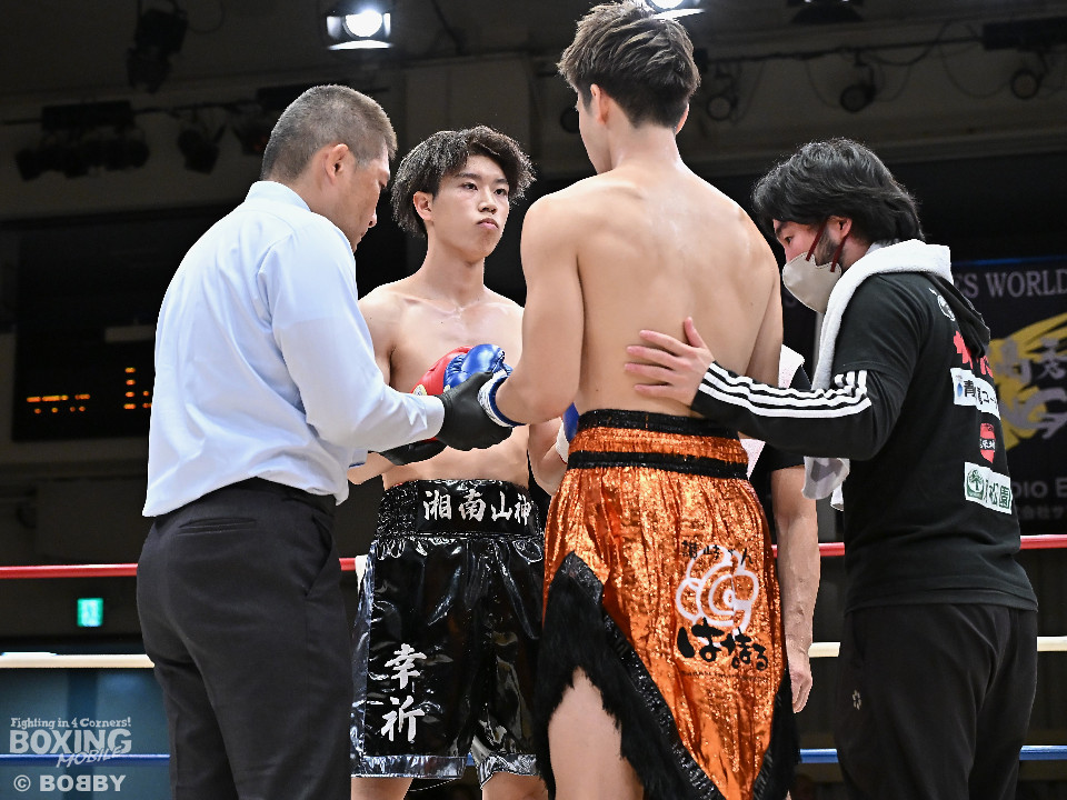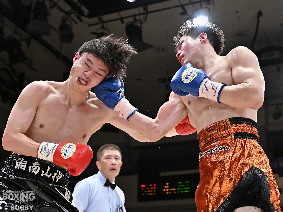 試合:石井がボディワークでかわすと単発の右ストレートをヒット。2回、相撃ちの右で片膝を突いた永嶋を見てレフェリーはダウンを宣告。再開後、永嶋は右ボディを突き刺すと激しいパンチの応酬を繰り広げた。3回、石井は頭のポジションをずらしながら的を絞らせず。ラウンド終盤にはワンツーで顔を弾いた。右ストレートにつなげたい永嶋だが、力みが見られた。4回、永嶋は回転力を活かした連打で反撃。石井も負けじと右ストレートで応戦すると永嶋の右目上が腫れ出した。その後もお互いに一歩も引かず打ち合っていたが、レフェリーが突然ストップ。永嶋の勝ちとしたが、間違いだったようですぐに石井の勝ちを告げた。永嶋の目の状態がこれ以上の試合続行不能と判断したもの。唐突な幕切れに会場は騒然となった。