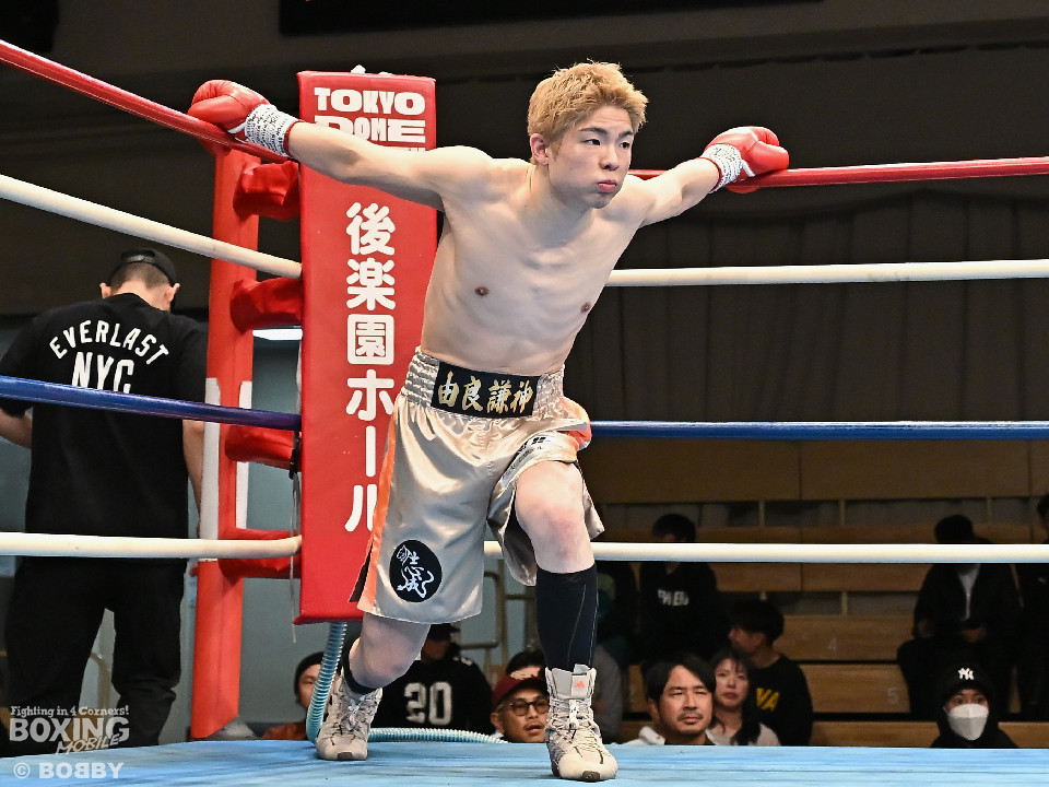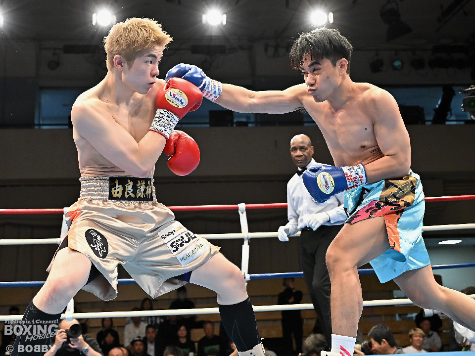 試合:由良がジャブを突きながら丁寧に組み立てると右ボディでダウンを先取。戦意喪失したアフィシットに迫ると左アッパーで2度目のダウンを奪い試合を終わらせた。圧勝した由良は、「久しぶりの試合で良い勝ち方で良かった。今回は丁寧なボクシングができたと思う。一戦一戦こなして成長した姿を見せていきたい」と語った。