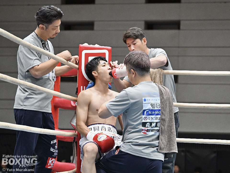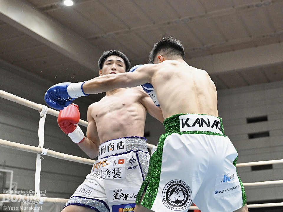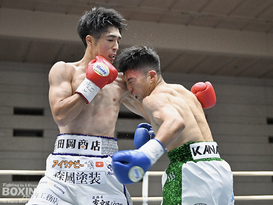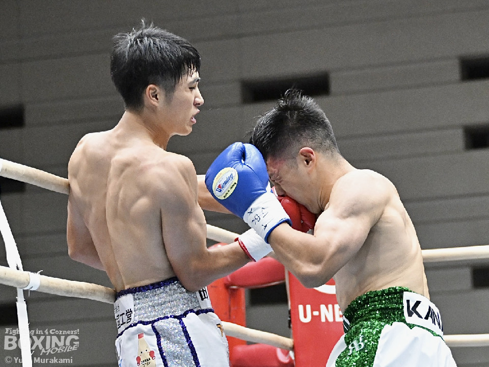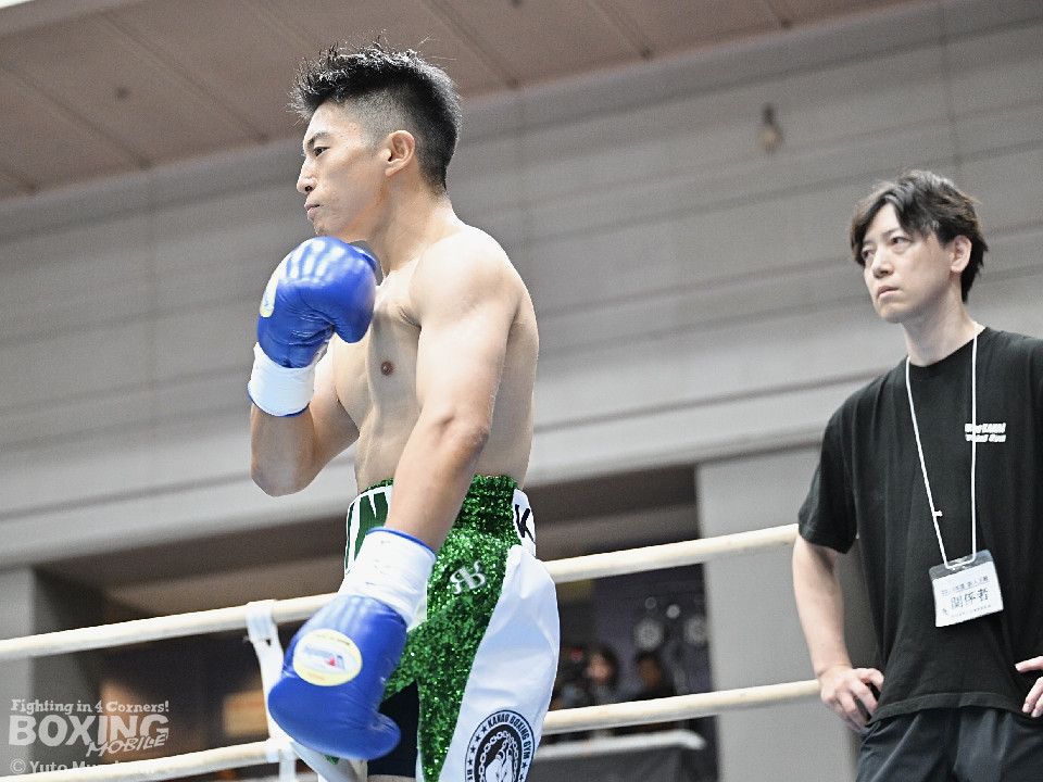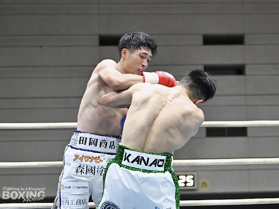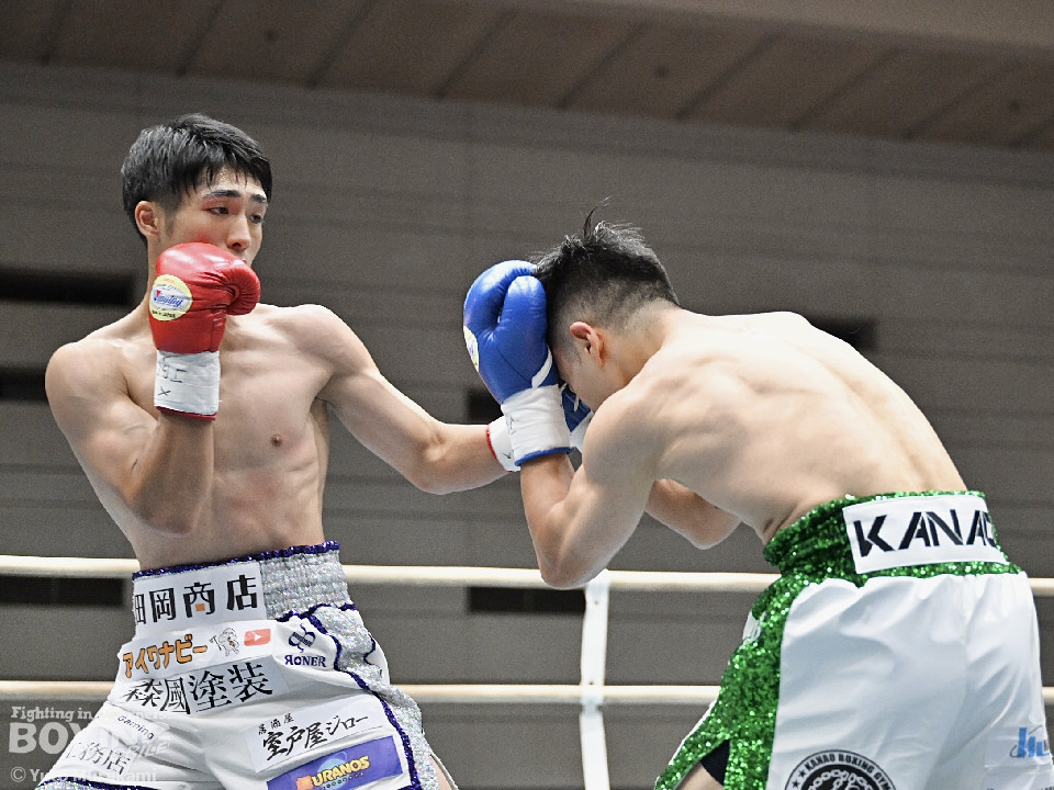 試合:市原が強烈な右ストレートを叩きつけるが、川添はガッチリとガードすると懐に飛び込んで右フックで応戦。2回、市原は右アッパー、左ボディを痛打すると相手の前進を捌きつつ有効打を重ねた。3回、市原は右ショートアッパーでグラつかせるとパンチをまとめてレフェリーストップに持ち込んだ。市原が7戦全勝(7KO)で全日本新人王決定戦に進出した。