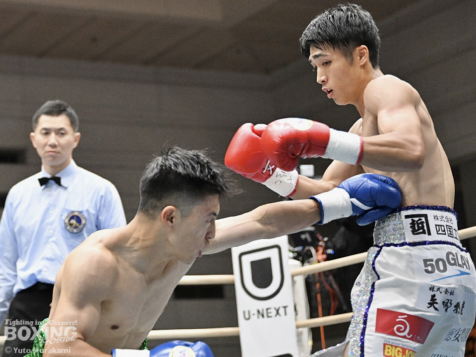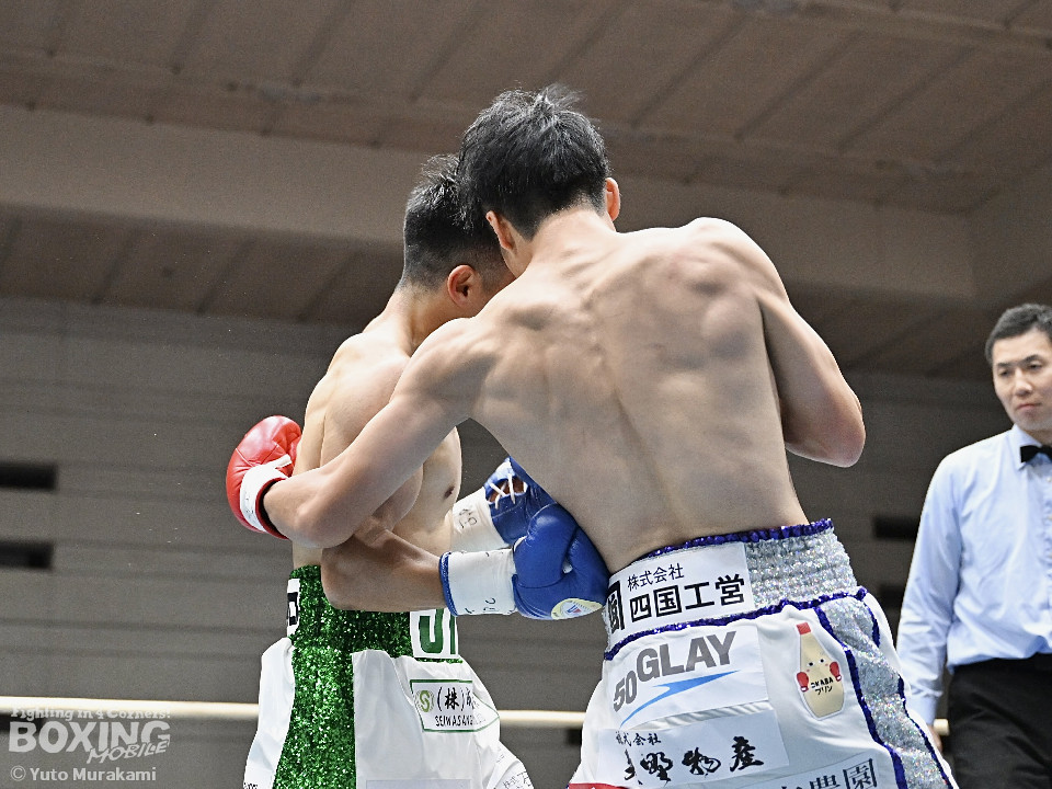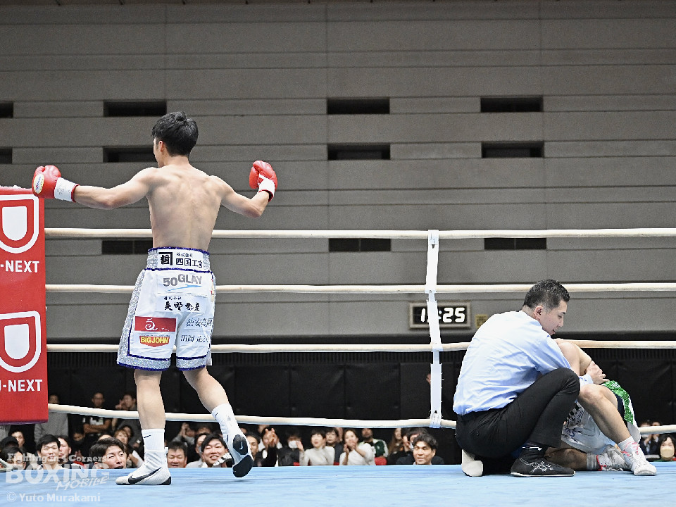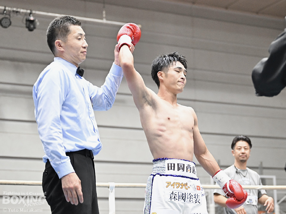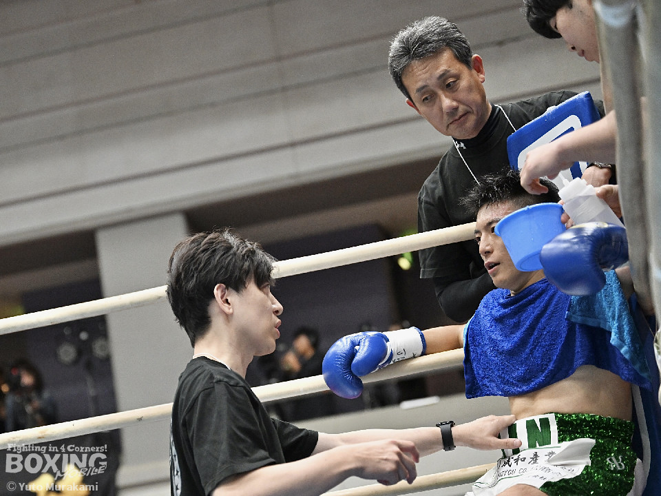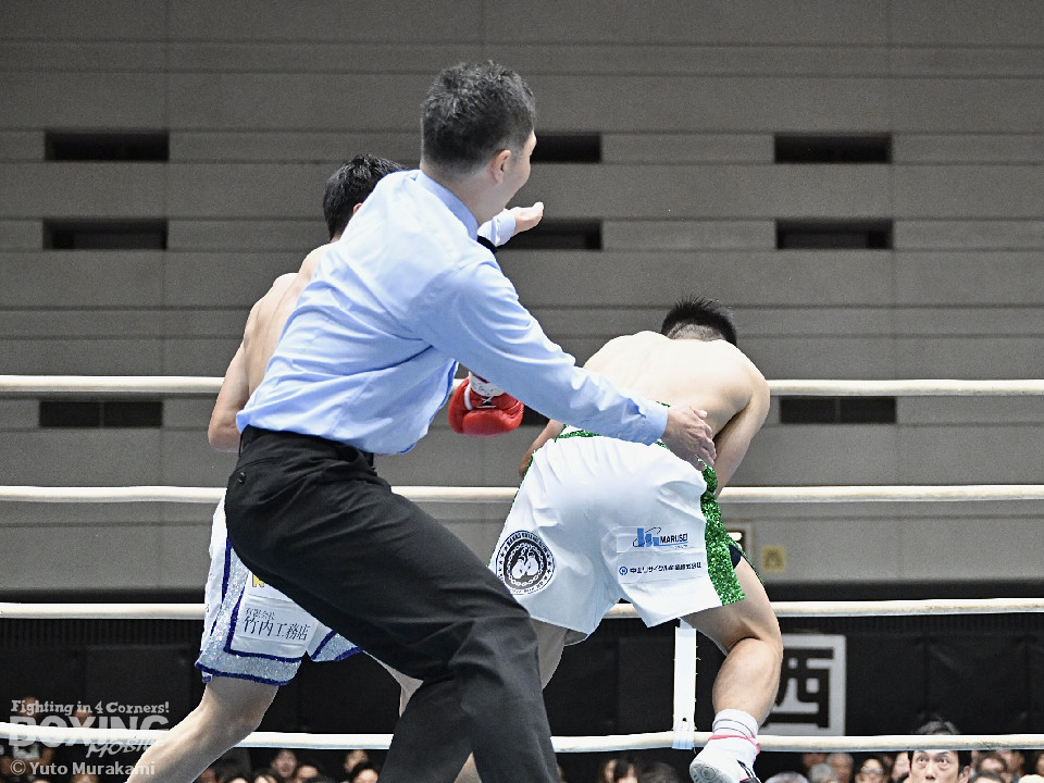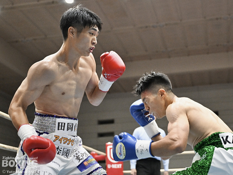 試合:市原が強烈な右ストレートを叩きつけるが、川添はガッチリとガードすると懐に飛び込んで右フックで応戦。2回、市原は右アッパー、左ボディを痛打すると相手の前進を捌きつつ有効打を重ねた。3回、市原は右ショートアッパーでグラつかせるとパンチをまとめてレフェリーストップに持ち込んだ。市原が7戦全勝(7KO)で全日本新人王決定戦に進出した。