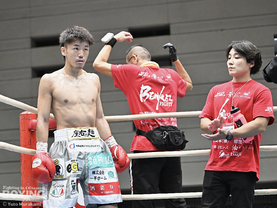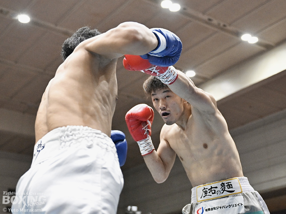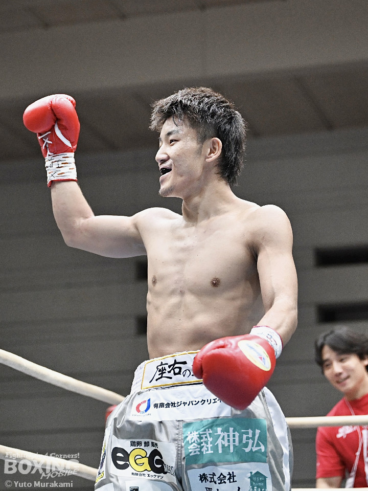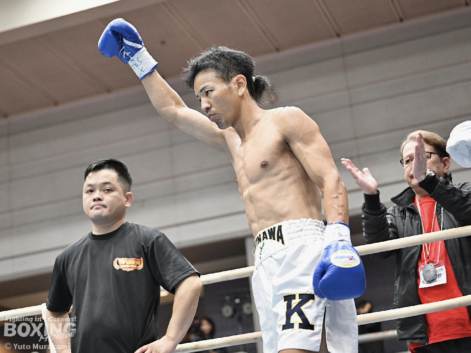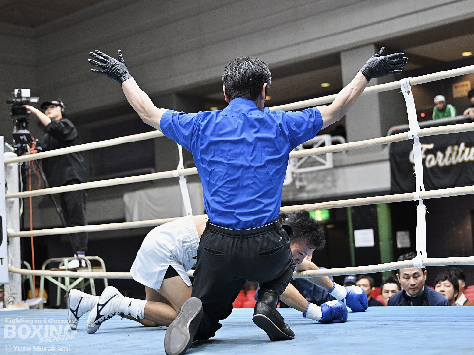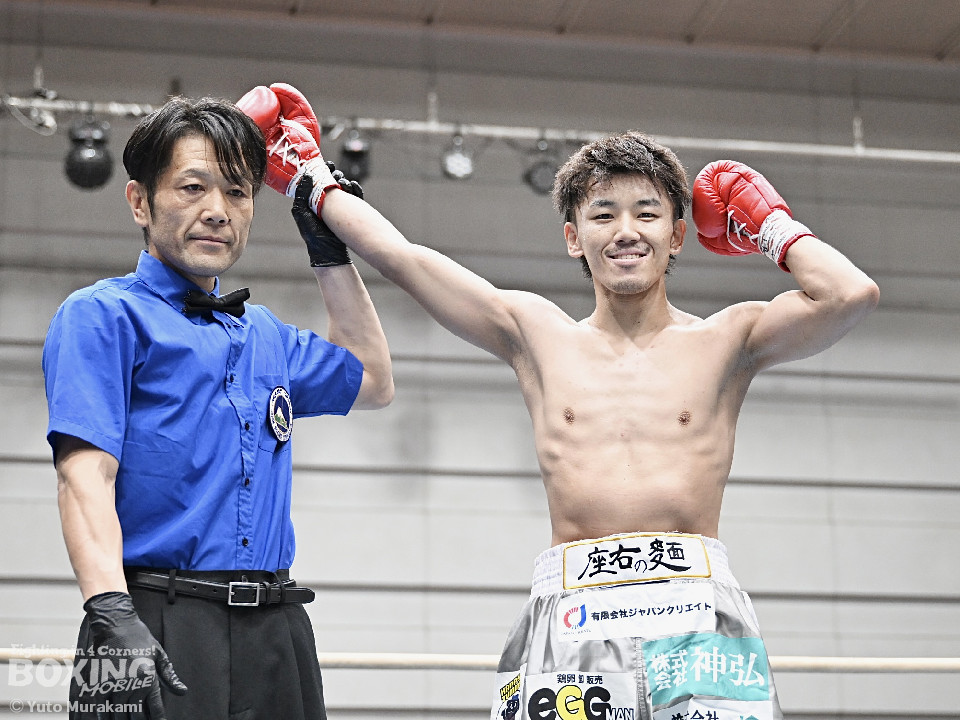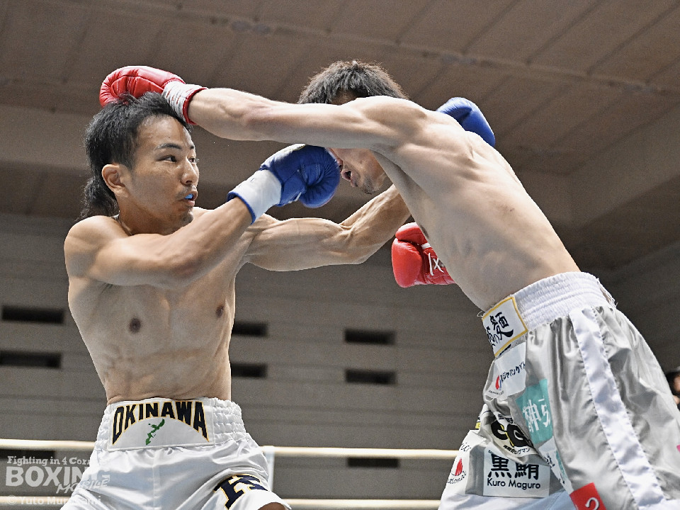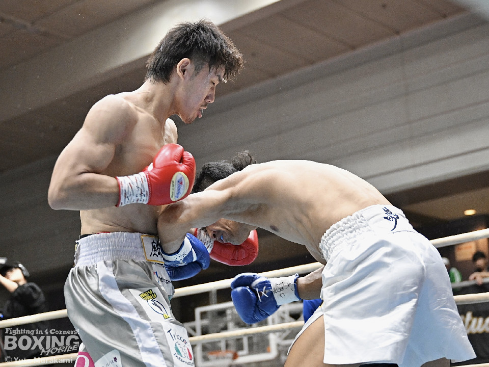 試合:サウスポー髙橋が前の手でコントロールしながらワンツーで顔を弾きペースを掌握。2回、高橋はドンピシャの左オーバーハンドで痛烈なダウンを奪取。立ち上がろうとした仲里だったがレフェリーは10カウントを数え上げた。高橋がワンパンチKOで後楽園ホールへの切符をつかんだ。