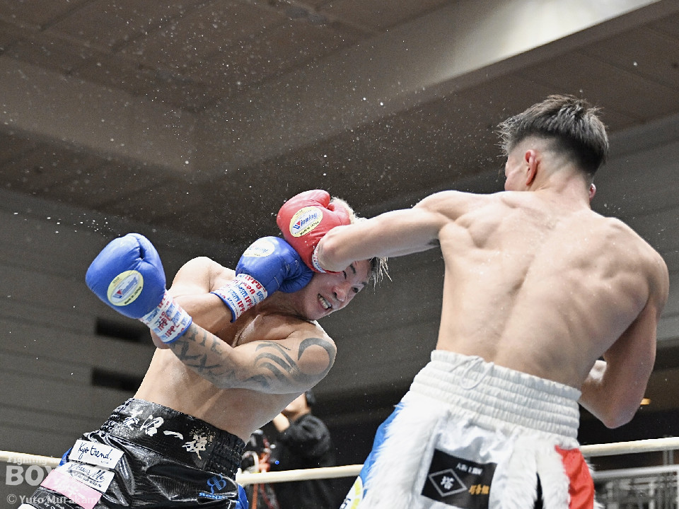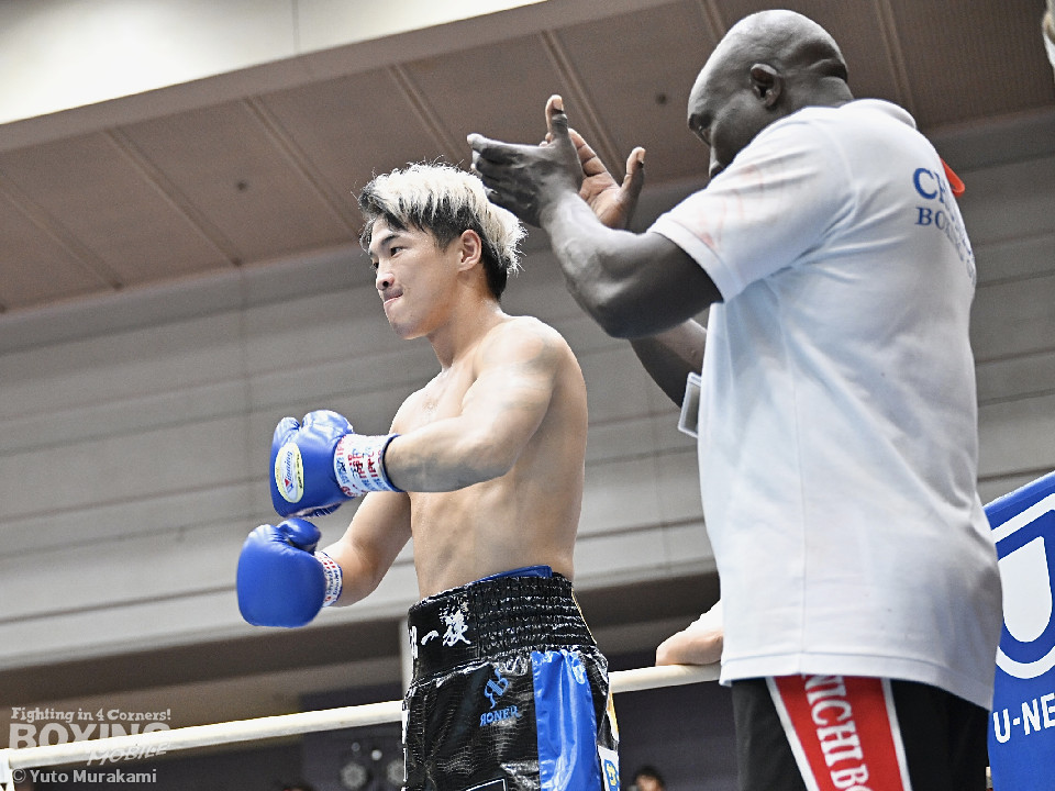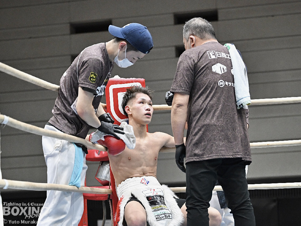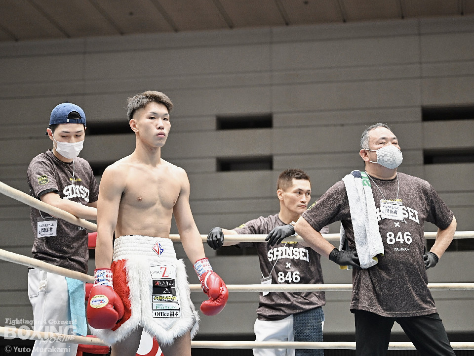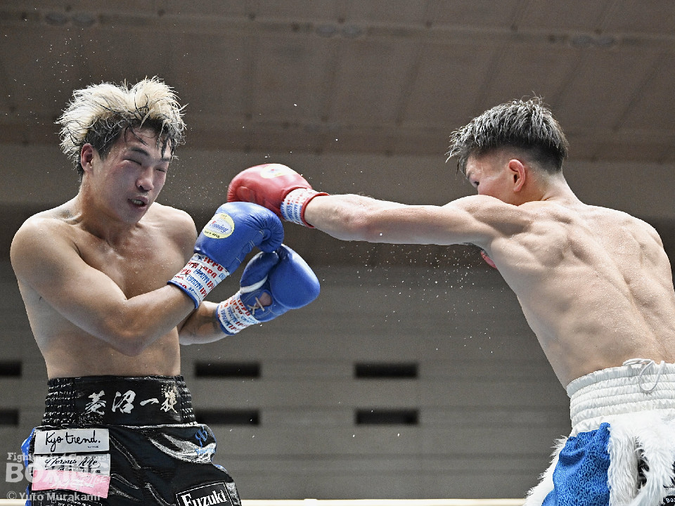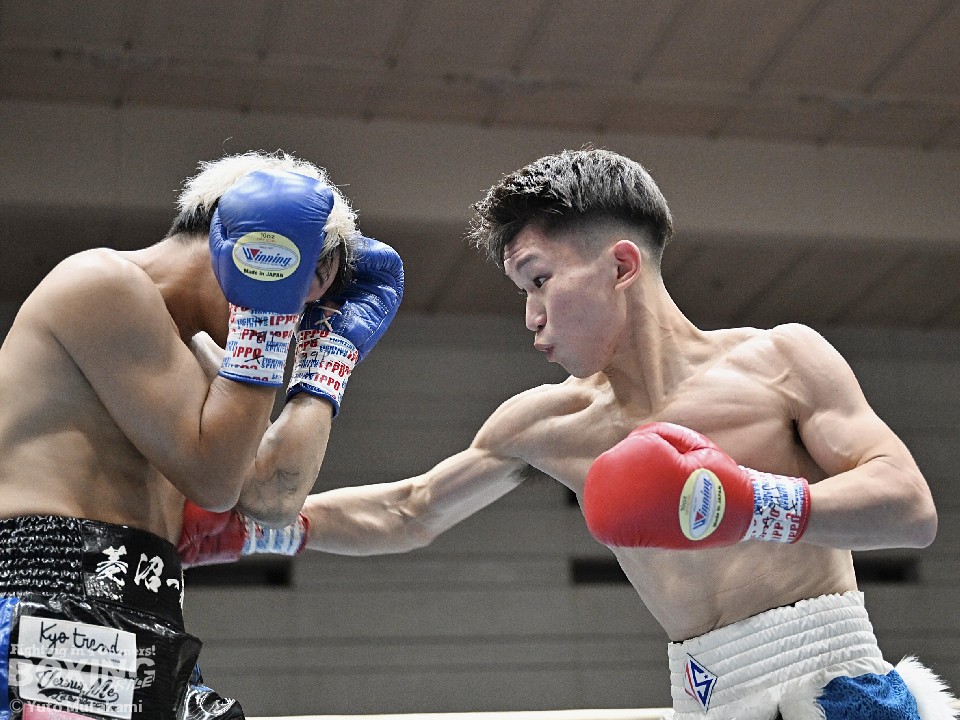 試合:福本がジャブを突きながら丁寧に組み立てると右アッパーを好打。後手に回った山中は、単発の左ボディを返した。2回、福本は左を軸にワンツー、逆ワンツーでペースを維持。3回も福本のラウンド。ワンツー、右アッパーを決めるとリズムをキープ。流れを変えたい山中はワンツーを返すが守勢を強いられた。4回、福本はガッチリとブロックするとワンツーで顔を弾きポイントを加点。山中は右目下を腫らした。5回も福本は攻め急がずジャブを再三ヒット。集中力を持続させながら勝利のゴールテープを切った。