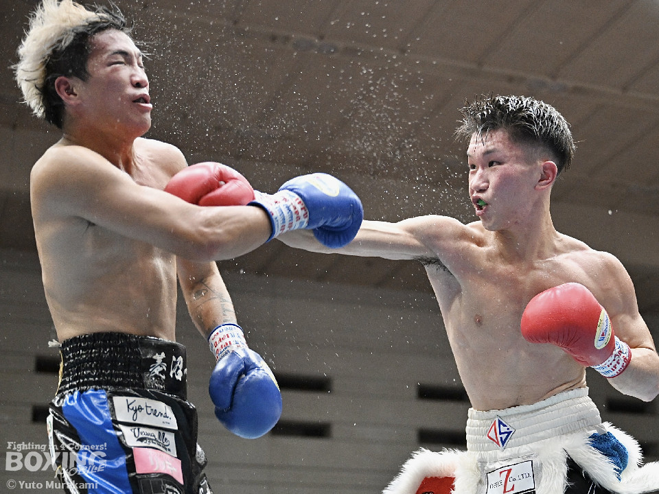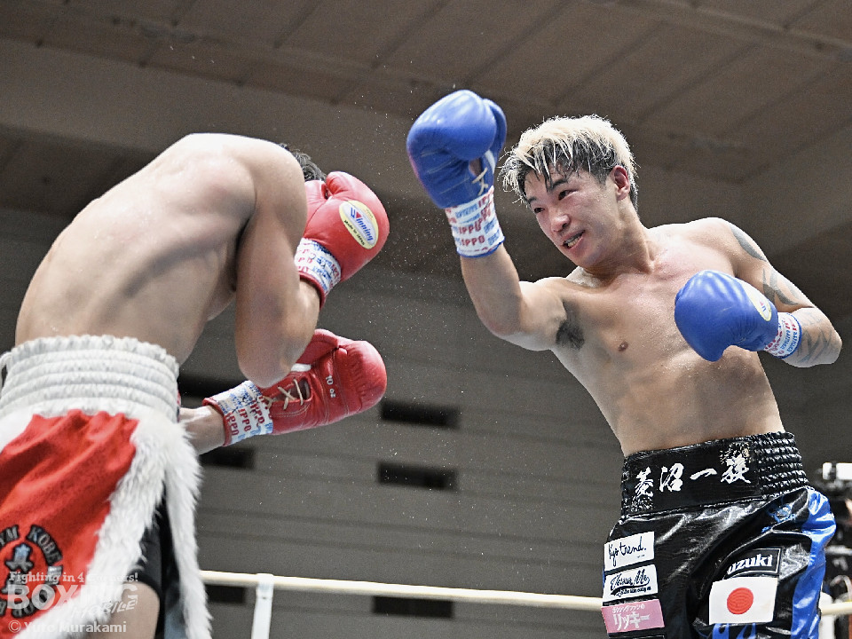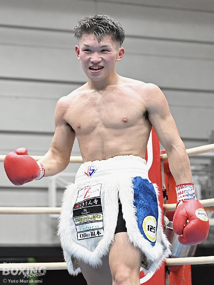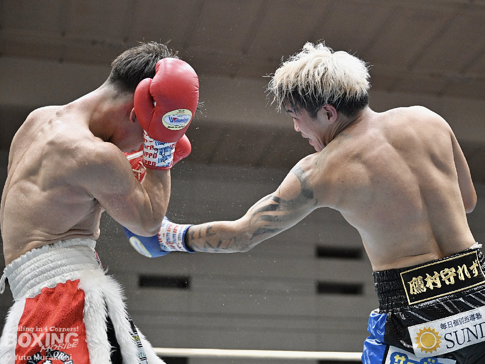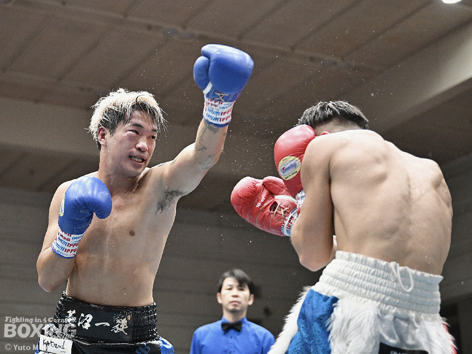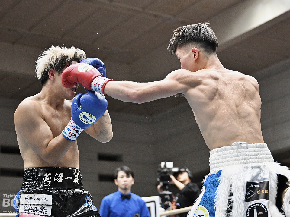試合:福本がジャブを突きながら丁寧に組み立てると右アッパーを好打。後手に回った山中は、単発の左ボディを返した。2回、福本は左を軸にワンツー、逆ワンツーでペースを維持。3回も福本のラウンド。ワンツー、右アッパーを決めるとリズムをキープ。流れを変えたい山中はワンツーを返すが守勢を強いられた。4回、福本はガッチリとブロックするとワンツーで顔を弾きポイントを加点。山中は右目下を腫らした。5回も福本は攻め急がずジャブを再三ヒット。集中力を持続させながら勝利のゴールテープを切った。
